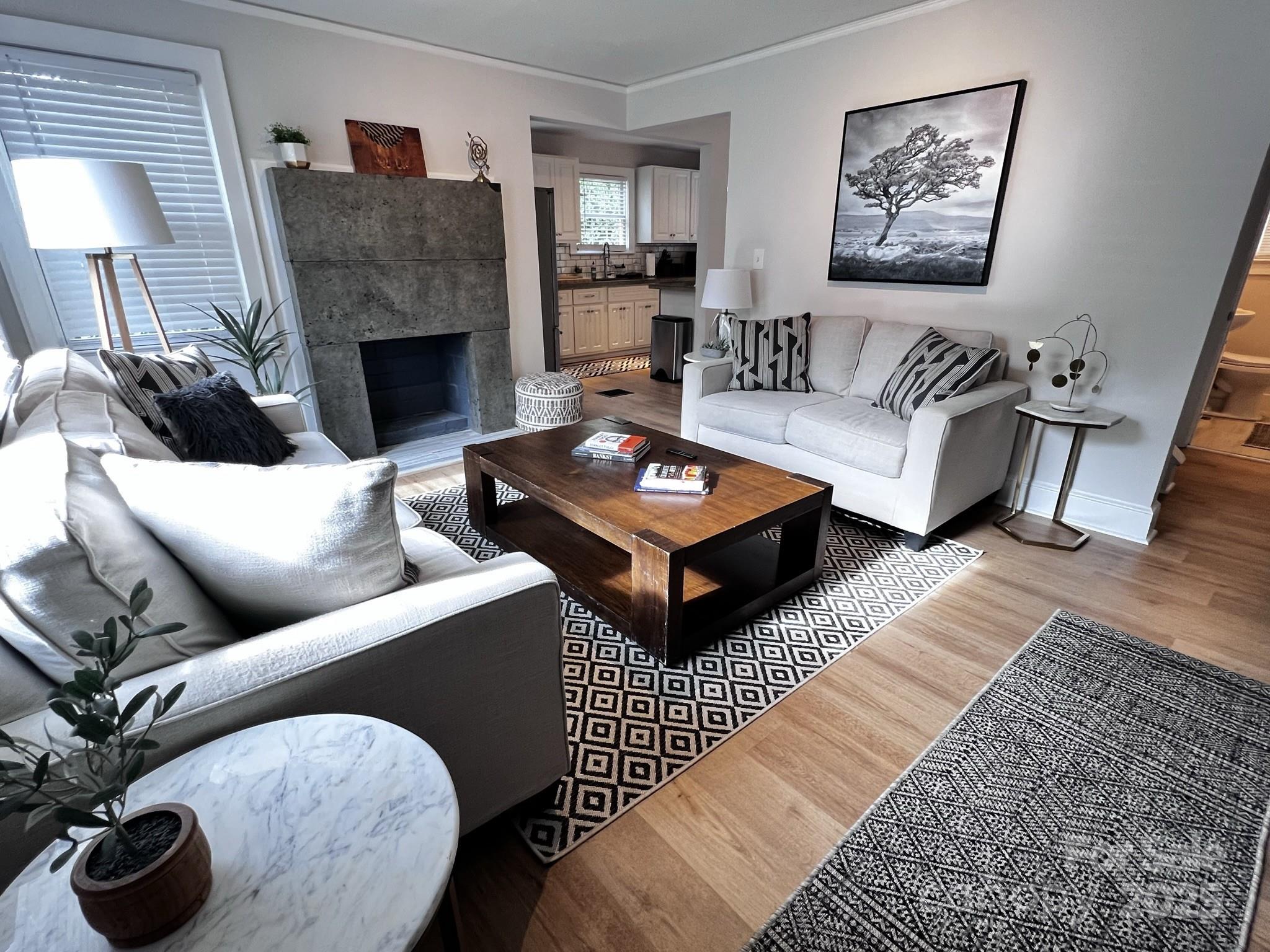 This cozy home delivers a lot of bang for your buck! At 1,746 sf, this 4-BD/2-BA cottage style home is a rare gem at this price point in such a coveted neighborhood. Beautifully remodeled throughout, with 2-BD/1-BA on the main floor, an attic bedroom upstairs, and a 1-BD/1-BA suite in the basement that can work as a short-term rental or an in-law suite with double vanity, kitchenet, living room and reading nook . Eat-in kitchen peninsula and dining space, concrete countertops and a beautiful concrete fireplace accent the main floor. Elevated back deck overlooks a large wooded lot. Basement laundry room and separate, heated/conditioned storage room (326 sf attic and 177 sf storage room not included in the home's listed sf. Total sf is 2,249 sf), and the bedroom upstairs has laundry hookups in the closet to allow laundry setup upstairs while renting of the lower level suite. Conveniently located 1-mile from lightrail, and near SouthEnd, Park Road Shopping Center and SouthPark.