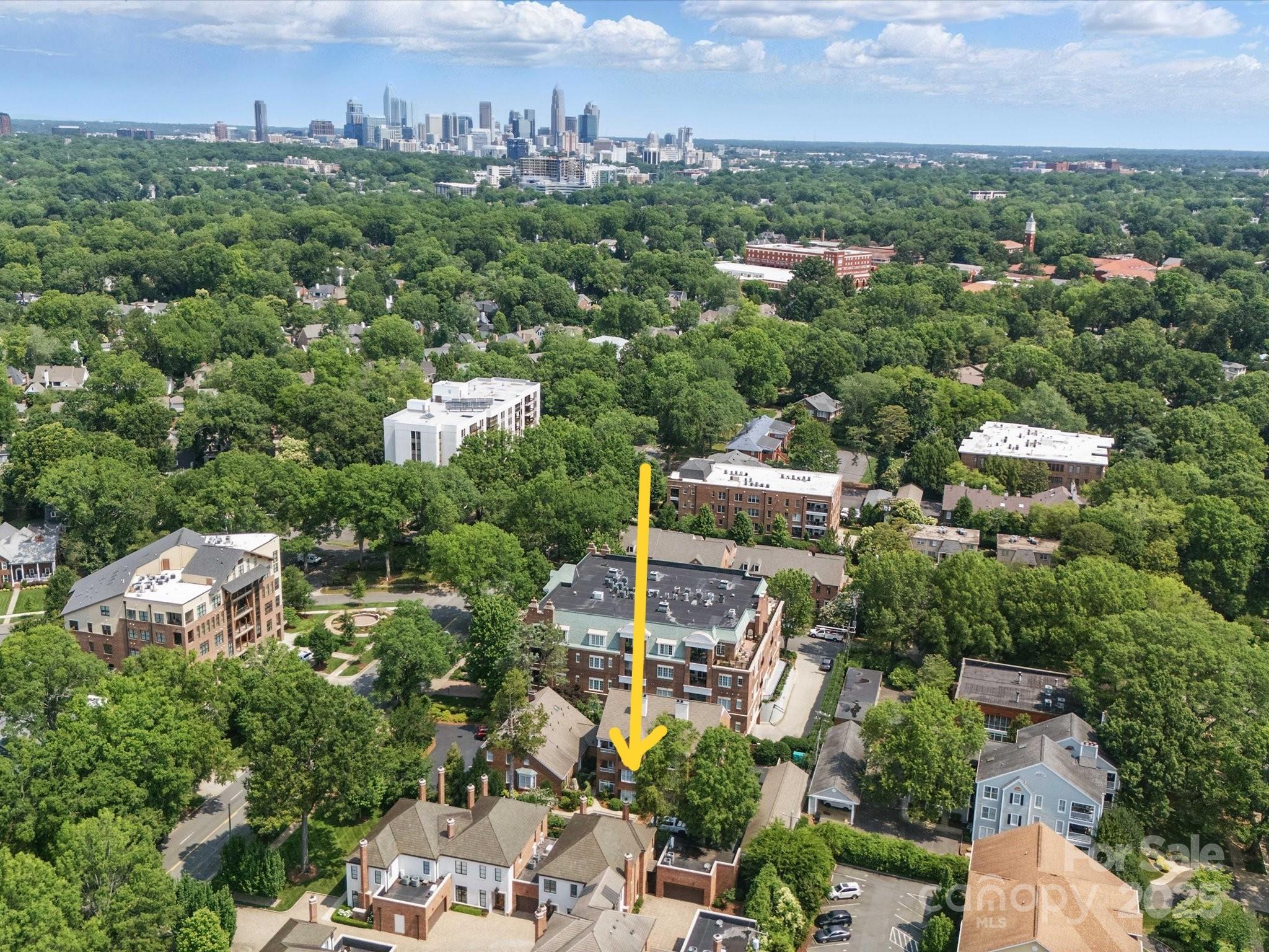 Top Floor 1-story condo with vintage charm in the heart of Myers Park. Nestled in one of Charlotte's most coveted neighborhoods, this beautiful, updated condo offers timeless character and modern convenience. Located just steps away from the corner of Selwyn & Croydon, and moments from Queens Rd West, this top floor home is flooded with glorious natural light and vaulted ceilings that enhance its spacious feel. Inside enjoy LVP flooring and a thoughtfully renovated owner's suite with a private bath and a generous walk-in closet. The 2nd full bathroom has been tastefully updated. The kitchen has granite counters and classic white cabinets. A dedicated laundry room includes built-in cabinetry, and a long folding counter which can also be used as a butler's pantry for added functionality. Step out onto your 3rd floor balcony and take in the lush surroundings and tree lined streets. Additional perks include a pull-down attic which is unique to the top floor homes for extra storage, a newly paved parking lot, and a quiet, close-knit community of just nine units. With unbeatable proximity to Queens University, Park Road Shopping Center, South Park Mall and some of Charlotte's best dining this condo blends serene living with urban accessibility.
