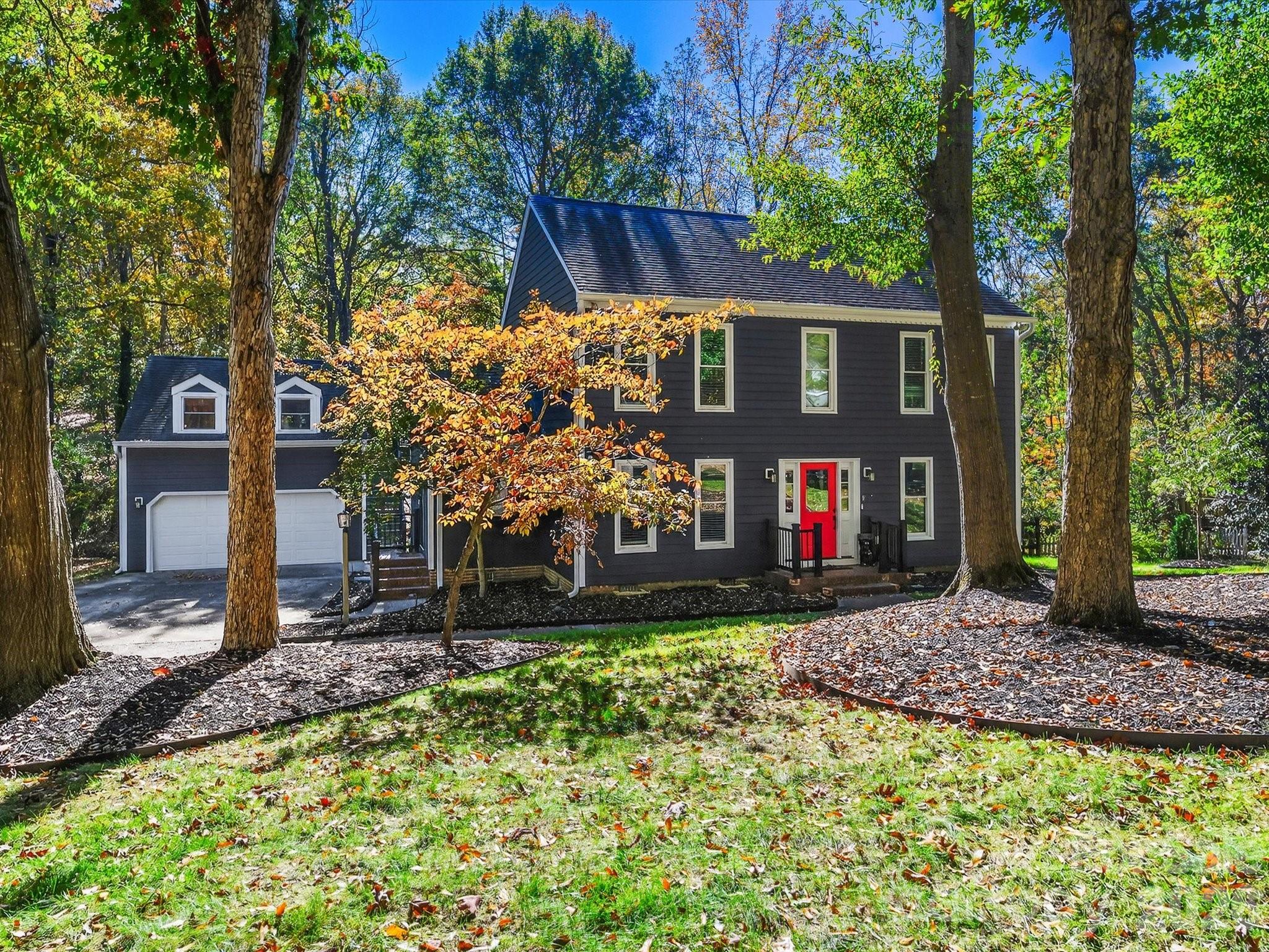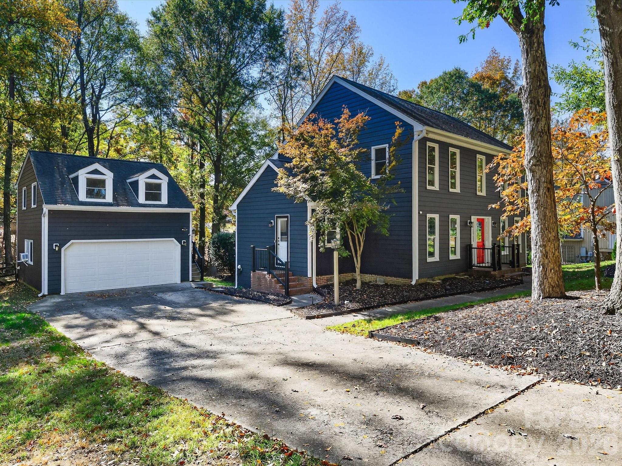 Beautifully designed 3-bedroom, 2.5-bathroom home nestled in the desirable community of Alexander Woods. This residence features an inviting floor plan, a versatile flex space above the detached garage, and a delightful enclosed back porch for additional living space.Homeowners have added new (composite cladding) siding, new windows, new exterior doors, new hardwood flooring, painting throughout, new water heater, 2 new HVAC units (2022 and 2024) new kitchen countertops, and sealed crawl space. As you enter through the cheerful red front door, you are greeted by a bright foyer flanked by a formal dining room and a spacious office. The office boasts a wall of built-ins and abundant natural light from the front window, creating an ideal workspace. The dining room features two large windows, elegant chair rail molding, and hardwood floors, seamlessly connecting to the kitchen through charming split wooden doors.The heart of the home, the kitchen, is a culinary delight with its ample storage, large eat-in island, stainless steel appliances, granite countertops, an undermount sink, and a generous electric cooktop. The breakfast room, located adjacent to the kitchen, offers cozy views through glass doors that lead to the enchanting back porch.The family room exudes warmth with an exposed brick fireplace, built-in shelving, and striking exposed beams that enhance its cozy ambiance.Upstairs, the primary bedroom is a serene retreat featuring a spacious closet and an en suite bath equipped with a linen closet, double vanity, and walk-in shower. Two additional bedrooms share a well-appointed hall bath, complete with a tub/shower combo.Convenience is key with a laundry area situated near the back door, providing a practical drop zone next to the half bath.Completing this wonderful home is a private backyard and a detached garage with a bim=nus room above, making it perfect for both relaxation and entertaining.