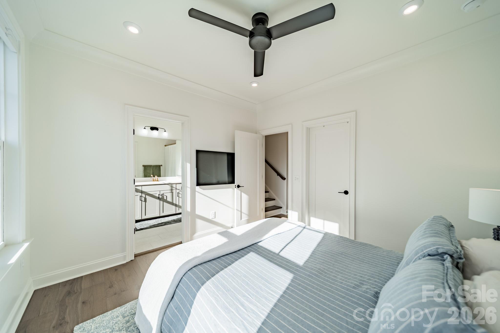 Surrender to the Third Floor: Retreat to the luxurious primary suite featuring a thoughtfully appointed bathroom space and a generous walk-in closet. A second bedroom with its own full bathroom, while a walk-in closet provides comfort and privacy for family or guests.