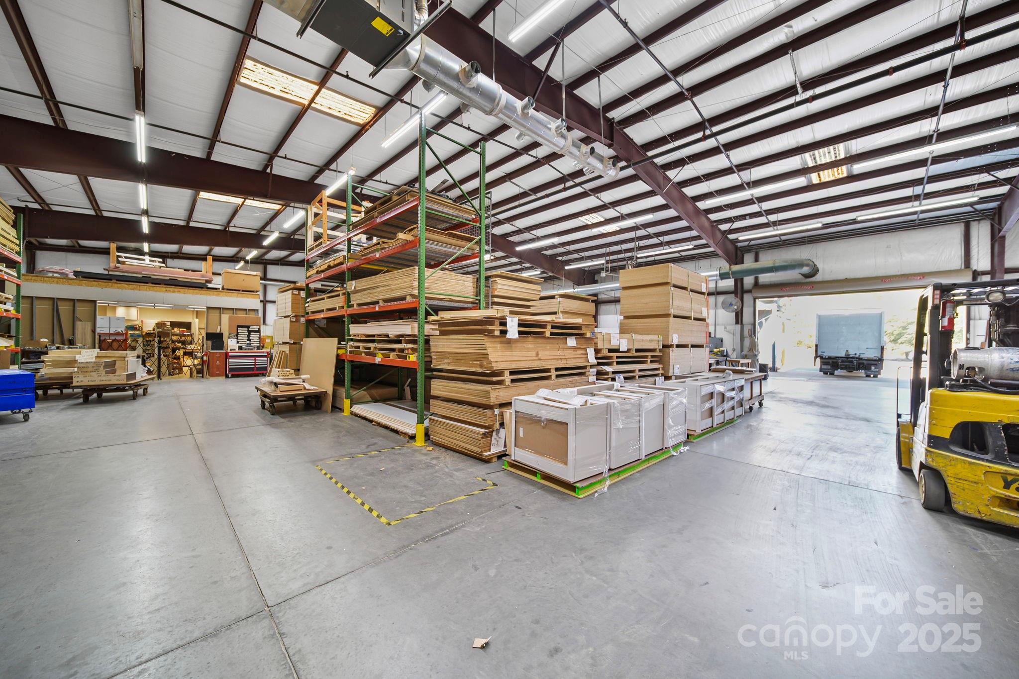 The warehouse is equipped with two drive-in doors—a 20’ x 20’ oversized door and a 12’ x 12’ door—providing flexible access for a wide range of industrial and distribution needs. Interior features include 16’–20’ clear heights at the eaves, a fully sprinklered system, air compression lines, and heavy-duty power, making it ideal for manufacturing, fabrication, or storage users.