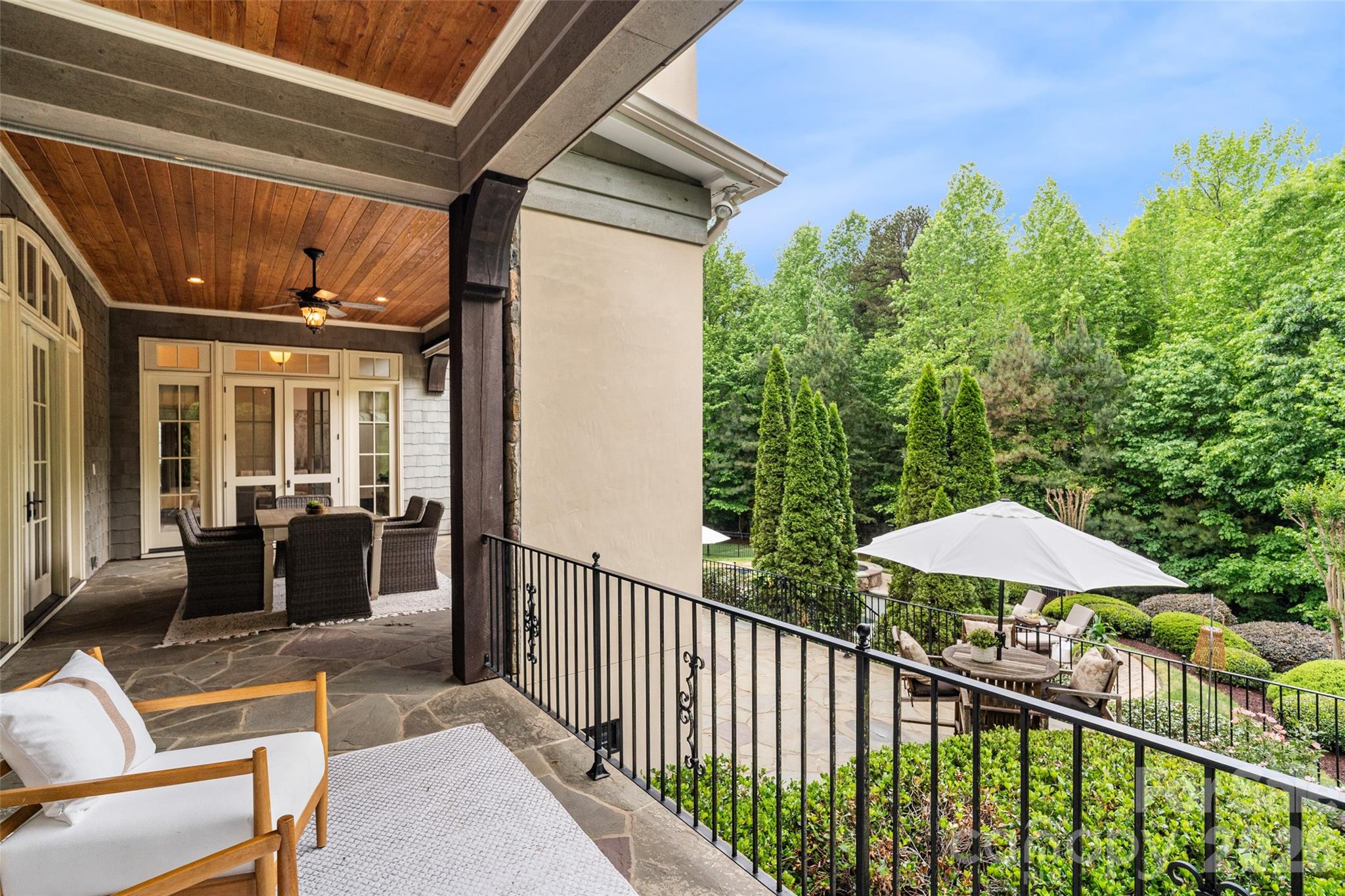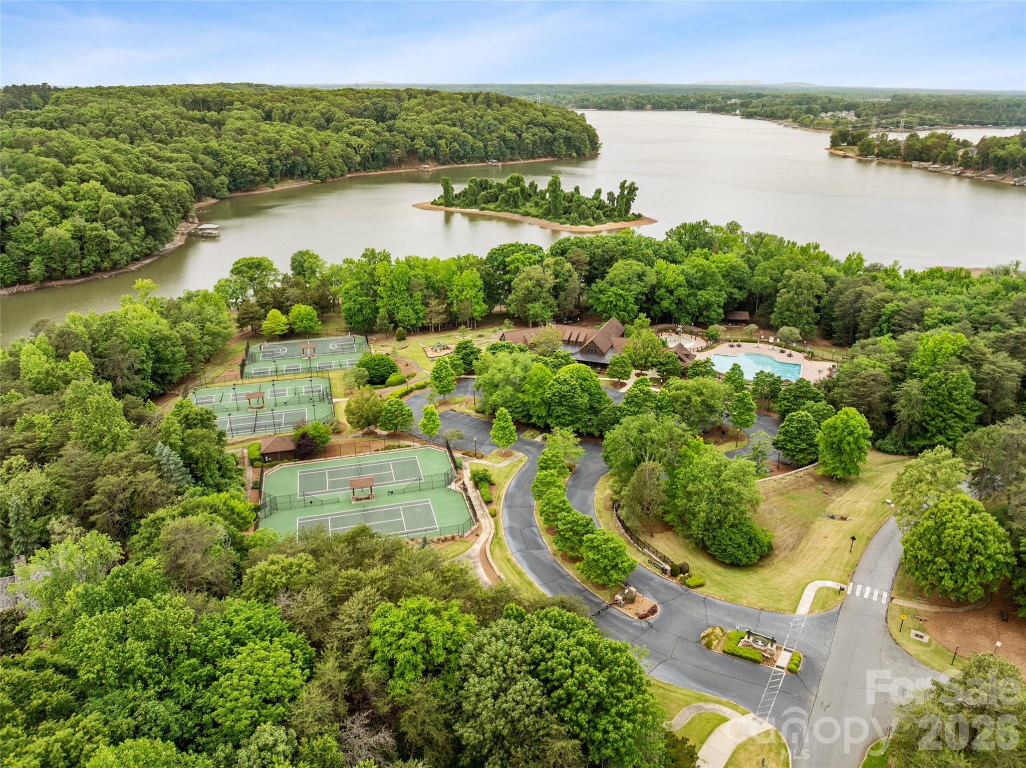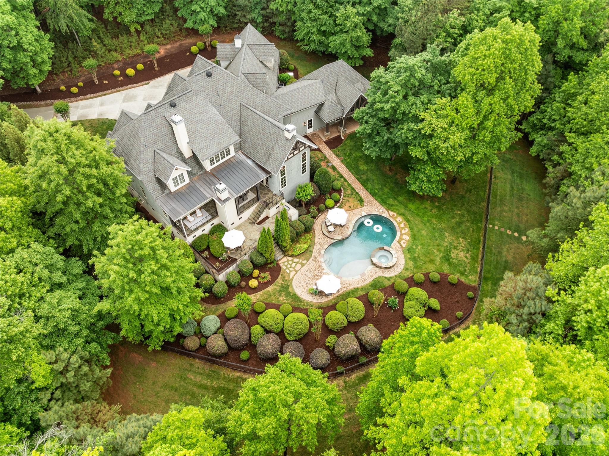Tucked within The Sanctuary, a lakefront community on Lake Wylie known for its preserved landscape and natural surroundings, this custom-built residence offers a rare combination of scale, privacy, and everyday livability. Set on over six acres, the property is surrounded by mature trees, creating a sense of seclusion while still remaining convenient to Charlotte. A main-level primary suite and residential elevator provide ease of access across both levels, supporting a wide range of living needs. The home features three gas fireplaces, including a grand stone fireplace in the great room, along with refined interior spaces designed for both everyday living and entertaining. Upstairs, a sound-insulated media room creates a dedicated space for entertainment, along with additional bedrooms and a spacious suite featuring built-ins with a desk, sitting area, and a wet bar. The expanded wing is designed to support an active lifestyle, featuring an extensive gym with soaring ceilings, mirrored walls, and performance flooring to support a wide range of uses and the ability to create a fully equipped training environment. The space opens to the outdoors and includes a kitchenette and bar with a pass-through window that serves the poolside entertaining area. This addition also incorporates interior pool lockers and a full bath with shower, easily accessed from both the gym and pool. The exterior living spaces are thoughtfully designed, centered around a two-level covered veranda overlooking a heated saltwater pool and spa, complemented by professional landscaping and a full-yard irrigation system. Additional features include whole-house water filtration, central vacuum, integrated sound, in-floor heating in the primary bath, a 22kW natural gas generator, and EV charging. Residents of The Sanctuary enjoy access to Lake Wylie, miles of private trails, tennis and pickleball courts, along with a community pool, splash pad, play area, and additional amenity spaces, all designed to support both recreation and connection. A home of this scale, setting, and level of detail is best experienced in person. Private showings are encouraged.