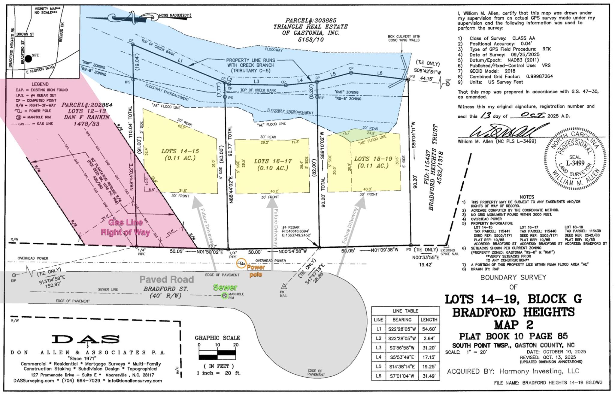 Investors take a look at this lot off East Hudson in Gastonia! Convenient Location! Survey Attached. There are Three side-by-side lots being offered, each for the same price per lot as this one. Parcel 115440 as well as MLS 4334127 (Parcel ID 115441) are both available for purchase now, and Parcel 115439 can be reserved now and should be available in the next few weeks. All three lots can connect to sewer, water and electricity and they front a paved road. The back of this property is in a flood plain, but it does not encroach into the buildable footprint, leaving enough room to build per survey (see yellow shaded boxes in the survey to see the building envelopes) Per the City of Gastonia, once Building permits are applied for, they will clean up the street and remove the barricades which are currently blocking vehicle entry into this cul-de-sac.