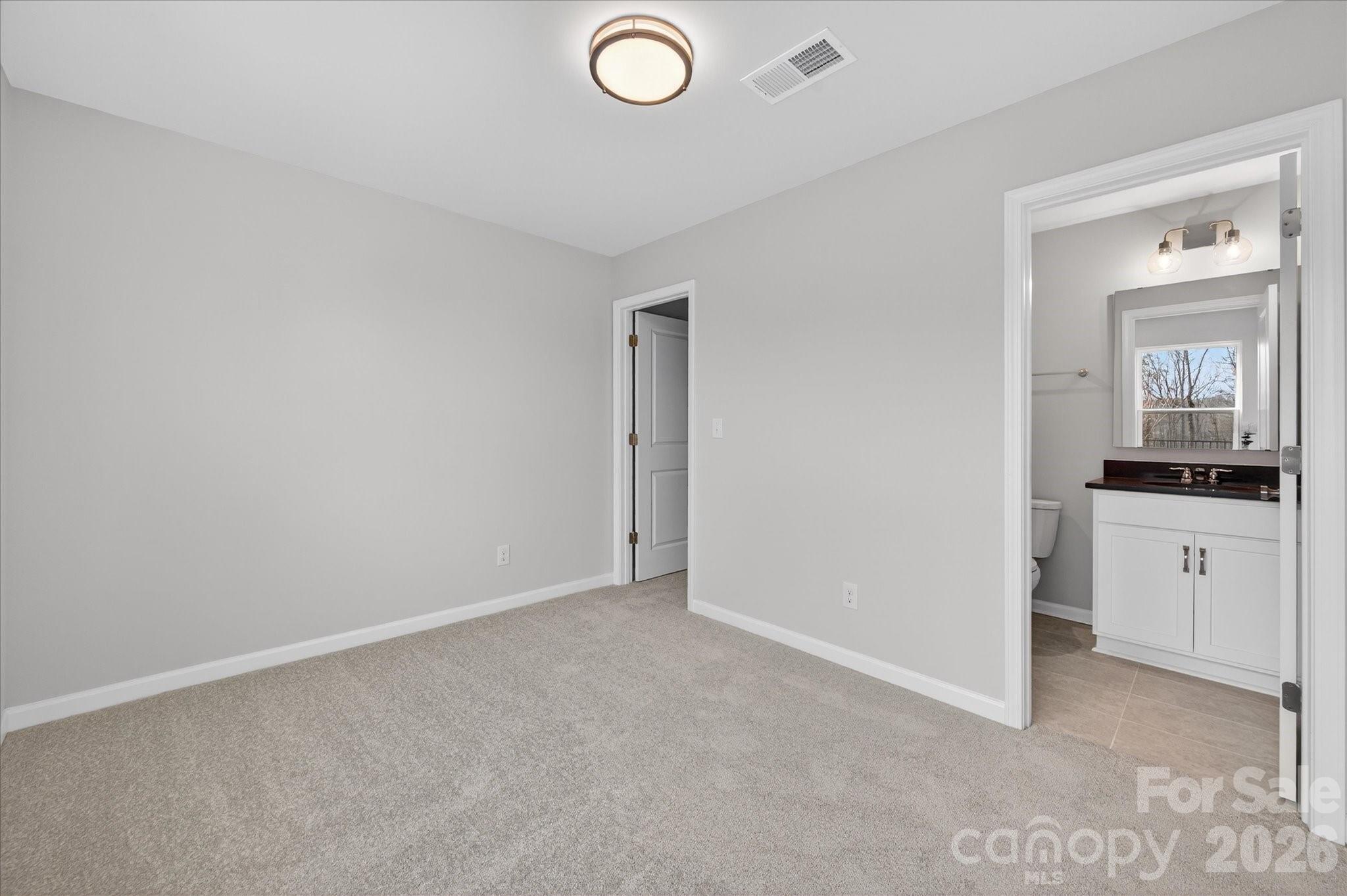 This new Charlotte townhome has 3 bedrooms, all with private baths, plus a powder room on the main floor; great for roommates or visitors! Located only 2 miles from UNC Charlotte and walking distance to Toby Creek Greenway, there are many restaurants and shops minutes away. 2 nearby LYNX light rail stops make traveling to Uptown Charlotte, Southend, and NoDa a breeze. The first floor has a 2-car garage and guest suite. Enjoy the open layout on the second floor, with 9' ceilings and a covered terrace with nice green space views. This is an ideal space for entertaining, with the kitchen and dining/living area flowing together. The Kitchen features a large island with space for bar stools on both sides, quartz counters, 42" white cabinets, double trash pullout, pantry closet, and GE stainless steel appliances with a gas range. The third floor hosts a laundry closet with space for a full-size stacked washer/dryer, and two bedrooms. The primary bedroom has a walk-in closet and bathroom with large tiled shower and a double-sink vanity. All full baths have tiled floors. Terrace has durable TREX decking. This townhome is designed so you can enjoy life, not maintenance. Convenient driveway and street parking available.