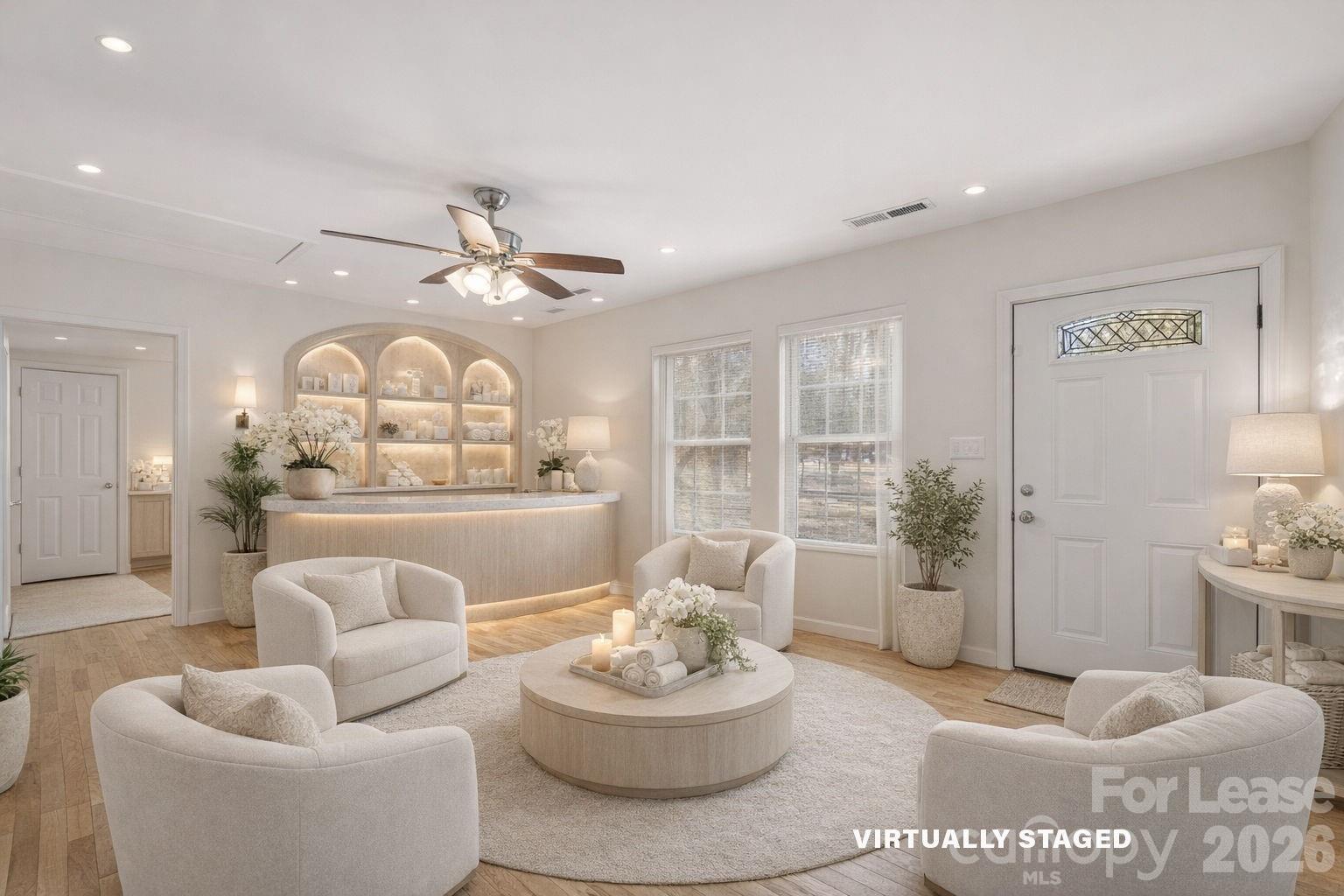 Offering a flexible footprint for a variety of neighborhood-serving uses. The layout provides multiple rooms that can function as private offices, treatment rooms, or consultation space. The welcoming front entry can support a reception/waiting area, subject to zoning allowances and approvals.