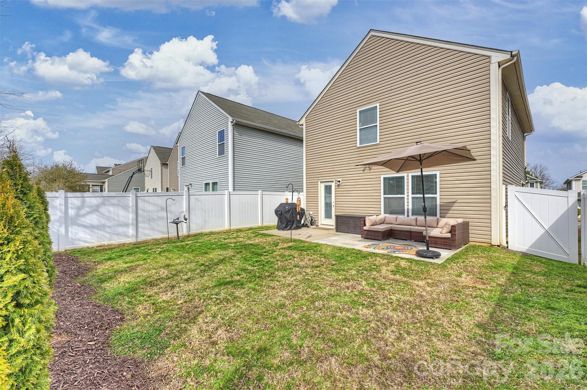 The thoughtfully designed kitchen features recently updated stainless steel appliances, abundant counter space, and a generous breakfast bar—perfect for casual meals, entertaining guests, or showcasing your culinary skills. Step outside to an extended patio overlooking a fully fenced backyard, complete with recently planted trees that enhance privacy and create a peaceful outdoor retreat.