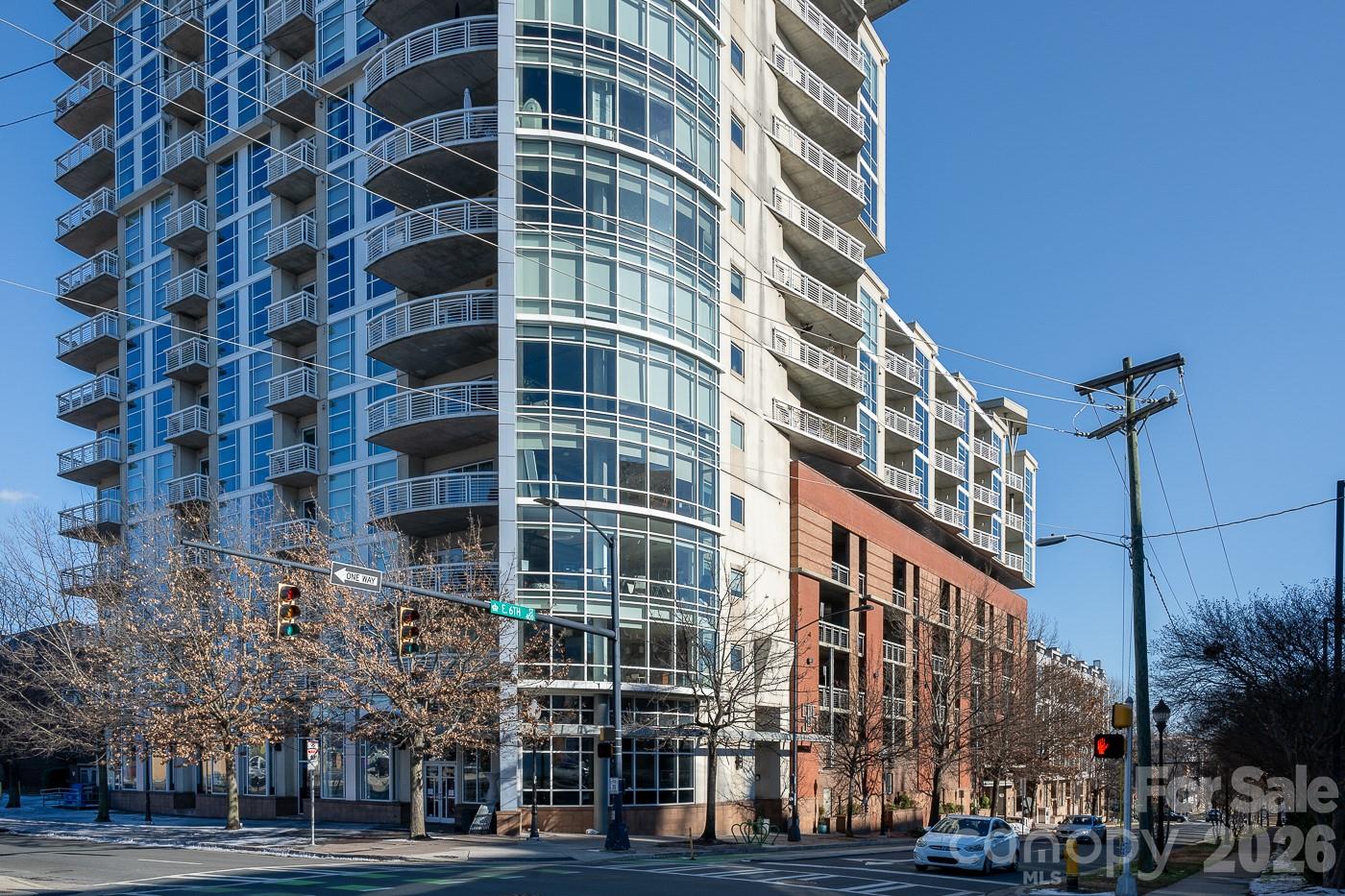 Discover the epitome of urban sophistication in this stunning modern industrial one-bedroom condo, perfectly positioned in the heart of Uptown Charlotte. Bathed in natural light, the residence boasts impressive floor-to-ceiling windows that frame breathtaking panoramic city views, showcasing Charlotte's iconic skyline from sunrise to sparkling night lights. The open-concept layout embraces a true modern industrial aesthetic, blending sleek contemporary finishes with raw, architectural character. Step out onto your private covered balcony, an ideal spot for morning coffee, evening relaxation, or simply soaking in the dynamic energy of Uptown life below. The home has been thoughtfully updated with fresh paint completed in 2026, creating a bright, move-in-ready atmosphere throughout. Perhaps most appealing is the seamless convenience: your reserved parking space is located on the same level as the condo in a secure, gated parking garage. Enjoy the rare ease of walking directly from your assigned spot to your front door—no steps, no elevator rides—making daily arrivals and departures incredibly effortless. Residents enjoy access to a fantastic community rooftop terrace, a premier amenity offering sweeping views, and the perfect setting for socializing, unwinding, or hosting friends against the backdrop of Charlotte's evolving skyline. Practical luxury continues with a Nest thermostat for effortless climate control and energy efficiency. The walk-in closet features smart built-in shelving for optimal organization, while the bathroom impresses with a beautiful tile shower that combines form and function. Nestled in one of the most desirable and convenient locations in Uptown, this condo places you steps from world-class dining, premier entertainment venues, professional sports arenas, cultural institutions, light rail access, and major employers. Don't miss this exceptional opportunity to own a slice of Uptown's dynamic energy—schedule your private showing today and experience the best of city living firsthand!