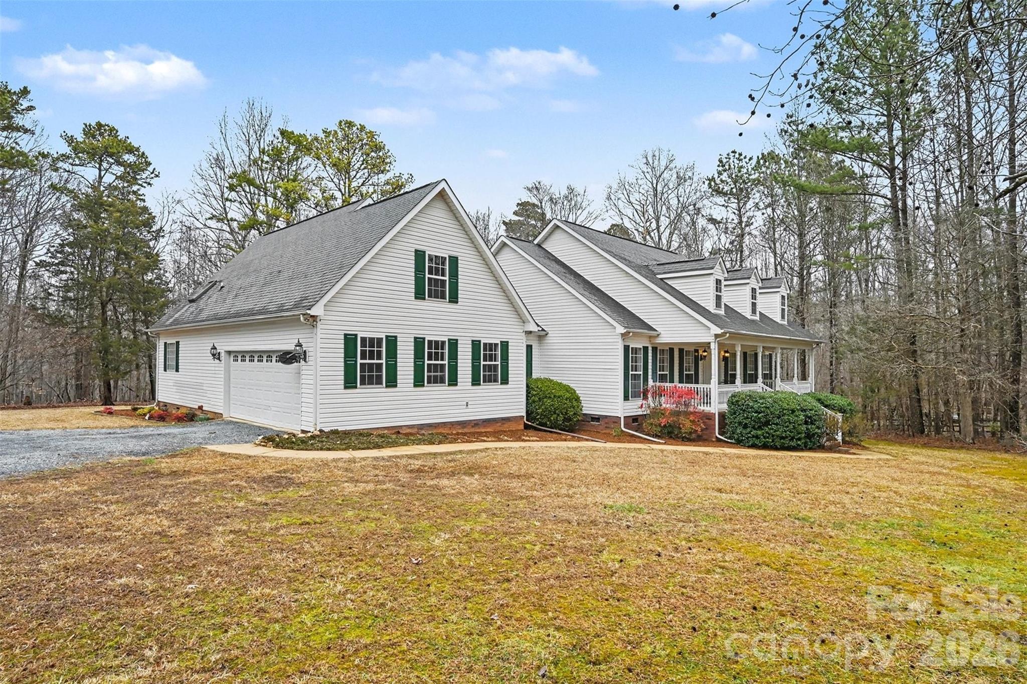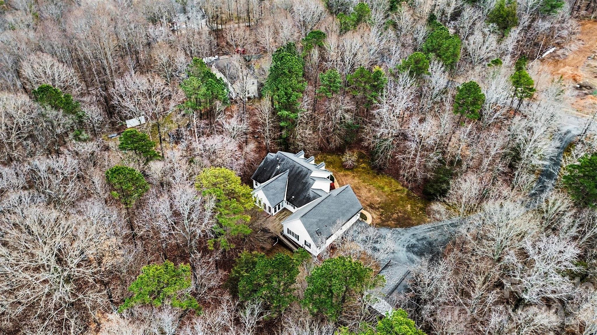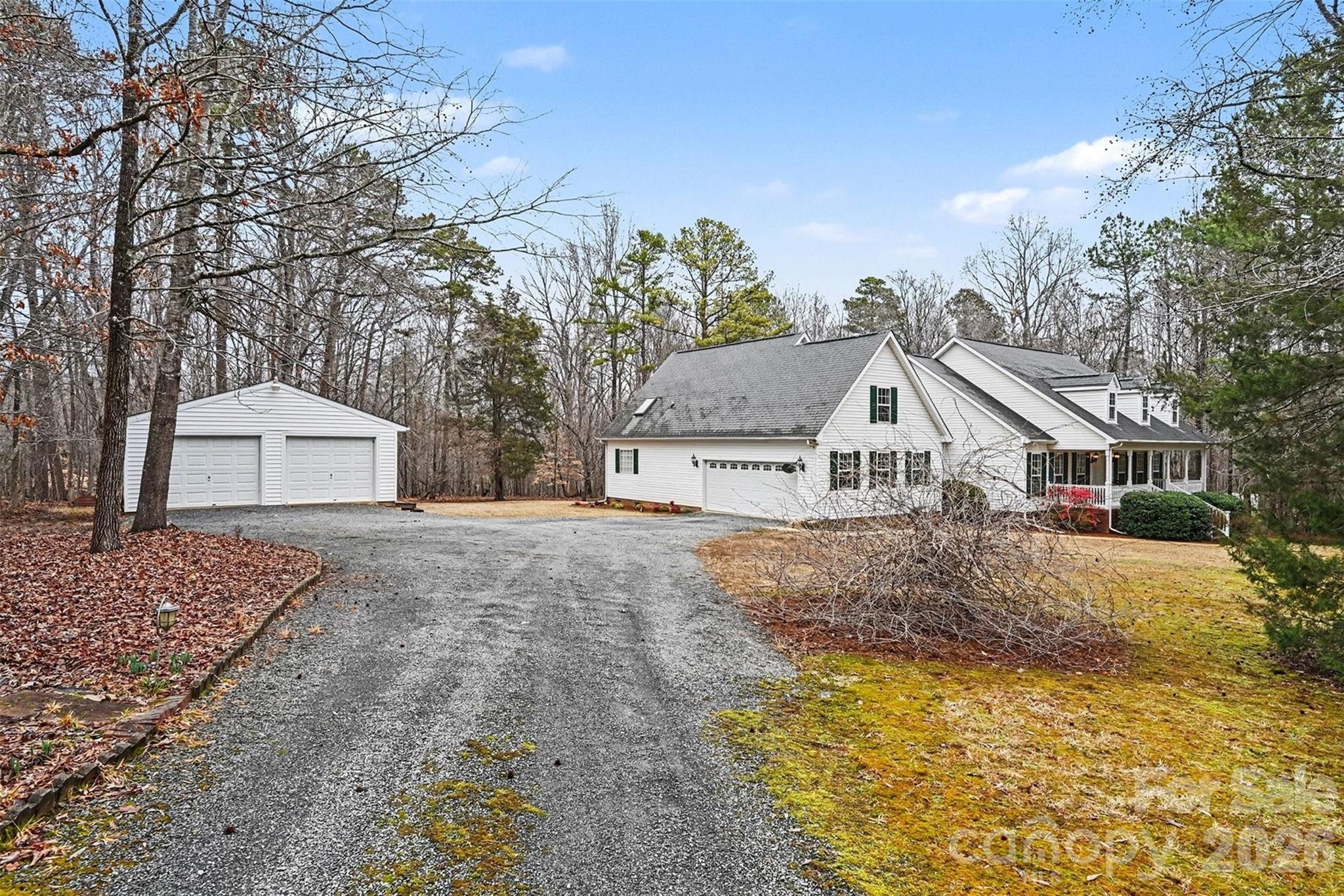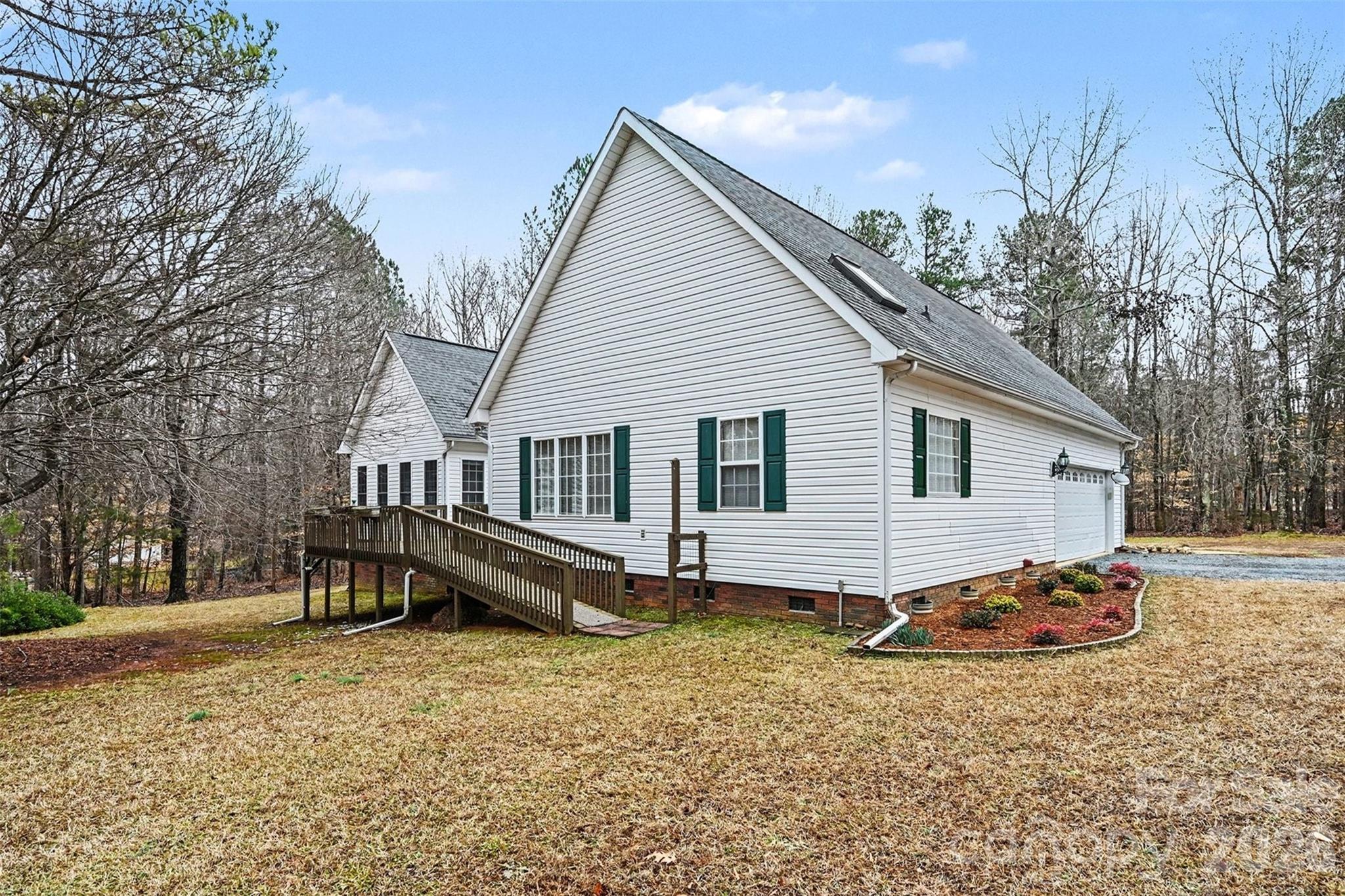 Tucked away on a beautifully wooded 4.04-acre lot in a quiet Waxhaw community, this well-maintained home offers the perfect blend of privacy, space, and comfortable everyday living. A welcoming front porch with classic curb appeal sets the tone as you step inside to a spacious, light-filled floor plan designed for both entertaining and daily life. The main living area features a vaulted ceiling and inviting wood-burning stove, creating a warm focal point upon entry. Double doors lead straight through the living room into an expansive sunroom filled with windows, offering peaceful views of the surrounding trees and seamless access to a large rear deck, also accessible from the primary bedroom. The deck includes a ramp for easy accessibility and provides an ideal setting for outdoor gatherings or quiet mornings at home. The home features a split-bedroom layout, with a generously sized primary suite offering a walk-in closet and a spacious ensuite bath. The kitchen is exceptionally functional with abundant cabinetry, extensive storage, and a large center island, perfect for cooking, hosting, and everyday organization. Additional highlights include a detached two-car garage/workshop, an attached two-car garage, and a setting that feels private yet convenient. This home has been thoughtfully cared for over the years and offers a rare opportunity to enjoy acreage, comfort, and flexibility in the Parkwood school district.