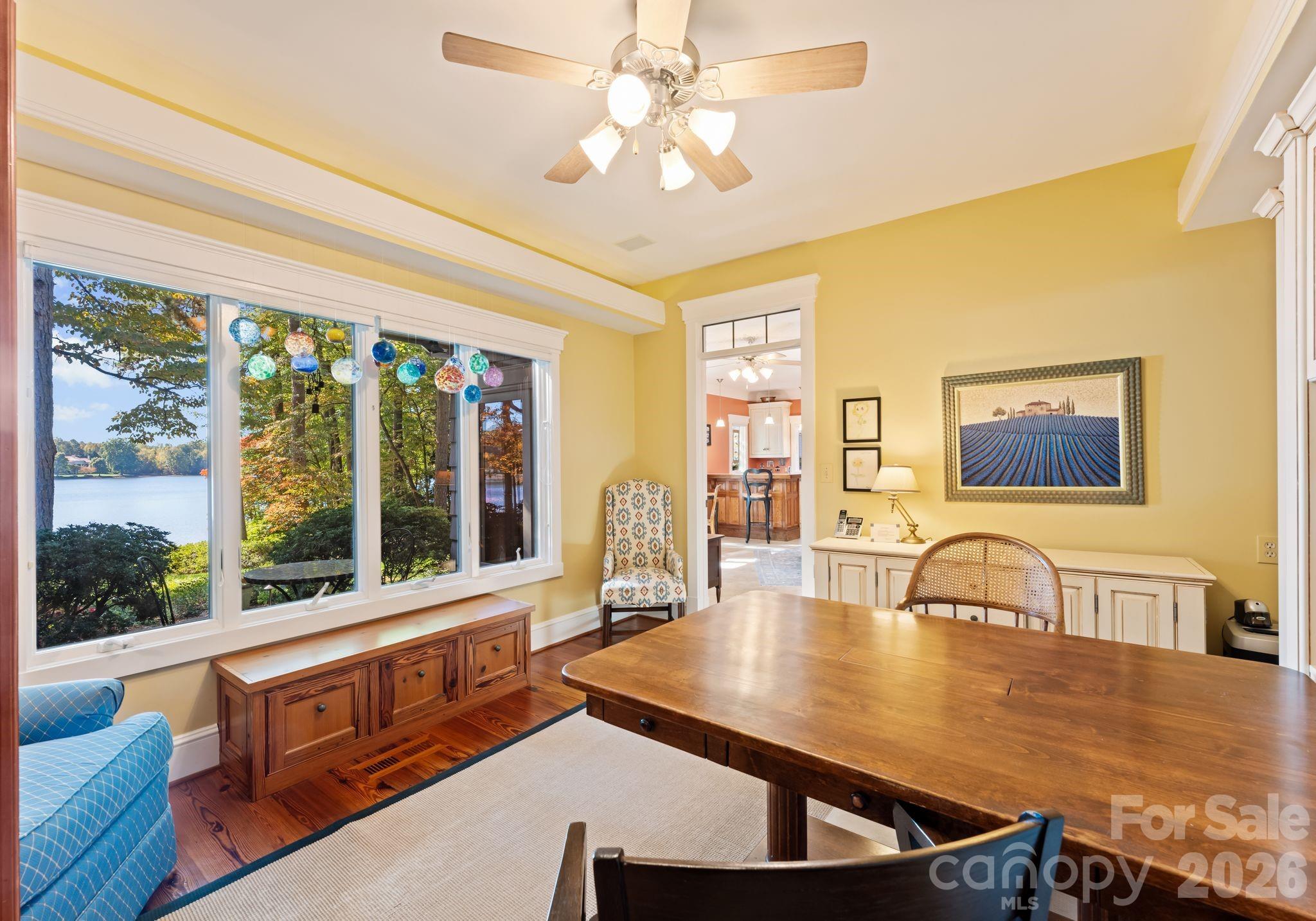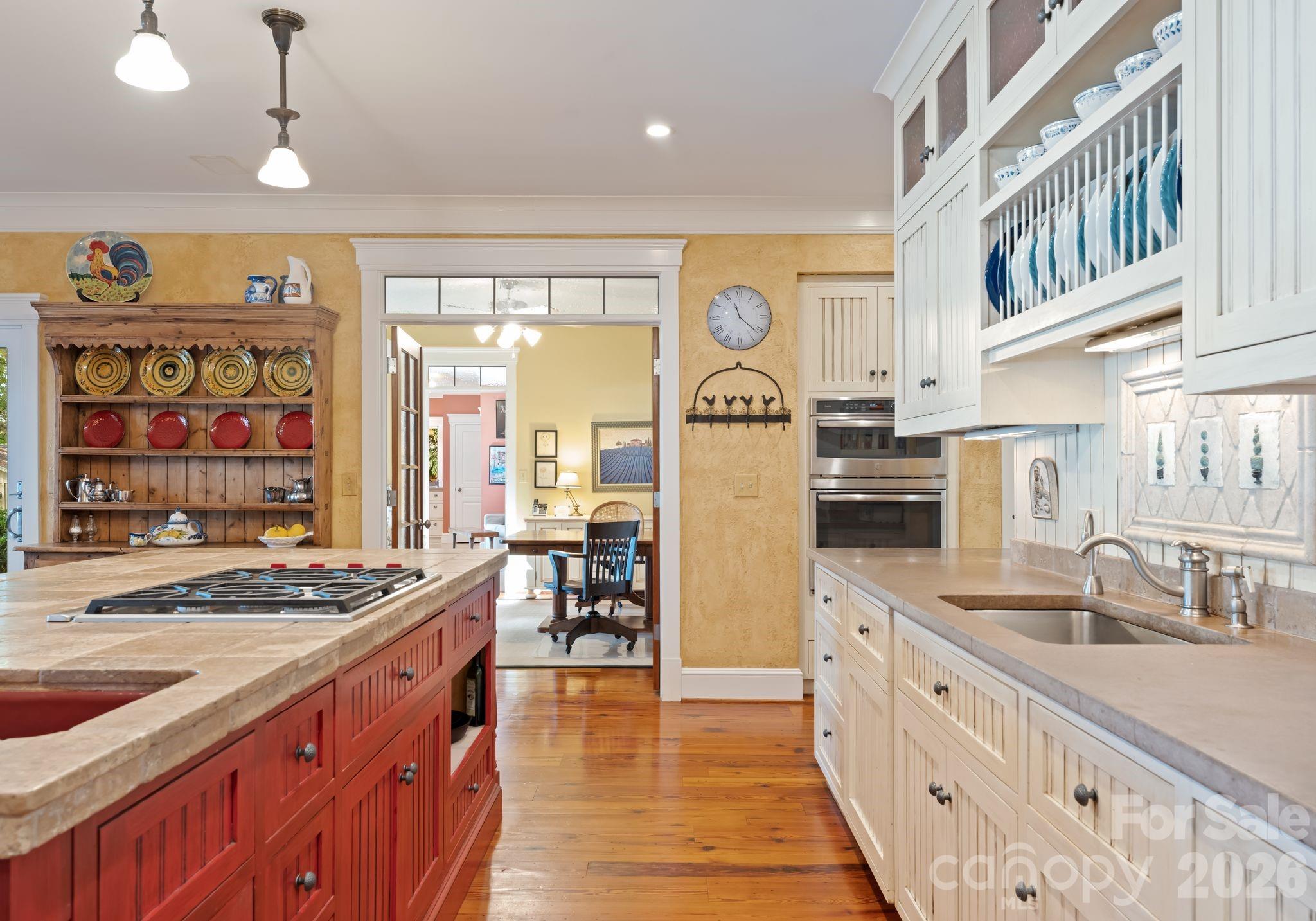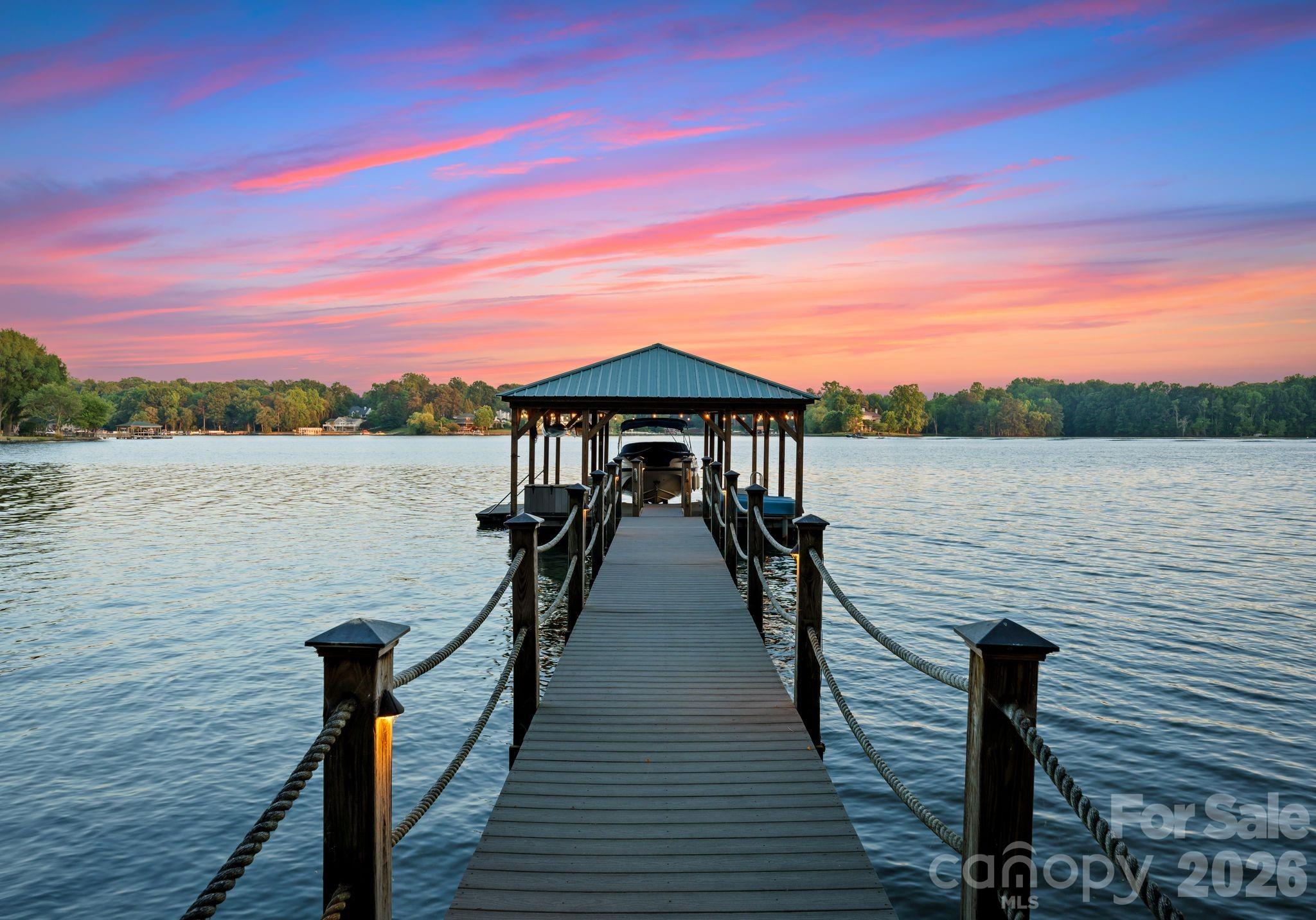Welcome to 170 Iron Gate Circle, a timeless French Country estate where handcrafted elegance meets serene lakefront living. Designed by acclaimed builder Chris Holcomb, every detail has been thoughtfully curated—from bespoke finishes and antique-inspired lighting to warm, organic materials that harmonize throughout the home. This residence is a testament to true craftsmanship and sophisticated design, offering a seamless blend of indoor refinement and outdoor tranquility. Set against the sparkling waters of Lake Norman, the property features a private covered dock, boat lift, and sandy beach. Expansive terraces and Brazilian mahogany decking provide stunning lake views, while screened porches and flagstone patios create ideal spaces for alfresco entertaining. The landscape, complete with mature plantings, a cutting garden, fountain feature, and garden shed, enhances the sense of a private retreat. Inside, the home embraces both grand scale and intimate charm. A soaring two-story foyer introduces heart-of-pine floors, tongue-and-groove ceilings, and custom French Country wall sconces. The great room offers dramatic two-story ceilings, a floor-to-ceiling stone fireplace, and direct lake access through Andersen sliding doors. The chef’s kitchen, designed for both function and flair, flows seamlessly into the dining and great room areas, creating a perfect setting for entertaining or quiet family gatherings. The main-level primary suite is a serene retreat with two walk-in closets, sliding doors to the lakeside deck, and a spa-inspired ensuite with dual travertine vanities, electric heated floors, a jetted soaking tub, and a walk-in rain shower. Upstairs, two guest suites feature private baths, walk-in closets, and access to a covered terrace overlooking the lake. An expansive attic and optional third-story addition provide potential for future expansion. Every corner of this home speaks to quality and European-inspired design—from the hand-selected antiques and hand-made crown molding to the textured walls, beadboard accents, and tongue-and-groove ceilings. Modern systems, including dual water heaters, a lightly used gas furnace, and a propane-ready generator connection, ensure comfort alongside timeless style. 170 Iron Gate Circle is more than a residence; it is a lakefront sanctuary offering a perfect blend of refinement, warmth, and everyday luxury.
