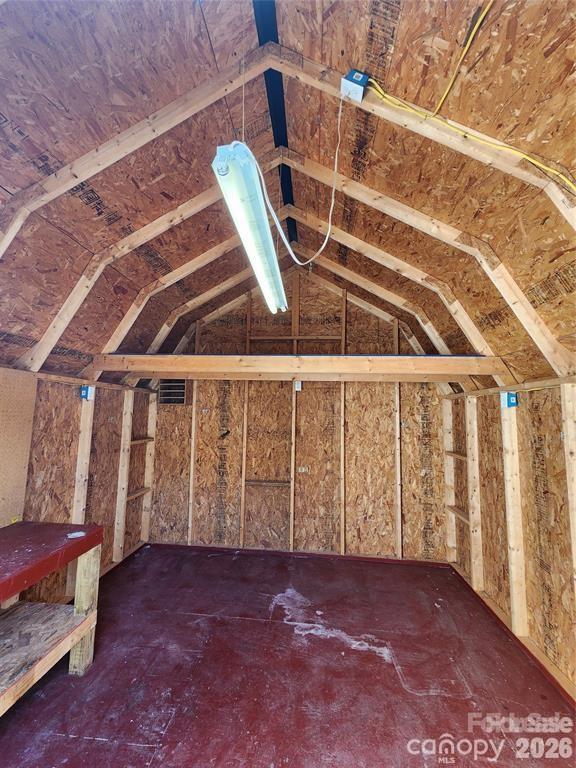 The exterior is well cared for and includes a detached storage shed equipped with electricity, offering flexible space for tools, projects, or extra storage. Step inside to a warm and welcoming interior highlighted by vaulted ceilings and exposed beams that add architectural interest and charm. An open layout enhances the light, clean feel throughout the home.