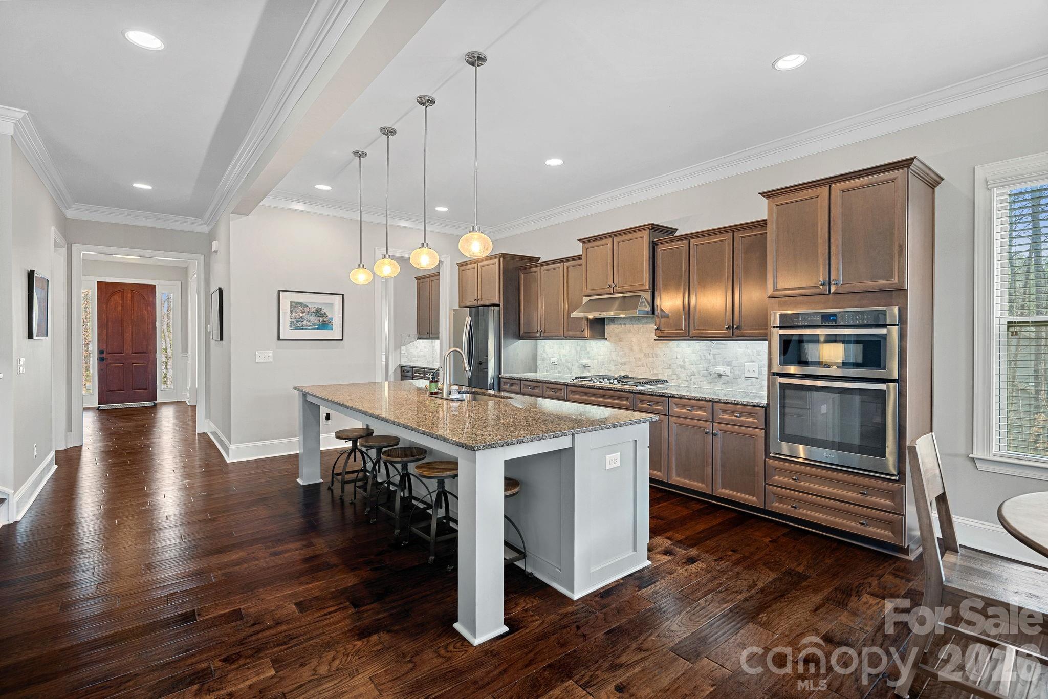 Situated on a 1+ acre corner, level lot in the gated, Lake Norman waterfront community of Harbor Oaks, this beautifully updated home offers a highly desirable floor plan and is located in the sought-after North Lincoln School District. Built in 2017, the home features 10 foot ceilings with crown molding details and beautiful hardwood floors throughout the main level. The main floor includes a formal dining room and dedicated office/study, along with an open concept living area and breakfast dining space. The spacious kitchen is ideal for entertaining and everyday living, showcasing maple cabinetry, an oversized 10+ foot island, gas (propane) range, butler’s pantry, walk-in pantry, and a Culligan water filtration system. The living area is anchored by a fireplace (set up for gas insert), adding warmth and charm. The spacious primary suite is conveniently located on the main level. It features a beautiful accent wall and chandelier, and a renovated (2024) en suite bathroom with dual walk-in closets, dual vanities, luxurious tile details, walk in shower and soaking tub. Upstairs, you’ll find a large bonus room, an additional unfinished bonus space perfect for storage, and brand-new carpet installed in January 2026. The upstairs bedrooms are spacious and each include walk in closets. Outdoor living is enhanced by a screened porch and terrace added in 2024 and an inviting, rocking-chair front porch. The home also offers a spacious 3 car garage, providing ample room for vehicles, storage, or hobbies. Additional updates include exterior paint in 2024 and interior paint in 2026. Even more, the washer, dryer, and refrigerator convey. The Rock Springs Nature Preserve, accross the street from Harbor Oaks, provides you with the opportunity to enjoy the playground, covered picnic area, & paved hiking trails. Easy access to HWY 16 & 150 to commute to CLT, Mooresville, Hickory. Do not miss this rare opportunity to enjoy timeless design, thoughtful updates, and an exceptional setting in one of the area’s most sought-after communities!