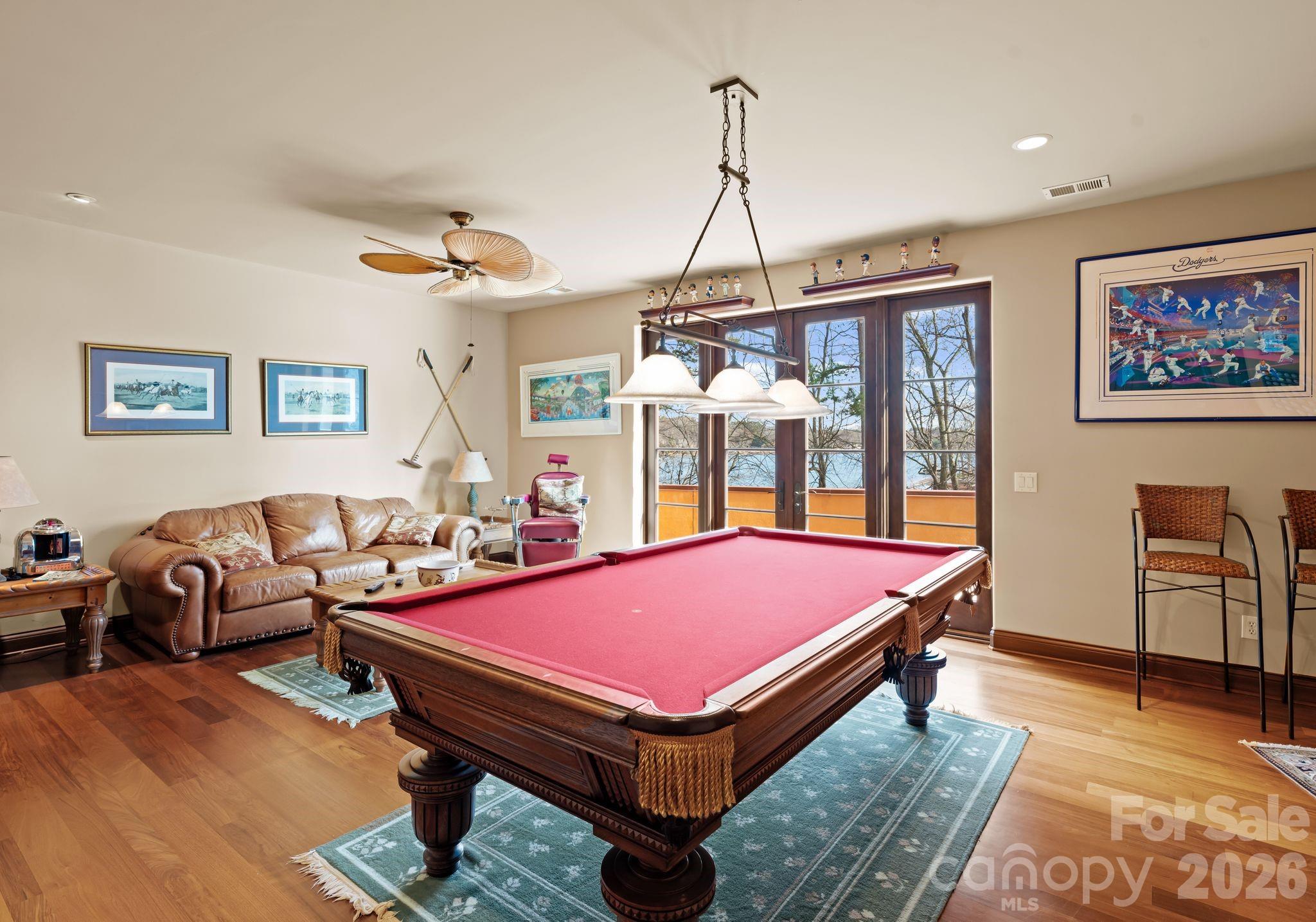 Gracefully positioned along a wide, open stretch of Lake Norman within the prestigious community of The Point, this European-inspired waterfront estate blends timeless architecture with elevated lakefront living. Warm stucco exteriors, arched windows, and rich wood detailing create a striking first impression, while inside, exposed beams, stone fireplaces, and handcrafted cabinetry reflect old-world craftsmanship rarely found today. Expansive windows and French doors frame sweeping water views and seamlessly connect the interior to outdoor terraces. The primary suite is thoughtfully located on the main level, offering a private retreat complete with a spa-style bath featuring dual vanities, soaking tub, and walk-in shower. Upstairs, generously sized secondary bedrooms are complemented by a dedicated office, craft room, and spacious bonus area — providing exceptional flexibility for modern living. The walkout lower level transforms into a lifestyle wing with a fully equipped exercise room, substantial workshop, and abundant storage. Outside, a private dock extends your living experience onto the water, perfectly positioned along a serene yet expansive cove with long-range views ideal for boating, paddle mornings, and sunset cruises. A rare opportunity to own a distinctive waterfront residence in one of Lake Norman’s most sought-after golf and waterfront communities.