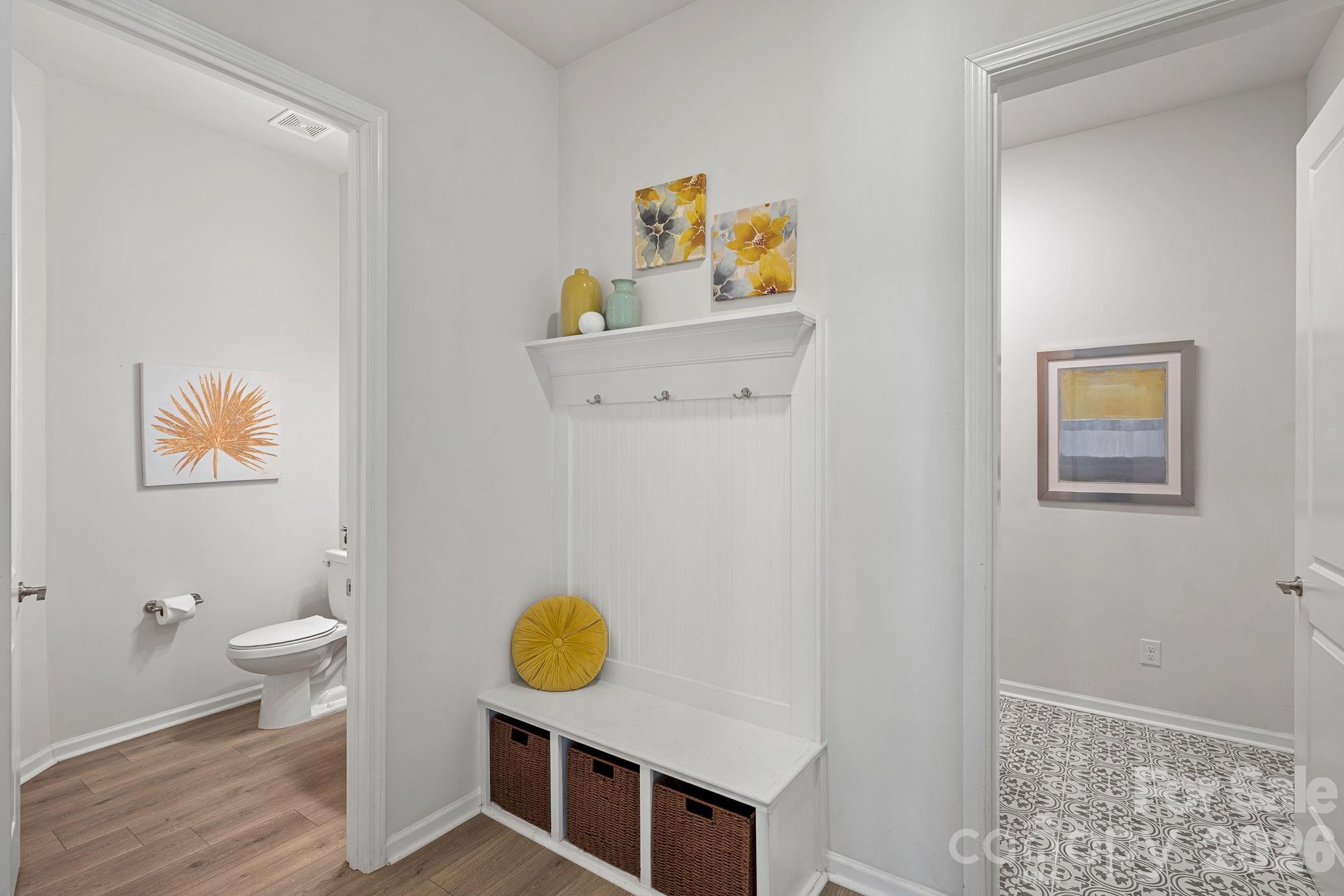 Lower-level Laundry Room with cabinetry, Half bath and Convenient drop Zone!