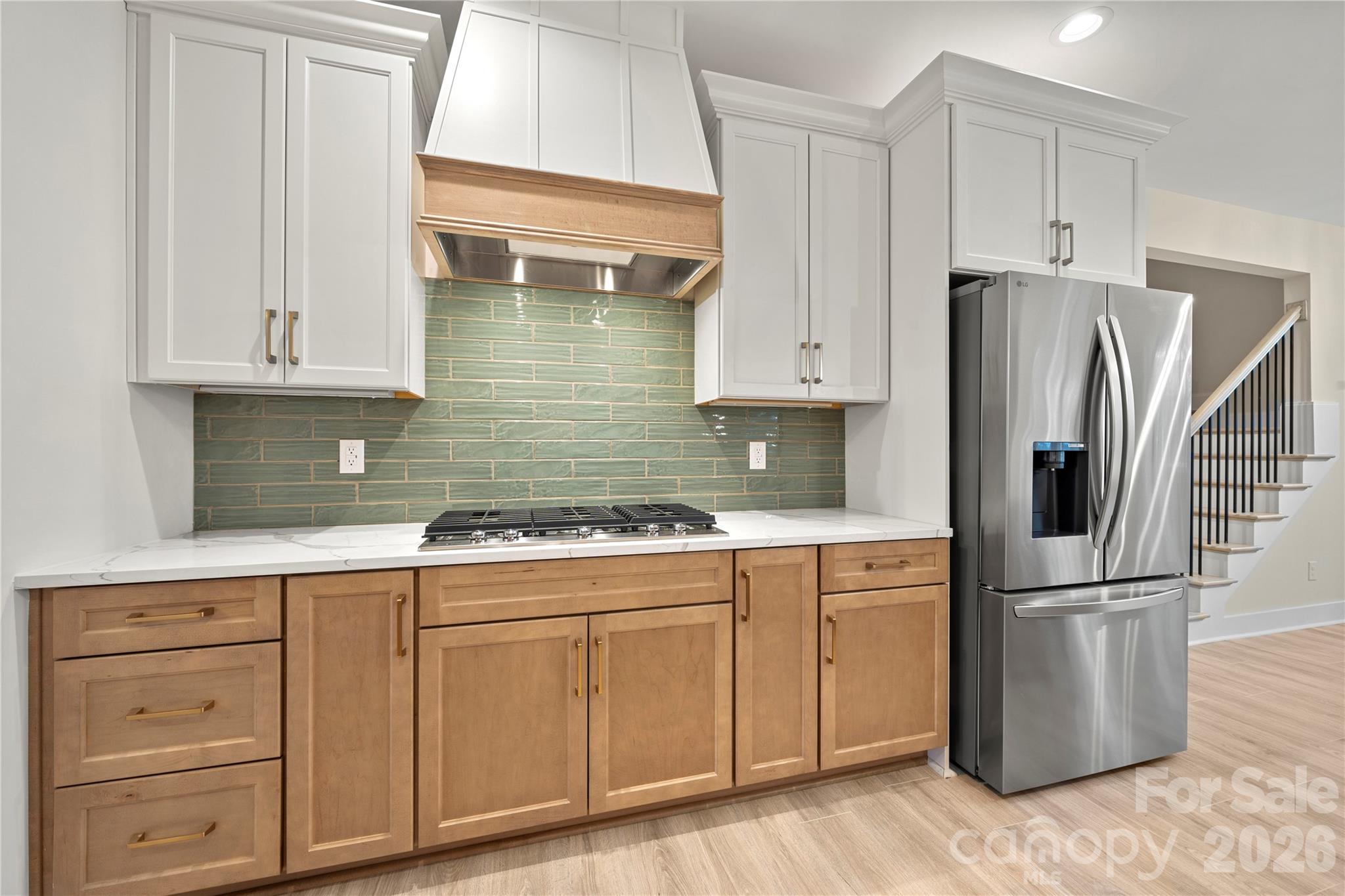 Featuring a massive center island, luxury countertops, stainless steel appliances, 5 burner gas cooktop. The spa inspired primary bath is a serine retreat designed for ultimate relaxation.