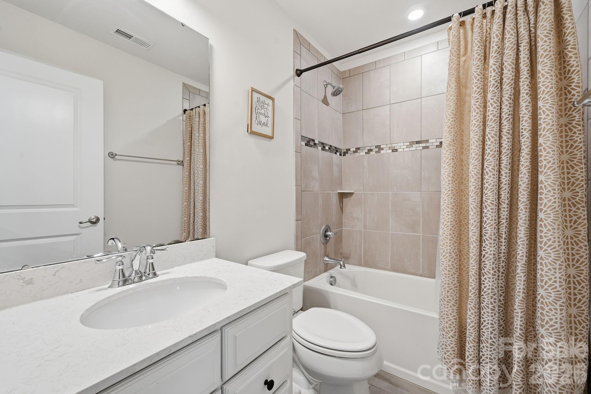 Upstairs, you’ll find two secondary bedrooms sharing a well-appointed hall bath, along with a laundry room conveniently located on the bedroom level. The primary suite is generously sized with a walk-in closet and a beautifully finished en suite featuring a double vanity, tiled shower, and linen closet for added storage.