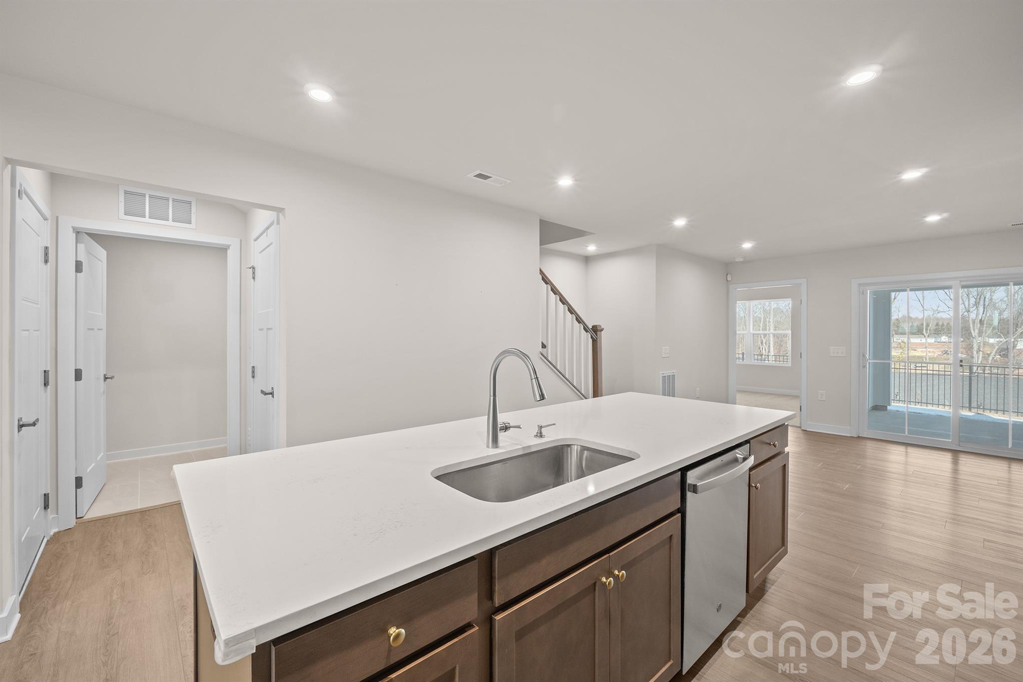 Built in 2024, this pristine 3-bedroom, 2.5-bath townhome checks off hard-to-find boxes, starting with a primary suite on the main level, complete with a private ensuite bath and a spacious walk-in closet. The main living area features stylish LVP flooring and an open-concept design perfect for today’s modern lifestyle. The kitchen shines with beautiful cabinetry, stunning quartz countertops, a large island, and stainless steel appliances, ideal for entertaining or everyday living. Step outside to the private covered patio with partitioned privacy, perfect for quiet evenings or morning coffee. Upstairs, you’ll find two additional bedrooms and a full bath, offering flexible space for guests, family, or a home office. Also enjoy ample storage with a large walk-in attic.