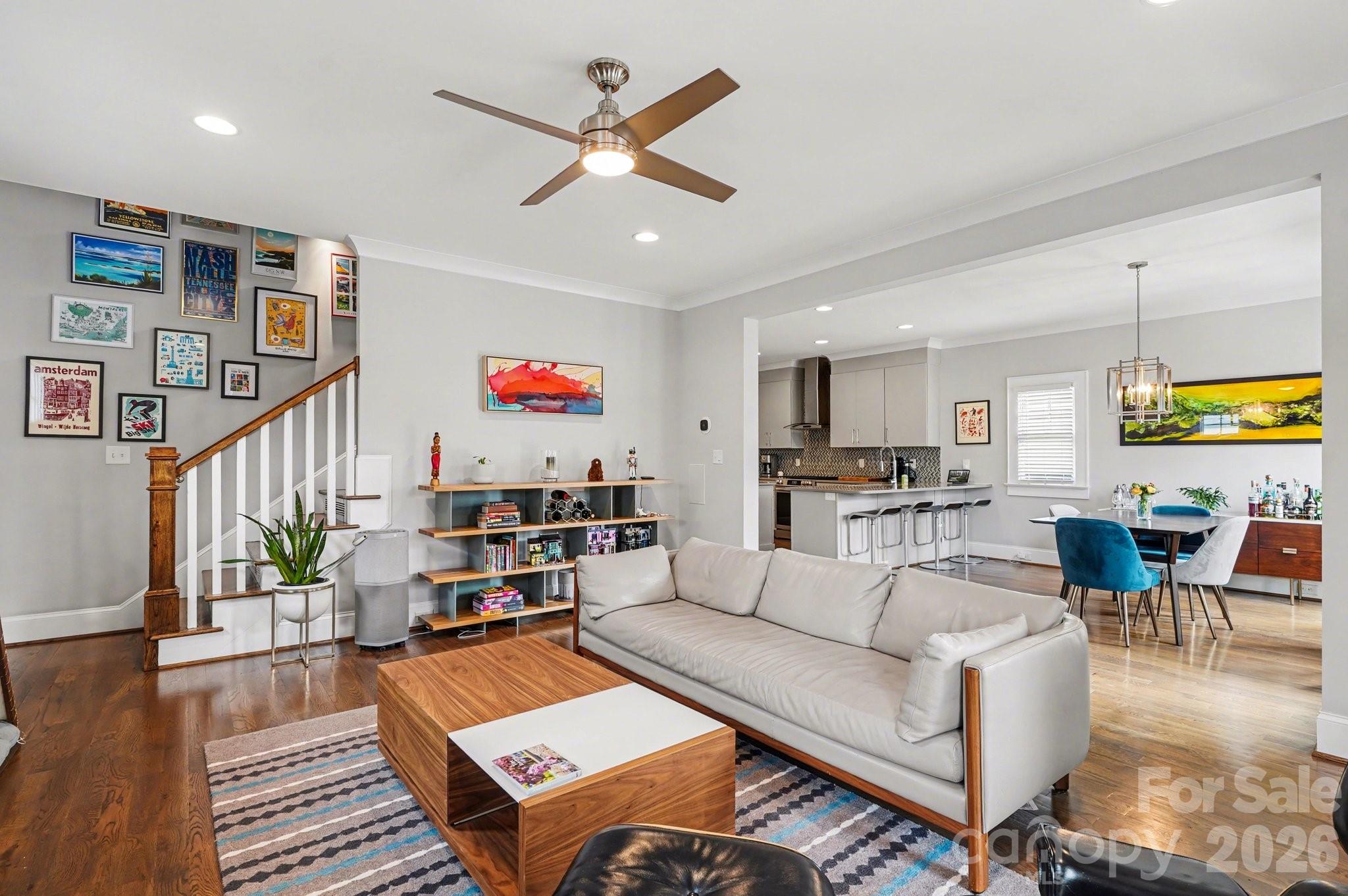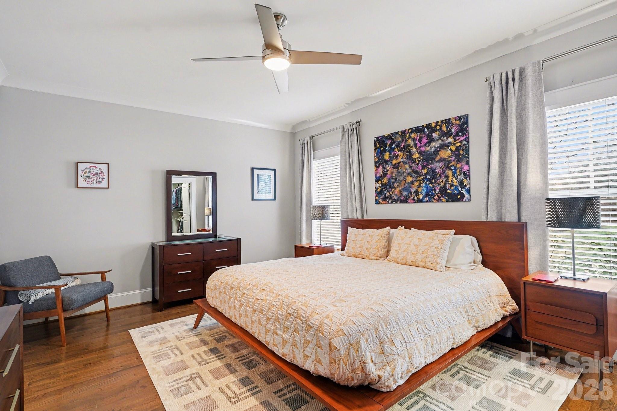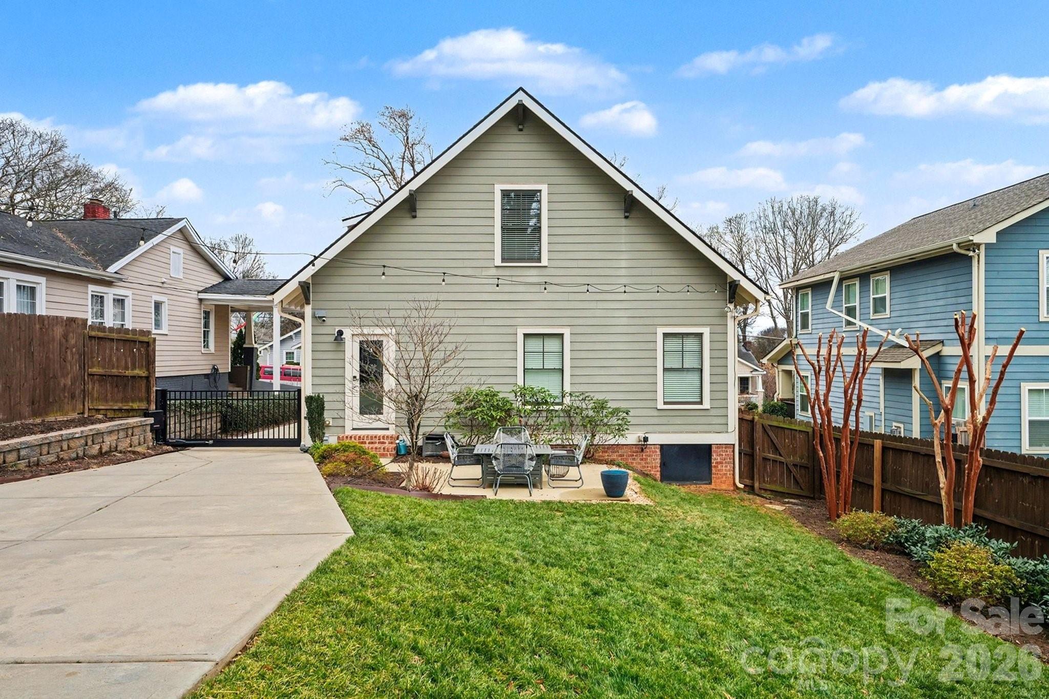 One-owner "modern bungalow" (built in 2014) located on the edge of Uptown Charlotte in the popular Belmont neighborhood. Meticulously maintained and improved, the house shows beautifully with site-finished, real wood floors throughout. Abundant natural light floods the open-floor kitchen/dining/living downstairs, including powder room. Perfect for entertaining, the floorplan flows effortlessly to lovely outdoor spaces -- to the covered front porch and onto the back patio and fenced rear-yard, with in-ground irrigation. Primary ensuite bedroom with generous closet (built-ins) is also located downstairs. A gorgeous, wooden stairway is tucked away and leads to upstairs with two large bedrooms, sharing a full, hallway bath; the 2nd level also offers a flex/office area and ample storage. Electric driveway gate and detached 2-car garage offer security and additional storage as well. Ideally located between Uptown Charlotte and Plaza-Midwood just two short blocks from the Sugar Creek Greenway, 7-minutes to the light rail, and walking distance to Optimist Hall, Urban District Market, breweries, restaurants, coffee shops, and parks. The home offers fantastic views of the Queen City skyline, best enjoyed from the Southern, covered front porch.