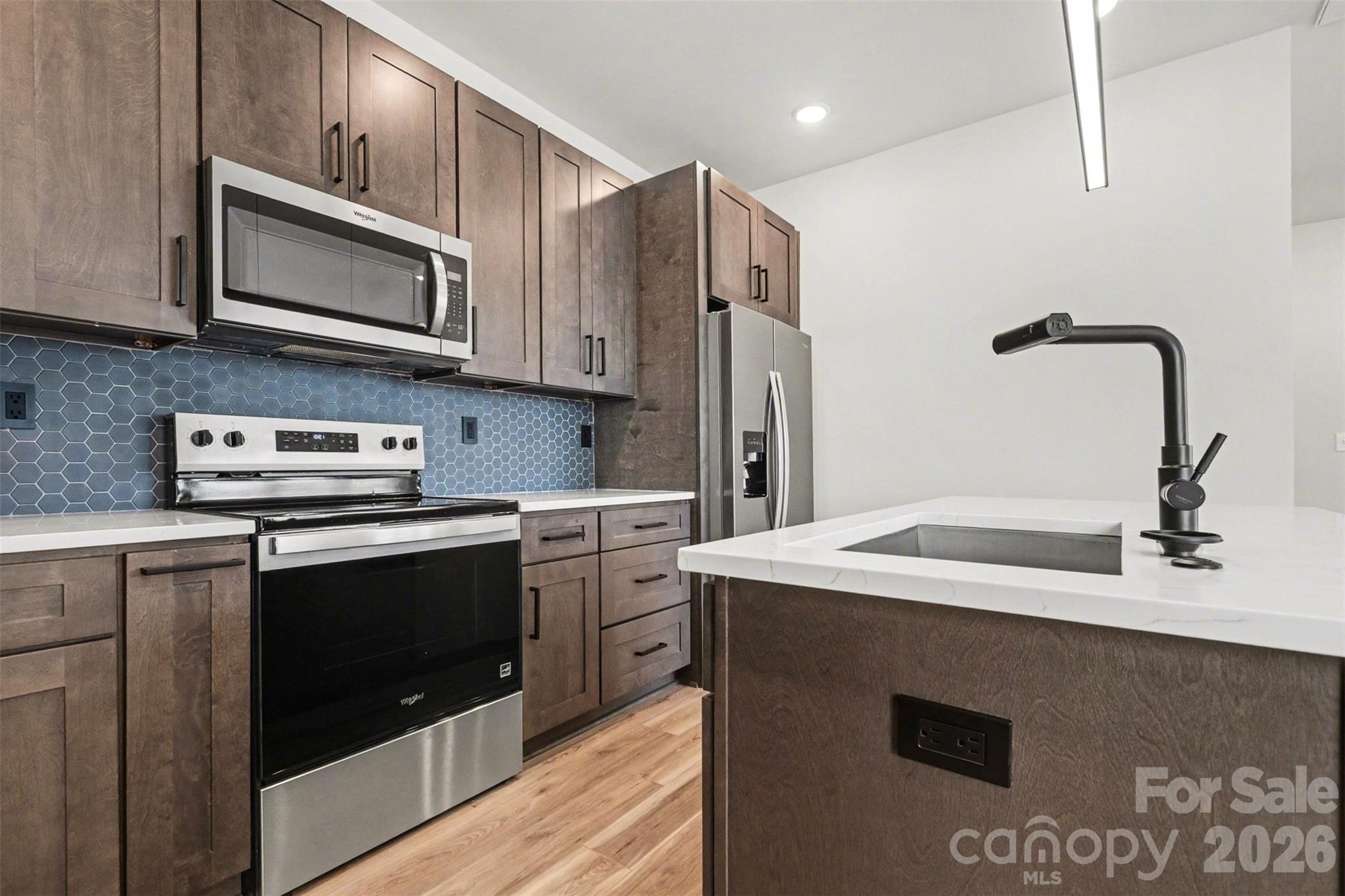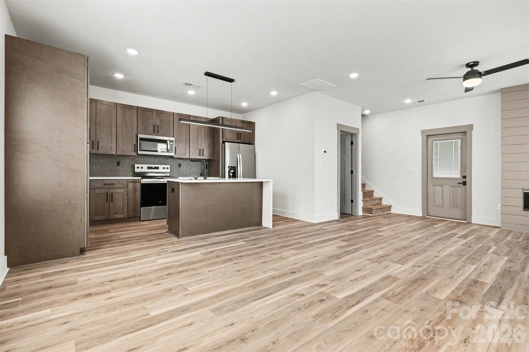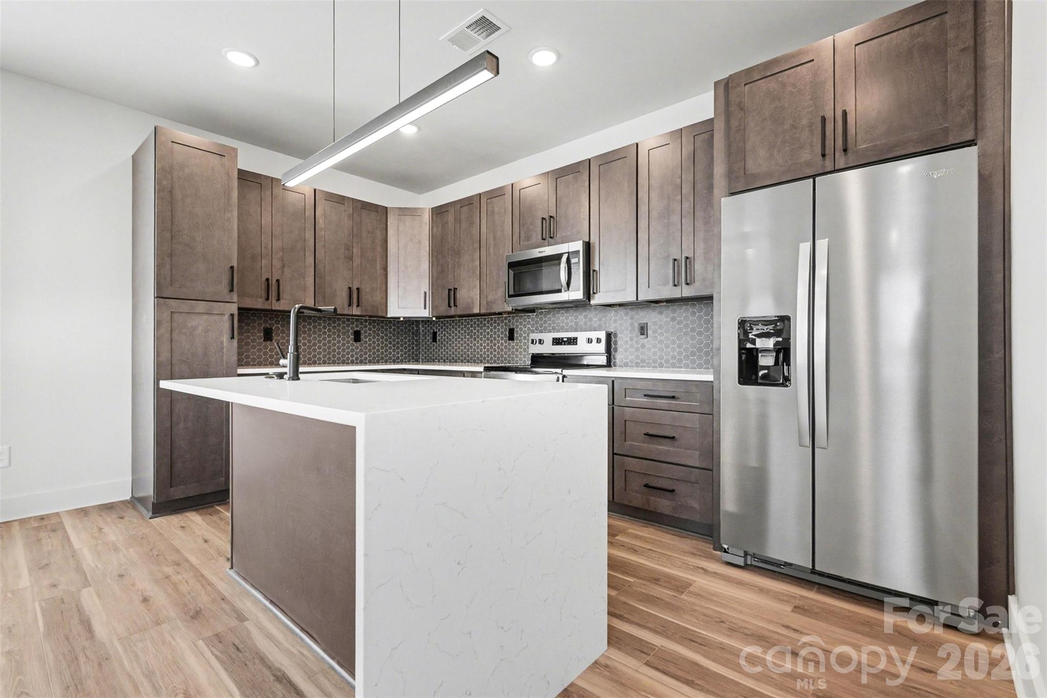 Modern new construction in a prime Kannapolis location! This home features an open layout centered around a waterfall-edge kitchen island, sleek cabinetry, and modern lighting. LVP flooring runs throughout the home, creating a clean, low-maintenance finish from room to room. The living room includes a fireplace, and all appliances convey, making this home move-in ready! The primary suite offers a floor-to-ceiling tiled walk-in shower, LED mirrors, accent walls, and a spacious walk-in closet — all designed with a modern, elevated feel. Located approximately half a mile from downtown Kannapolis and everything it offers, including The GEM Theatre, Atrium Health Ballpark, Veterans Park, along with local restaurants, coffee shops, and entertainment venues. New construction in this central location is a rare opportunity at this price point. Come tour now!