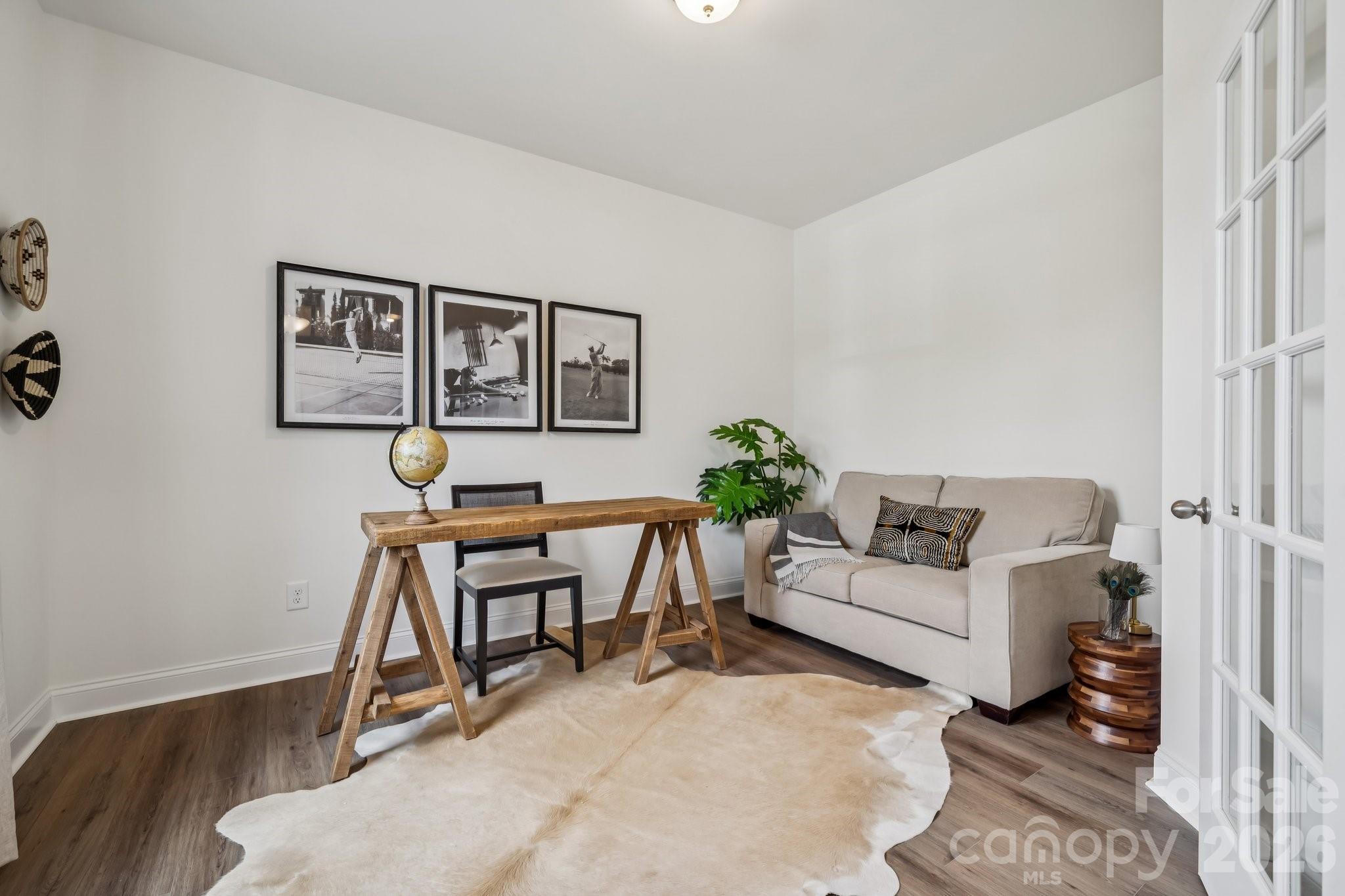 If maintenance free living, being close to the Greenway, SouthPark, Uptown, medical and financial districts, the CLT Douglas Airport, shopping and terrific dinning is important to you, then you have found your next home. Come experience this STUNNING, townhome with a TWO car GARAGE is in the heart of South Charlotte. The main living level features tons of natural light in the spacious great room and a gourmet kitchen with large glass doors that overlook a quaint upper balcony facing a green space. This kitchen has an oversized island & stainless steel appliances, drop-in cooktop and wall oven, microwave and SS hood- perfect for entertaining. The serene primary suite features a generous walk-in-closet & ensuite bath with dual sinks, a walk-in tile shower with semi-frameless glass door & tile bench seat. Two secondary bedrooms, a full bath and laundry area complete the 3rd level. Special tinted coding on windows in primary bedroom and sliding doors allow for light but privacy. The entrance floor has a multi-use bedroom/study/office with a full bathroom adjacent to the foyer. Two closets in foyer allow for great storage. Come experience this turnkey townhome and inquire about purchasing it furnished. The LOCATION is perfection. The two bay garage is a rarity. This property is a wise investment for any homeowner.