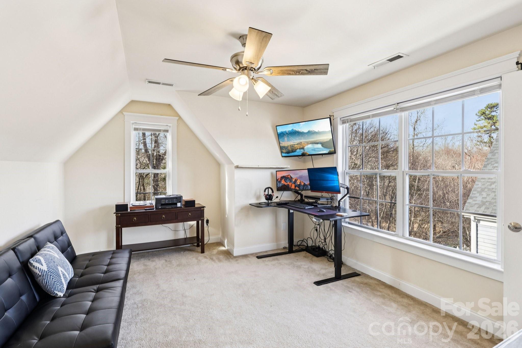 *Multiple Offer situation. Strongest and Best by noon, 2/15/2026* Welcome home to this light-filled, beautifully maintained property offering space, flexibility, and privacy in a peaceful wooded setting — all located in an amenities-rich community. Major updates provide peace of mind, including a new roof (2019), 4-ton HVAC system (2019), and a mini-split system (2024) servicing the bonus/bedroom area for enhanced comfort. The main level features durable luxury vinyl plank flooring and an inviting open layout ideal for everyday living and entertaining. The kitchen shines with granite countertops, abundant cabinetry, and generous prep space. Upstairs, the large primary suite offers a private bath complete with a separate shower, soaking tub, and walk-in closet. The third bedroom/bonus room is huge, providing incredible flexibility for guests, a media room, playroom, or additional living space. The third floor provides the perfect private home office, studio, or retreat space. You’ll also appreciate the convenient walk-out storage area for seasonal items and organization. Step outside to enjoy a covered rear porch as well as an extended patio all overlooking a fenced backyard that backs to mature woods, creating a natural buffer and added privacy. Move-in ready, thoughtfully updated, and perfectly positioned within a vibrant community offering neighborhood amenities — this home truly checks all the boxes.