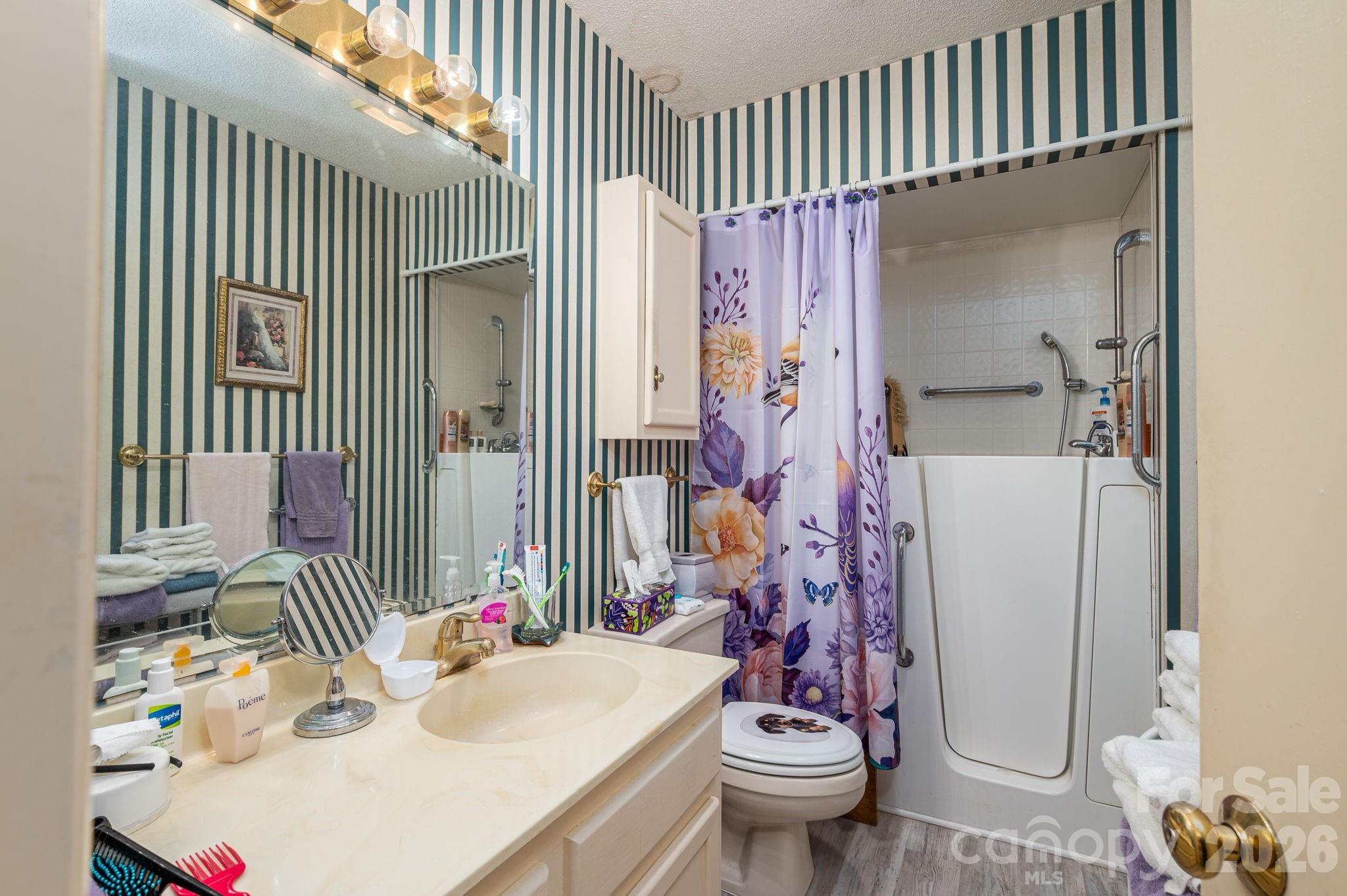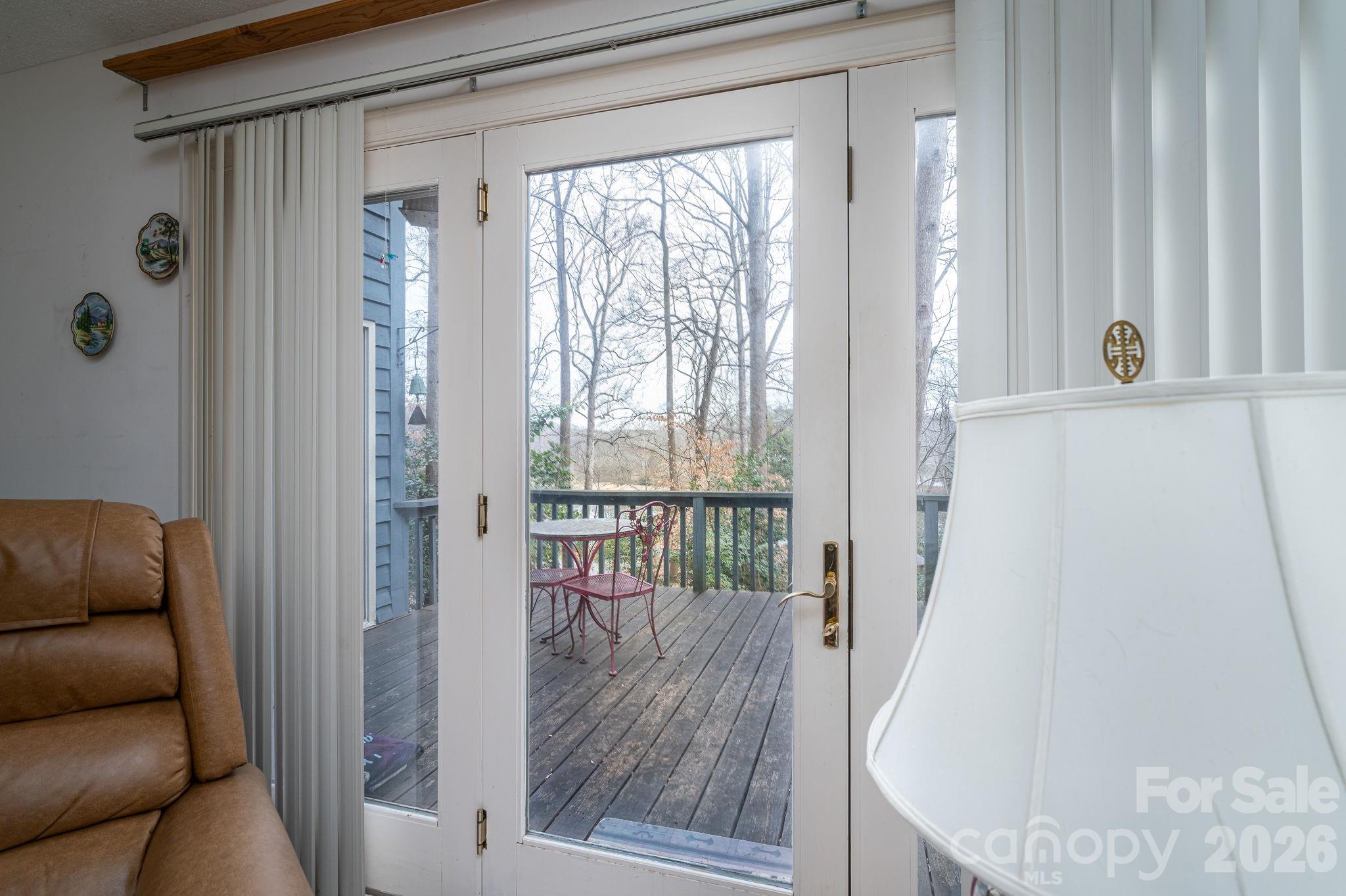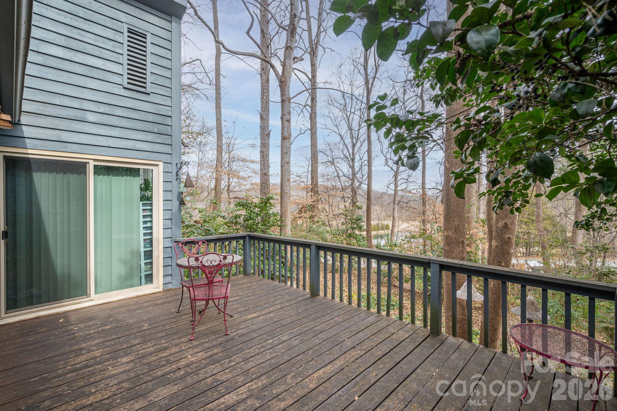 One level home with no interior steps and ramp to the front door. Convenient to restaurants and shopping. Living room with fireplace, built-ins and sliding glass door out to a large deck at overlooks a beautiful wooded yard and neighboring pond. The dining room offers a bay window that is perfect for plants. The full bathroom offers a walk-in tub. Large primary bedroom with picture window with a great view and sliding door to the deck. Easy to maintain luxury vinyl plank floors throughout the home and a tankless water heater. Low HOA ($90 a quarter) covers street lights, street maintenance and lawn care.
