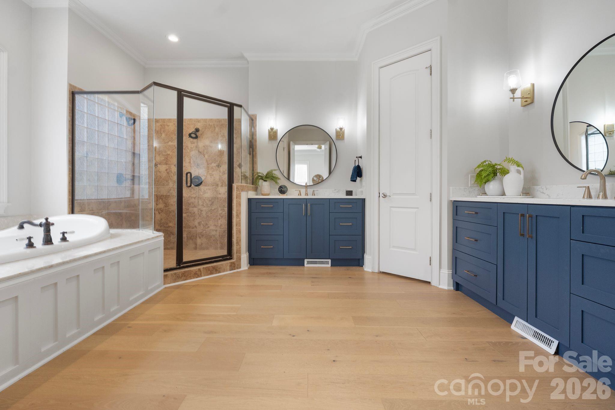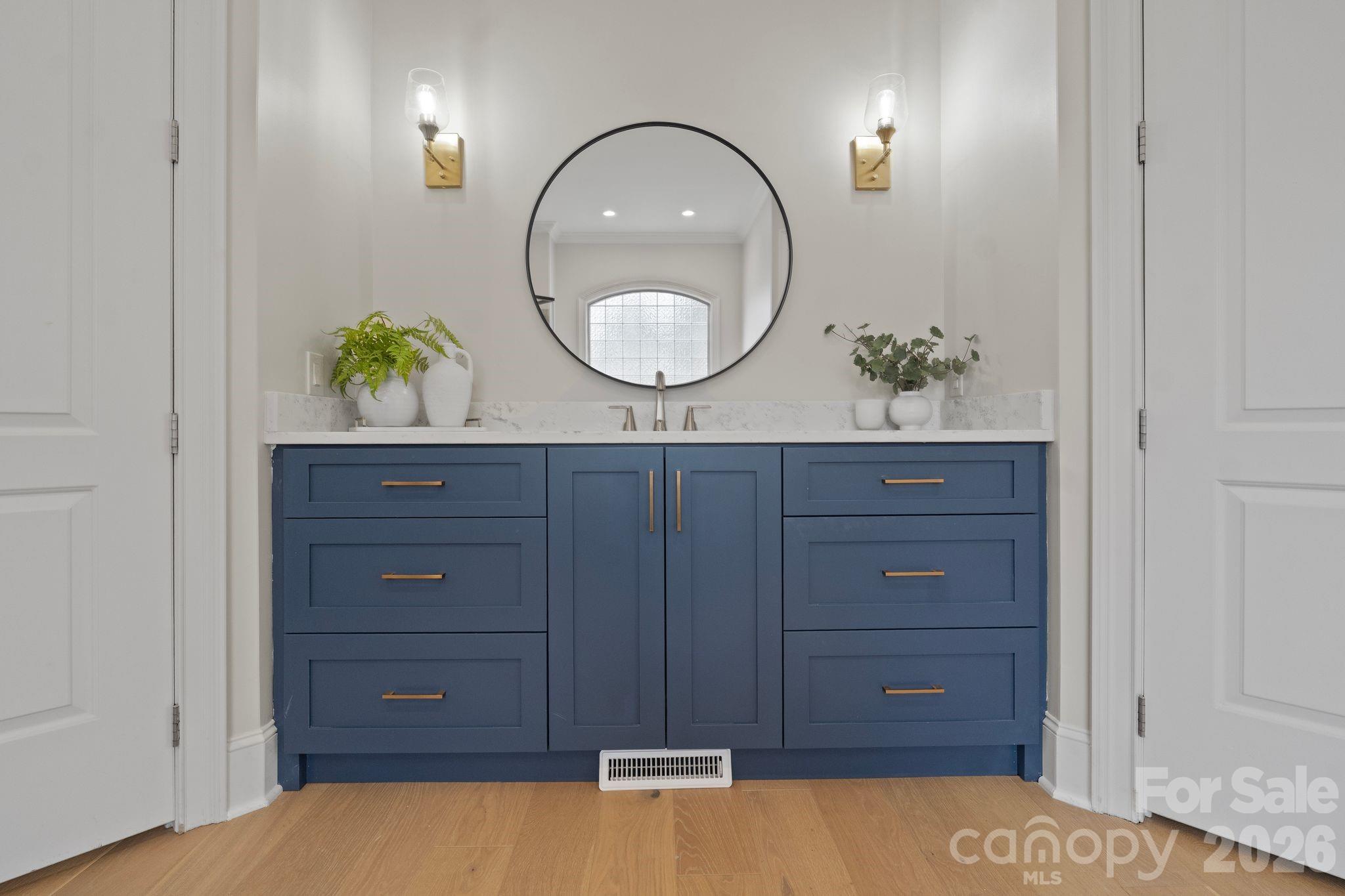 Step through the double stained doors into a dramatic two-story foyer highlighted by a grand staircase and arched doorways. Newly installed wide-plank hardwood floors ( 2023) flow seamlessly throughout the main level and up the staircase, into to second floor hallway complemented by updated spindles and curated designer finishes at every turn. The private main level office is nothing short of inspiring—featuring a gas fireplace, custom built-ins, and a coffered ceiling that elevates your work-from-home experience.