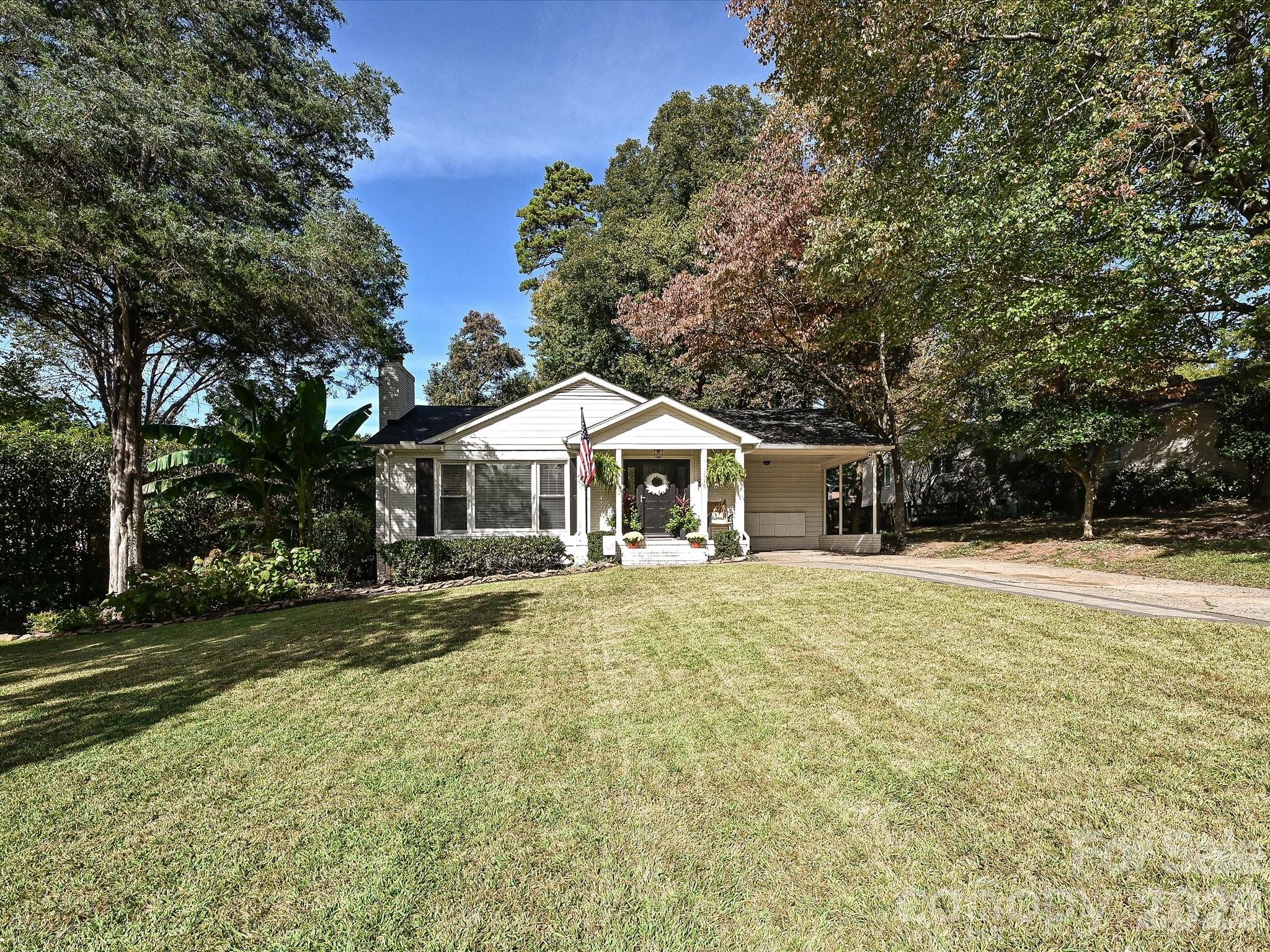 Wonderful brick ranch in the heart of Madison Park on desirable Montford Drive! A sunlit foyer welcomes you into a spacious living room anchored by a gas fireplace, with seamless flow into the dining area and kitchen, ideal for both everyday living and entertaining. The kitchen features white cabinetry, stainless steel appliances, a walk-in pantry, and additional work/drop zone space for added functionality. Down the hall, the primary suite offers a beautifully updated bath complete with a walk-in shower and dual vanity (work done my licensed contractor, no permits on file). Two secondary bedrooms share a generously sized hall bath with a tub/shower combination and ample storage. Step outside from the kitchen to a covered porch, perfect for relaxing or hosting, overlooking a private, fenced backyard. All just minutes from Park Road Shopping Center, Little Sugar Creek Greenway, SouthPark, and everything that makes Madison Park one of Charlotte’s most loved neighborhoods.