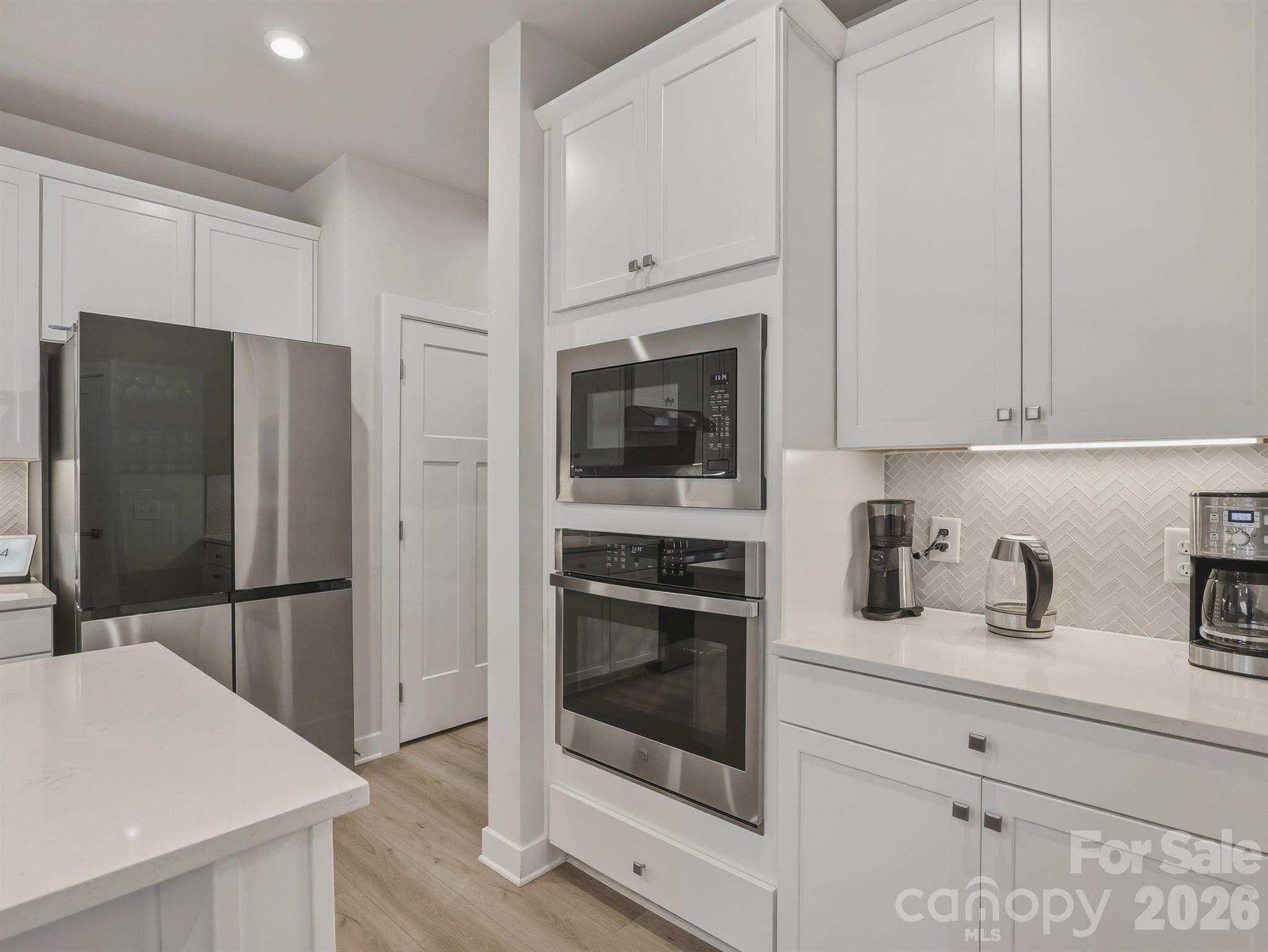 Practically new and exceptionally spacious, this beautifully designed home offers modern comfort and thoughtful upgrades throughout. Just off the entry, a private office enclosed with elegant glass doors creates the perfect work-from-home space. Luxury vinyl plank flooring flows seamlessly through the main living areas, combining durability with style. The primary bedroom is conveniently located on the main level and serves as a relaxing retreat, complete with an ensuite bath featuring a large walk-in shower, quartz countertops, and dual sinks. The gourmet kitchen is a true standout, showcasing quartz countertops, a stylish tile backsplash, extra-tall cabinetry for abundant storage, and the rare bonus of two ovens — one gas and one electric wall oven — ideal for entertaining or preparing multiple dishes with ease. Upstairs, a generous loft provides flexible space for a reading nook, media room, or play area. Two roomy secondary bedrooms each include their own walk-in closet, offering comfort and privacy for family or guests. A tankless water heater adds energy efficiency, while the walk-in attic with heat and air delivers convenient, climate-controlled storage. Blending functionality, efficiency, and modern design, this home is truly move-in ready. Washer, Dryer and Refrigerator included.