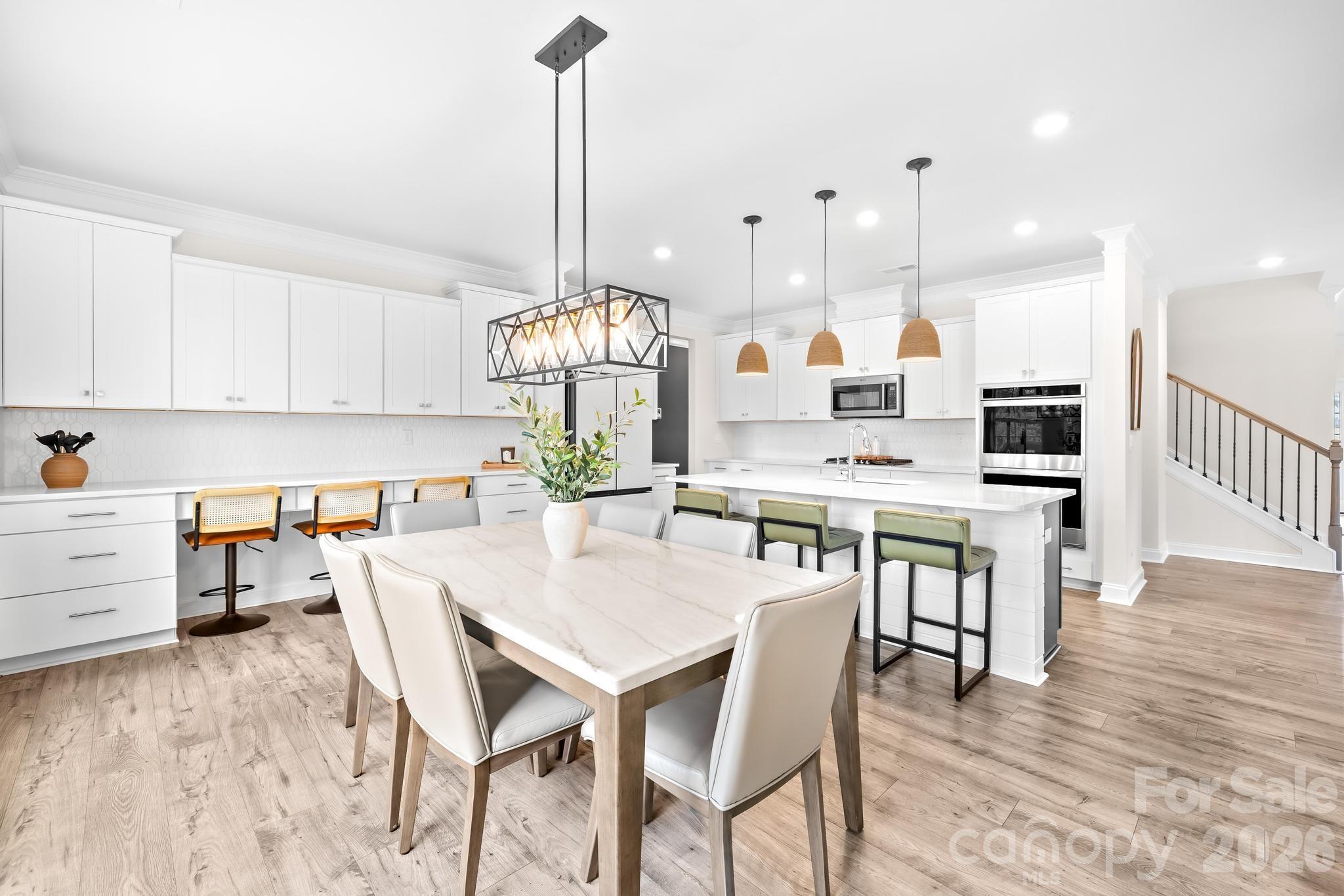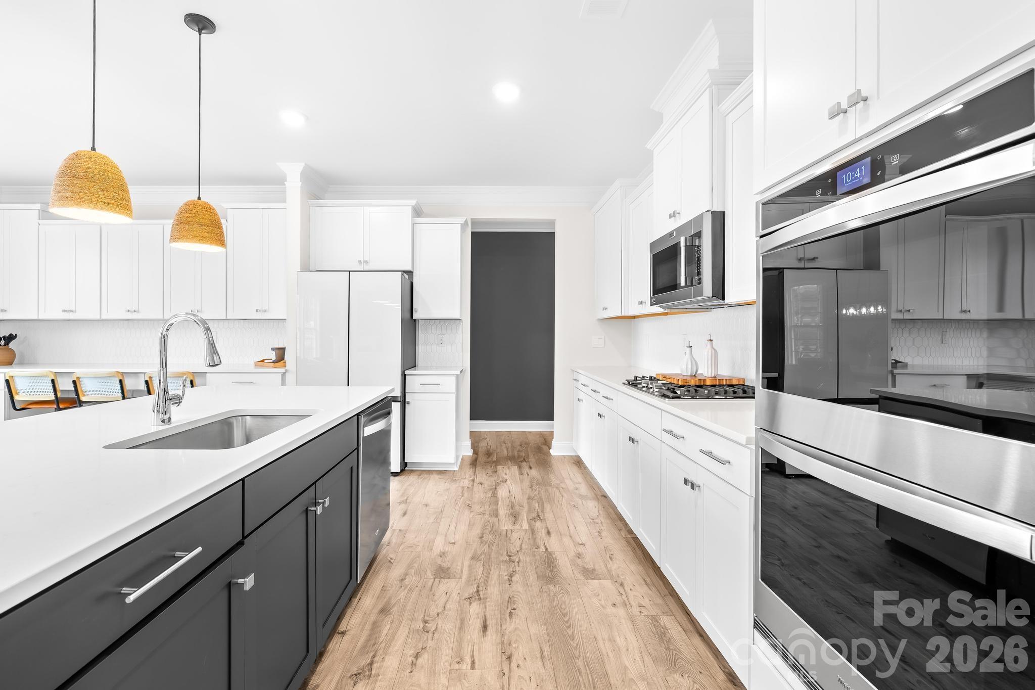 Welcome to this stunning, upgraded, and truly better-than-new Jasmine floorplan, ideally positioned on a private premium 0.44-acre lot in the highly sought-after Enclave at Falls Cove. Only two years old and offering over 4,500 square feet of meticulously maintained living space, this expansive 5-bedroom, 4.5-bathroom residence perfectly combines luxury, functionality, and modern enhancements, creating a home that feels more like a custom build. From the moment you arrive, the home makes a lasting impression with elegant curb appeal, professional landscaping, and extensive exterior improvements designed to enhance both privacy and outdoor living. Inside, soaring ceilings, wide-plank flooring, and a light neutral palette highlight the home’s open, flowing layout. No detail has been overlooked, with over $100,000 in carefully selected upgrades throughout. The main level is thoughtfully designed for both everyday comfort and entertaining, featuring a private study with French doors, a generous dining area, mudroom/drop zone with built-ins, oversized living room with gas fireplace, and a desirable guest suite with a full bath. The gourmet kitchen serves as the centerpiece of the home, showcasing custom cabinetry, upgraded quartz countertops, an oversized island, walk-in pantry, breakfast area, custom wood detailing, and an impressive 11-foot kitchen extension complete with three built-in desk spaces — a rare and highly functional addition. Upstairs, the home continues to impress with abundant storage, a versatile loft area, laundry room, three spacious secondary bedrooms with walk-in closets, and an oversized primary retreat featuring a spa-inspired en-suite bath, expansive sitting room, and oversized walk-in closet. Step outside to your private backyard oasis, where extensive hardscaping and landscaping create a truly exceptional outdoor environment. Highlights include a custom 500+ square foot patio with built-in fireplace and retaining wall, decorative rock accents, more than 60 Arbor Vitae privacy trees, wrought iron perimeter fencing, and a backyard extension exceeding 30 feet — offering space and seclusion rarely found in this community. An irrigation water meter has already been paid for with the town (not yet installed). Additional upgrades further elevate the home’s value and convenience, including an epoxy-coated 3-car garage with overhead storage rack system, Tesla wall charger, and Aquasana whole-house water filtration system. Interior enhancements include smart home features, an ADT security system with window and door coverage, front and rear exterior cameras, designer light fixtures, custom wood accent walls, upgraded ceiling fans, and more. Residents enjoy resort-style amenities including a community pool, clubhouse with fitness center, playground, dog park, open green spaces, and miles of scenic wooded trails. The community’s prime location offers easy access to shopping, dining, Lake Norman State Park, and highly rated Iredell-Statesville Schools. For buyers seeking space, privacy, and high-end finishes in one of the area’s most desirable neighborhoods, this exceptional Jasmine layout presents a rare opportunity that truly stands apart.