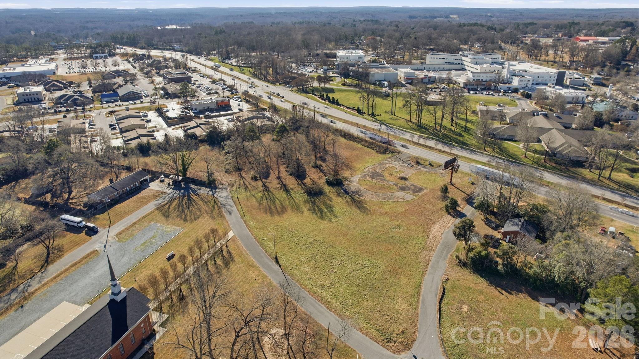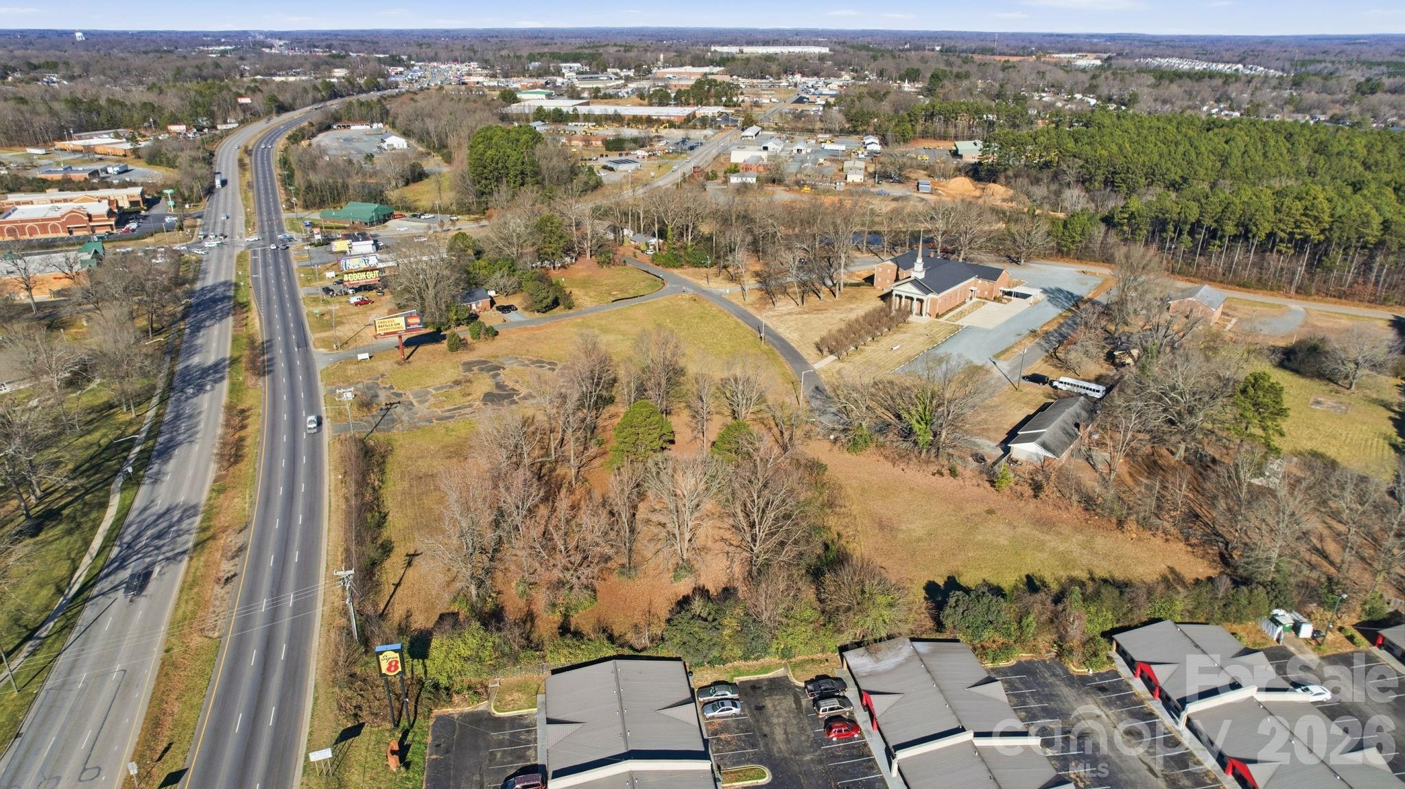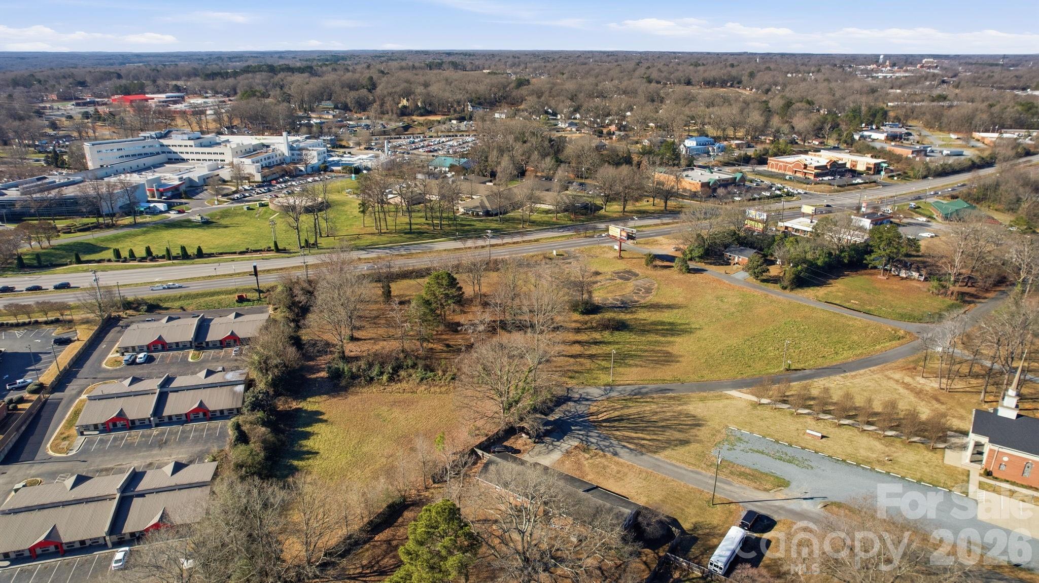 Prime 4.40-acre commercial lot on Hwy 74 / E Roosevelt Blvd in Monroe, NC, with high visibility. Close to Atrium Health Union West, retail centers, and other commercial developments. General Business zoning allows for a variety of uses. Billboard on site. No building on the property. Utilities nearby.