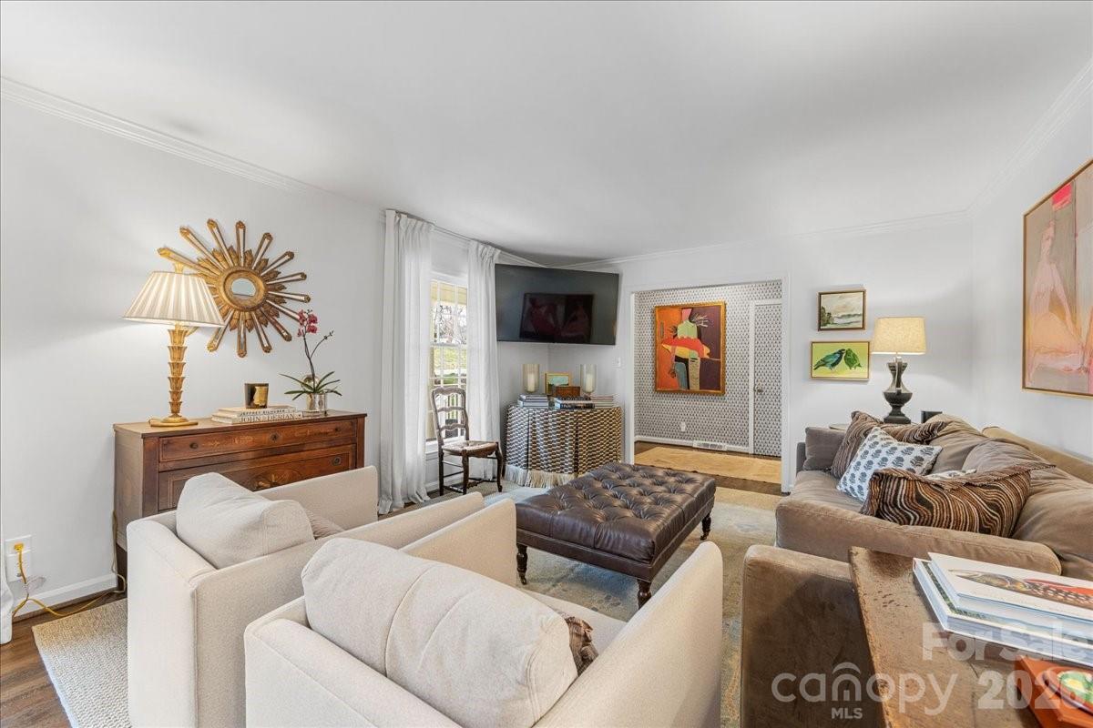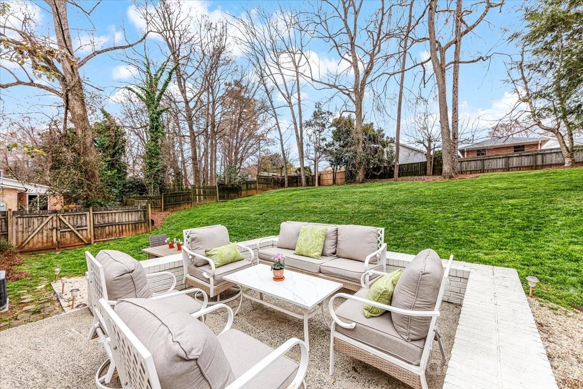 Welcome home to this charming 4BR, 2BA painted brick ranch in highly sought after Randolph Park. A rocking chair front porch invites you into this charming home. The spacious living room boasts hardwood floors and abundant natural light, opening into the dining room. The beautifully updated kitchen features crisp white cabinetry, quartz countertops, and an easy flow into the den; perfect for everyday living and entertaining. The den opens to a patio overlooking a private, fenced backyard, creating the ideal space for outdoor enjoyment. Both bathrooms have been tastefully updated with designer finishes. A generously sized mud/laundry room, just off the kitchen and attached garage, provides incredible storage and functionality; an uncommon find in this neighborhood. The rare one-car garage adds even more convenience. Enjoy living just minutes from shopping and dining at Cotswold Village Shops, as well as easy access to Uptown Charlotte and more.