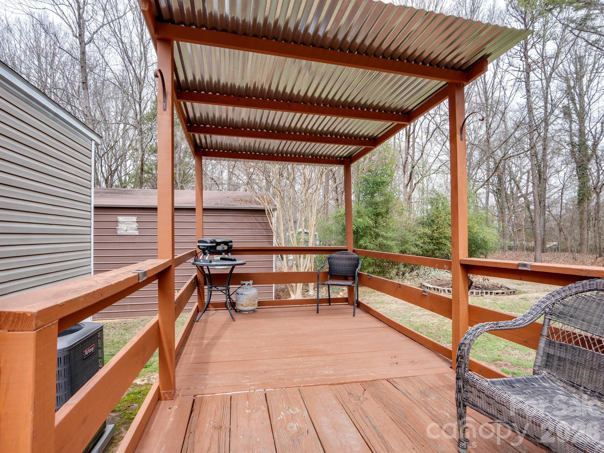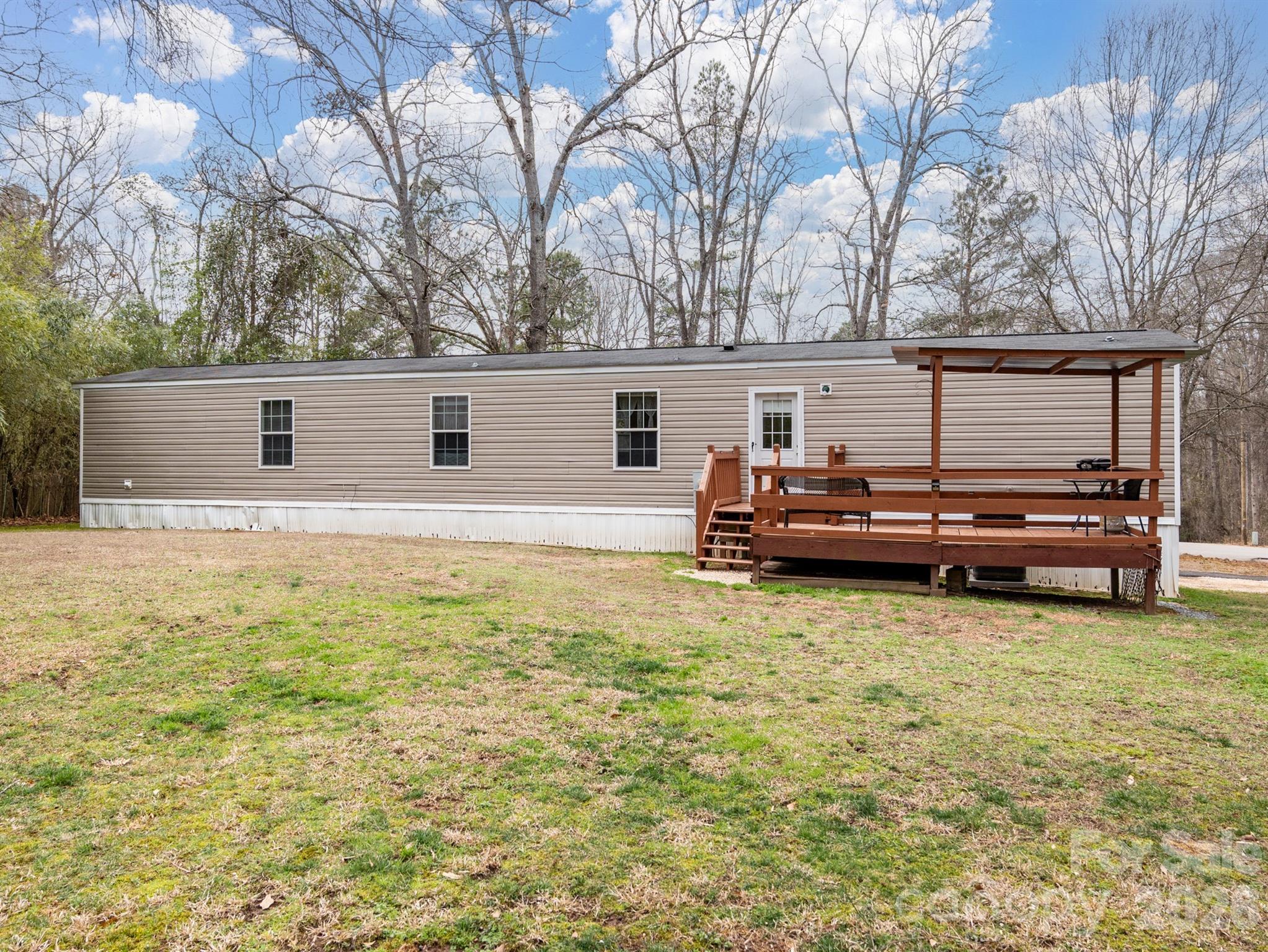 Charming 3-bedroom, 2-bath single-family home (manufactured residence) situated on a generous 1+ acre lot in the peaceful Southwinds community of Indian Land. Built in 2011, this open-concept residence offers approximately 1,166 sq ft of comfortable living space with laminate flooring throughout, wide doorways for accessibility, tape/textured drywall, and a cozy wood-burning fireplace as the focal point of the living area. The functional layout includes a ramp entry for easy access, making it ideal for comfortable everyday living. HVAC (2020), Newer Flooring (2020), Upgraded Electrical panel to Garage. New Well Filter Installed December 2022. Home includes a wired workshop/garage 16' height that is perfect for anyone who likes to work on cars/wood working or any other hobbies. Enjoy the privacy and space of country-style acreage while being conveniently located just minutes from Ballantyne, I-485, shopping, dining. Perfect for first-time buyers, downsizers, or those seeking a quiet retreat with room to grow. Don't miss this affordable opportunity in a desirable area!