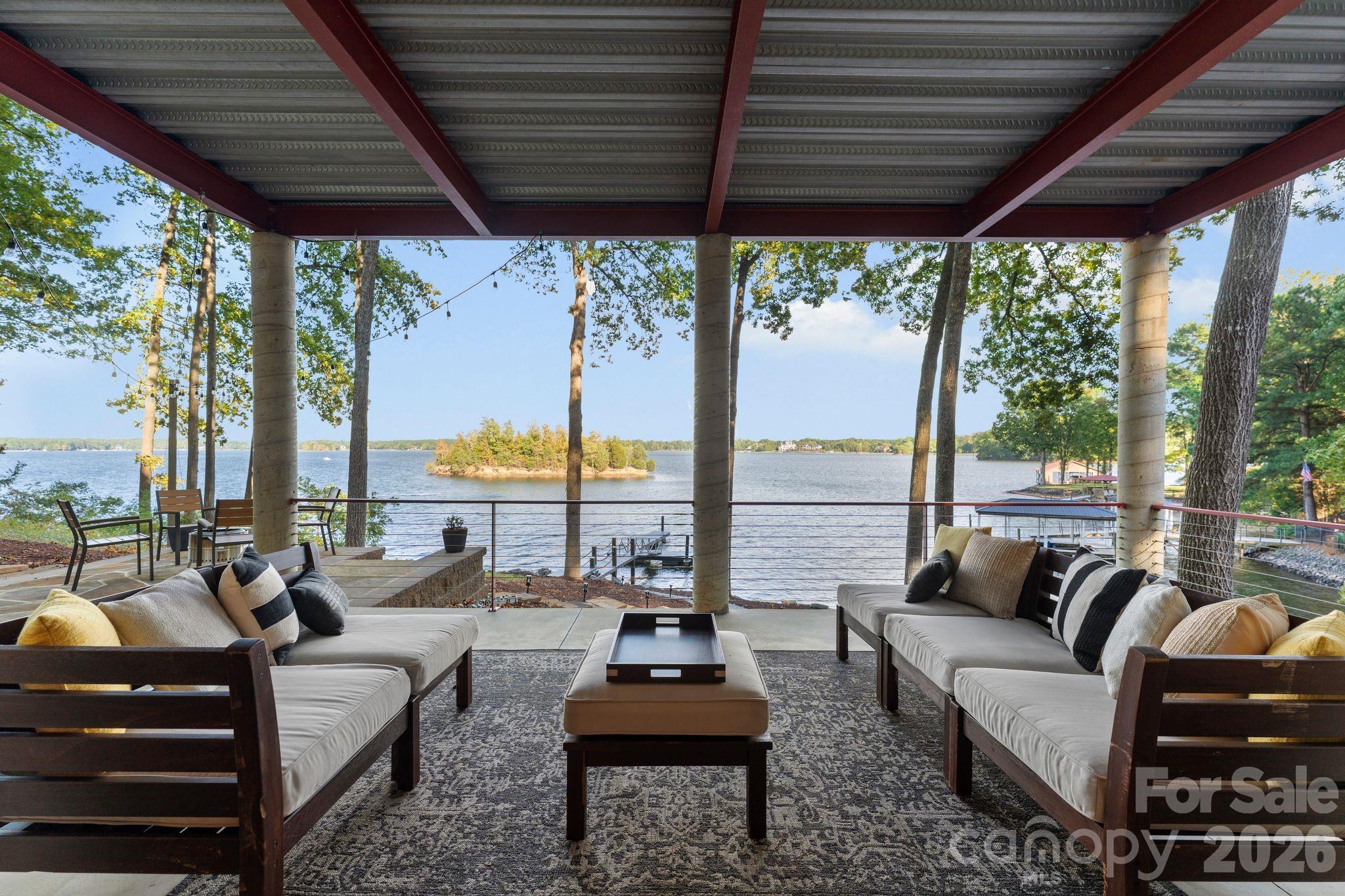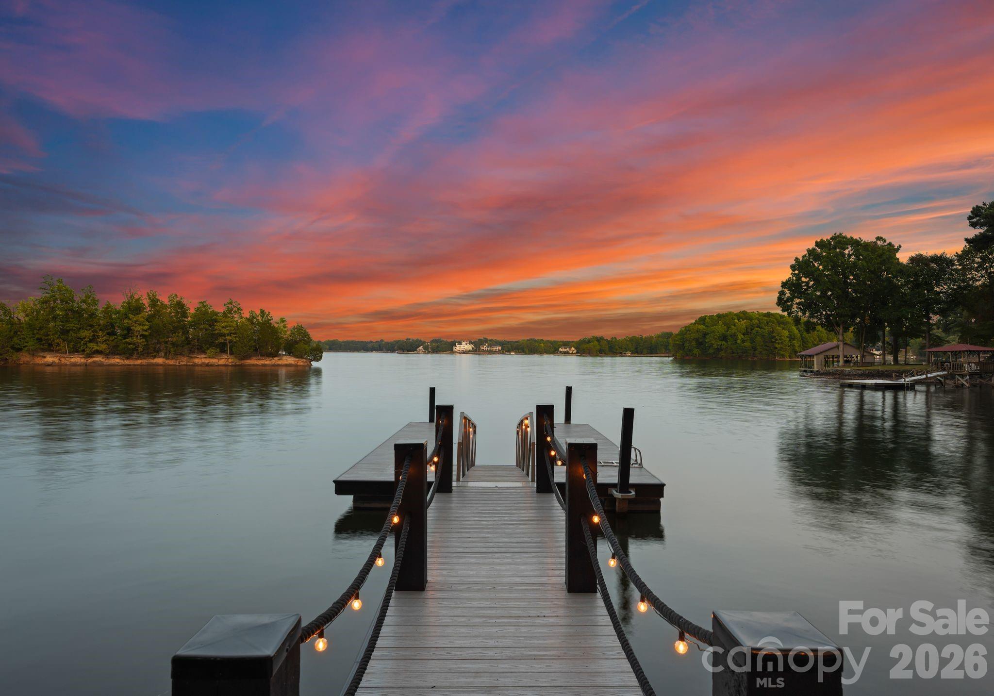 Waterfront living just beyond The Point on Lake Norman! This beautifully crafted home is tucked off the main channel near a charming island, offering calm water, sweeping sunrise views, and incredible long-range sunrise views. Enjoy your own private pier, rare sandy beach, and plenty of space to add a pool and spa.