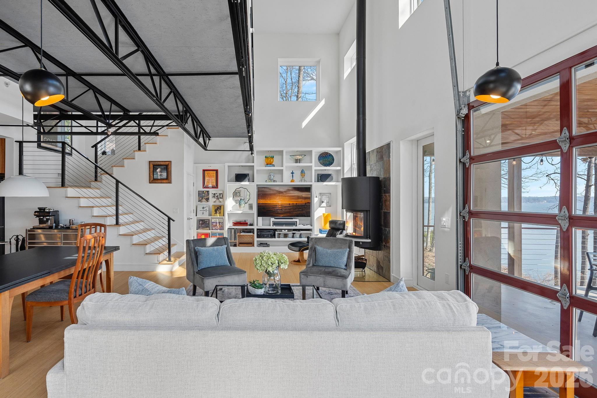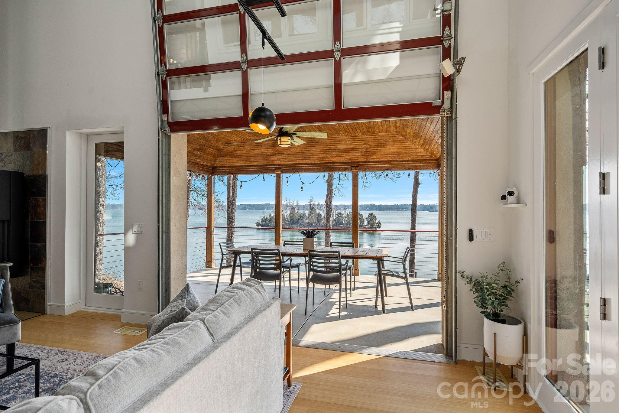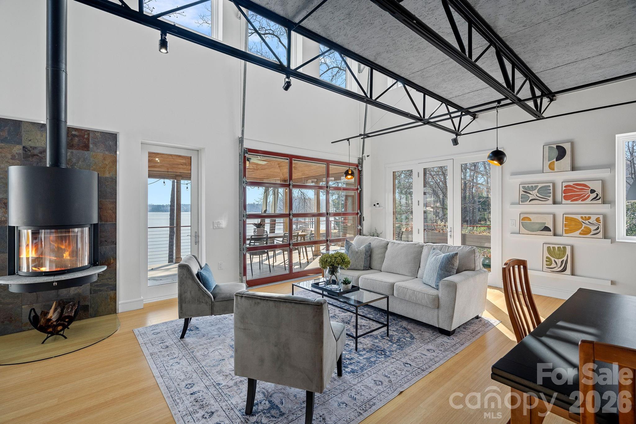 Designed for comfortable main-level living and optimizing the views, the open-concept floor plan is filled with natural light. Expansive sliding glass doors open to a large lakeside terrace, creating seamless indoor-outdoor flow — perfect for entertaining or relaxing while taking in the views.
