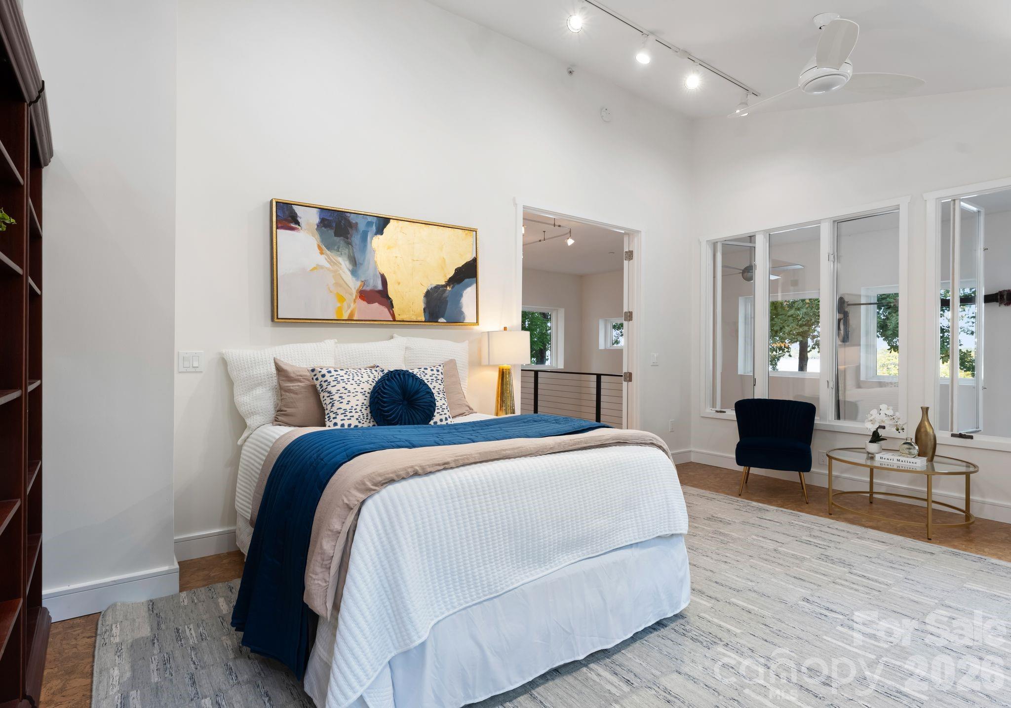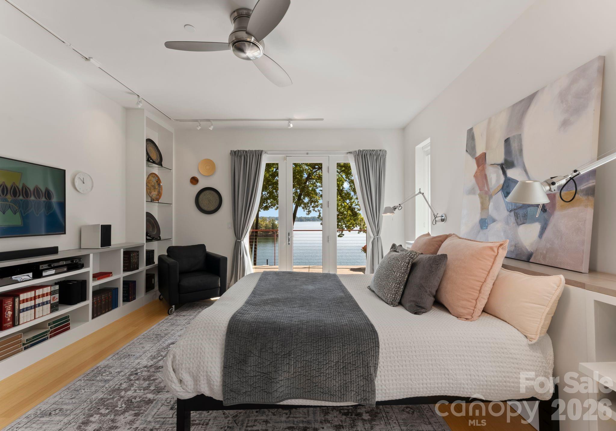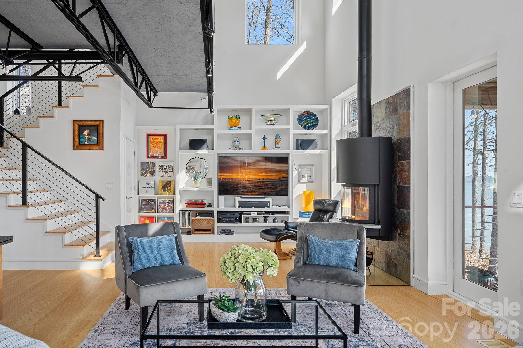 Designed for comfortable main-level living and optimizing the views, the open-concept floor plan is filled with natural light. Expansive sliding glass doors open to a large lakeside terrace, creating seamless indoor-outdoor flow — perfect for entertaining or relaxing while taking in the views.