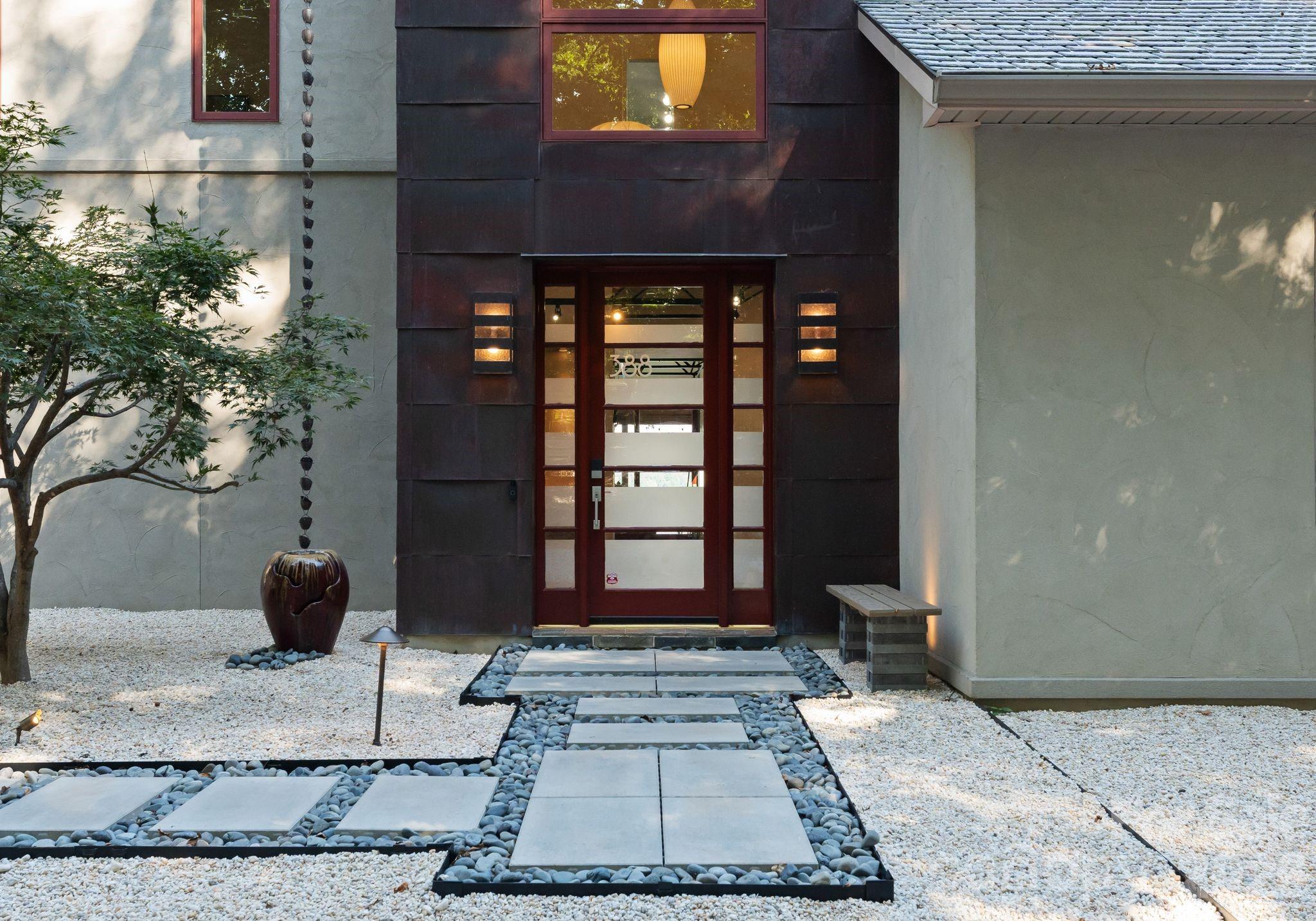Outdoor living is a standout with three expansive terraces, a newly constructed dock with composite decking, and a low-maintenance Zen-style front garden. A detached two-car garage with storage above adds extra flexibility.