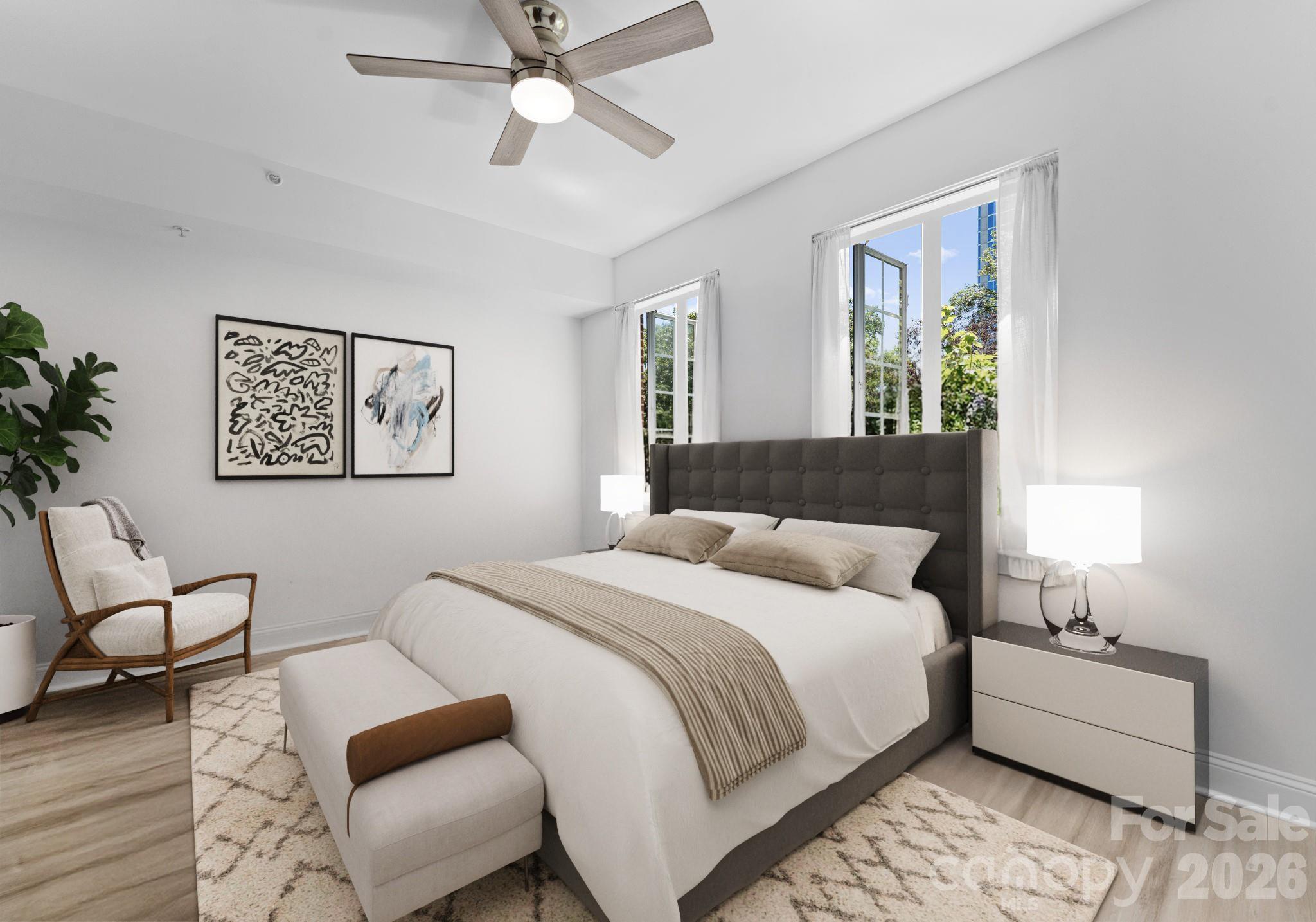 Downsizing? Right-sizing? 1st time homebuyer? Remote worker or work in Uptown? This 2 bed 2 bath modernized split layout home at sought after 5th and Poplar, is perfect whatever your lifestyle. Though compact in size feet, this home that features soft neutral toned LVP flooring & an open concept kitchen/ living /dining area is extremely functional and makes for easy living.