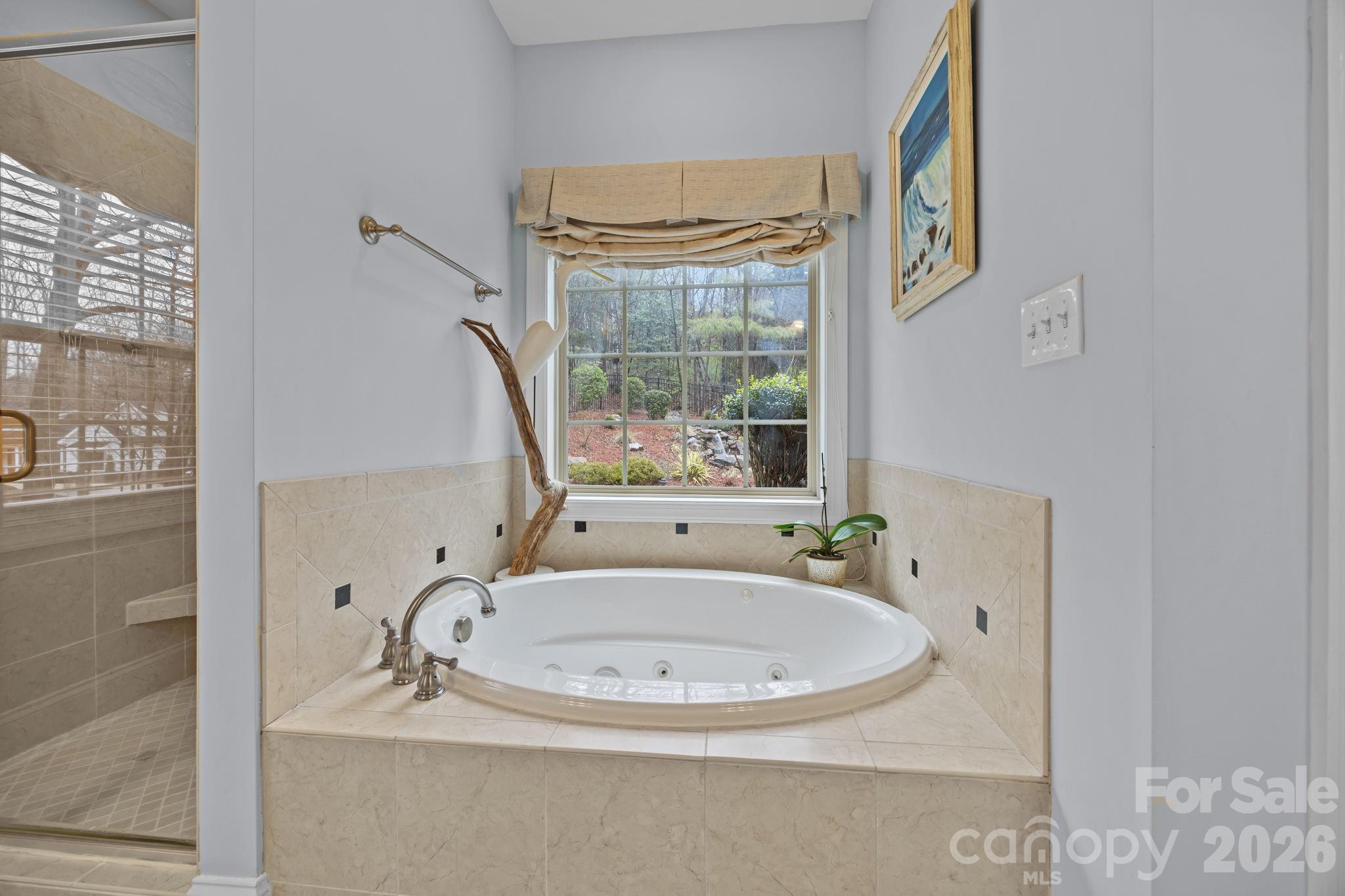 The main-level primary suite is a private sanctuary, complete with two walk-in closets and a spa-inspired bath featuring a garden tub with serene views of your private backyard waterfall. Upstairs, you’ll find four additional bedrooms, two full bathrooms, and a versatile bonus room ideal for a media room, playroom, or home office.