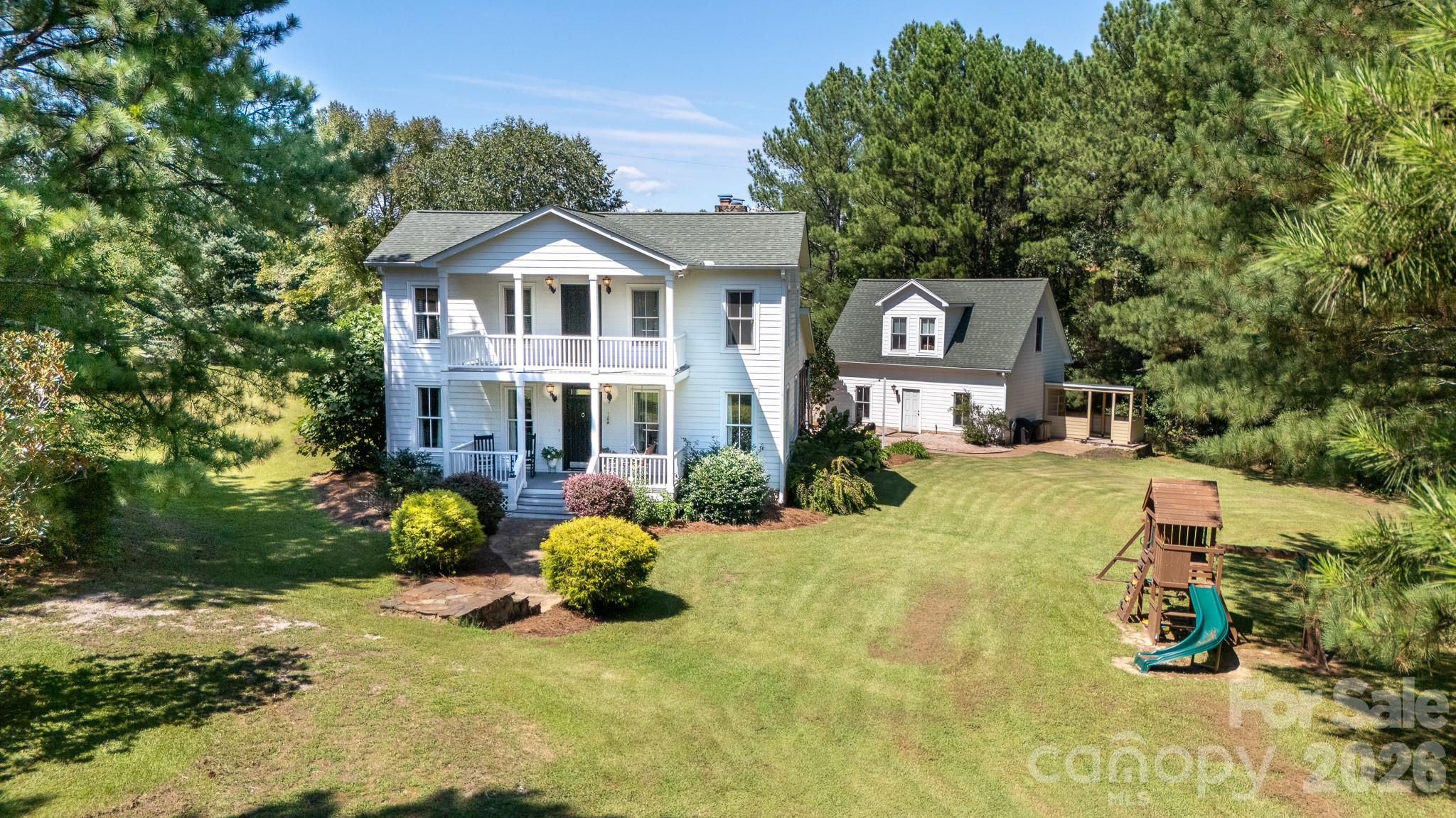 Imagine starting your mornings on a charming front porch overlooking 5.42 acres of serene, private landscape. This exceptional estate blends timeless charm with thoughtful design, offering a lifestyle of quiet luxury and versatility. At the heart of the home, the gourmet kitchen serves as a culinary sanctuary, complete with a butcher block work island, a six-burner gas cooktop, and a stylish keeping room with a wet bar for seamless entertaining. The main-level primary retreat invites total relaxation with its classic claw-foot tub and elegant finishes, while the upper-level bedrooms each enjoy the privacy of their own ensuite baths. Beyond the main residence, the detached garage features a fully appointed guest suite, providing the perfect space for a home office, a hobby studio, or long-term visitors. Whether you are hosting a holiday dinner in the formal dining room or gathering on the screened porch by the warmth of the wood-burning fireplace, this property provides an incredible backdrop for every season of life.