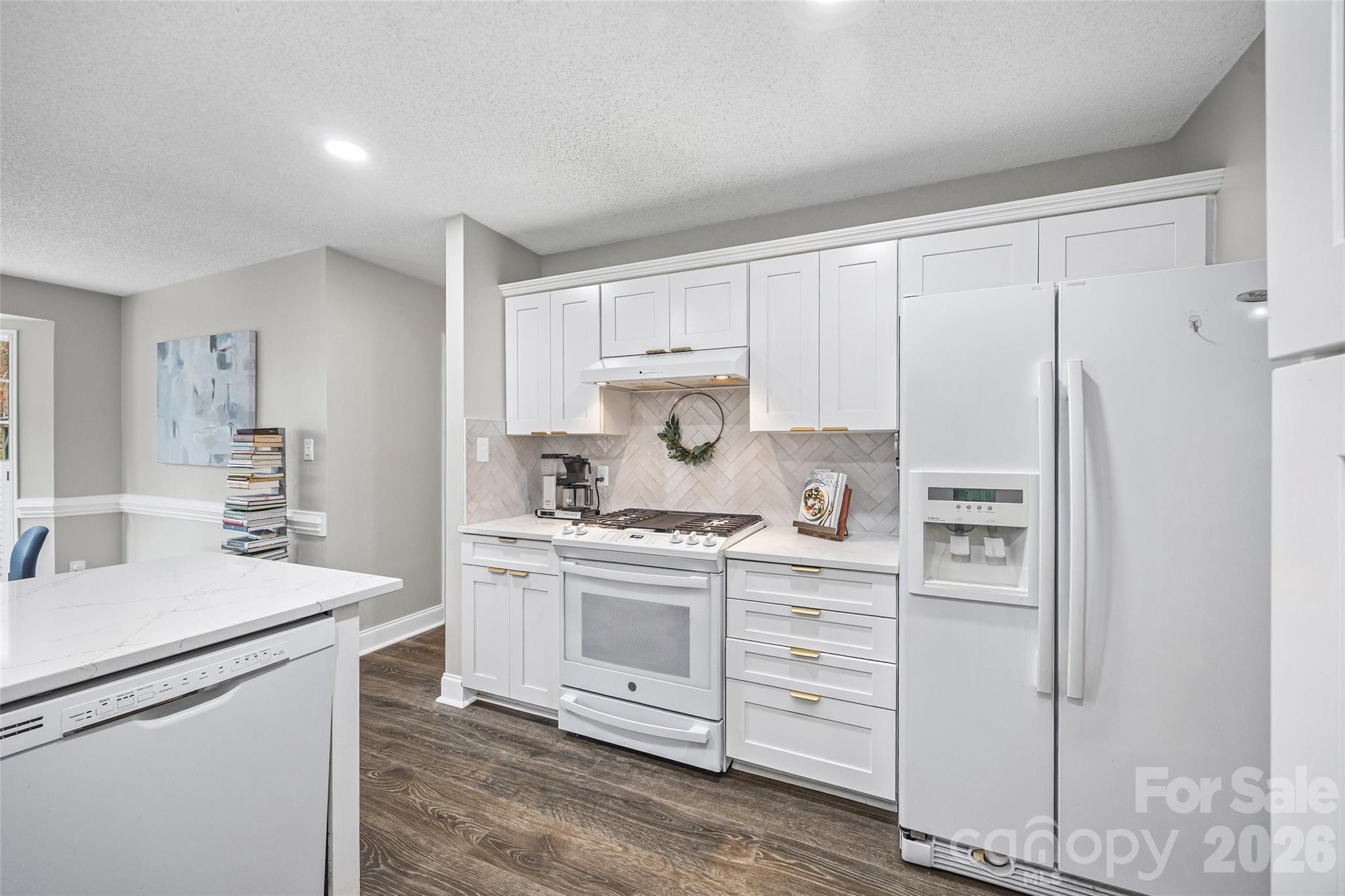 Welcome home to this beautiful split-bedroom ranch offering 3 bedrooms, a dedicated office, and 2 full bathrooms thoughtfully designed for comfortable, single-level living. This move-in ready home features new flooring, upgraded 5" baseboards throughout, and a modernized kitchen with quartz countertops and elegant gold hardware.
