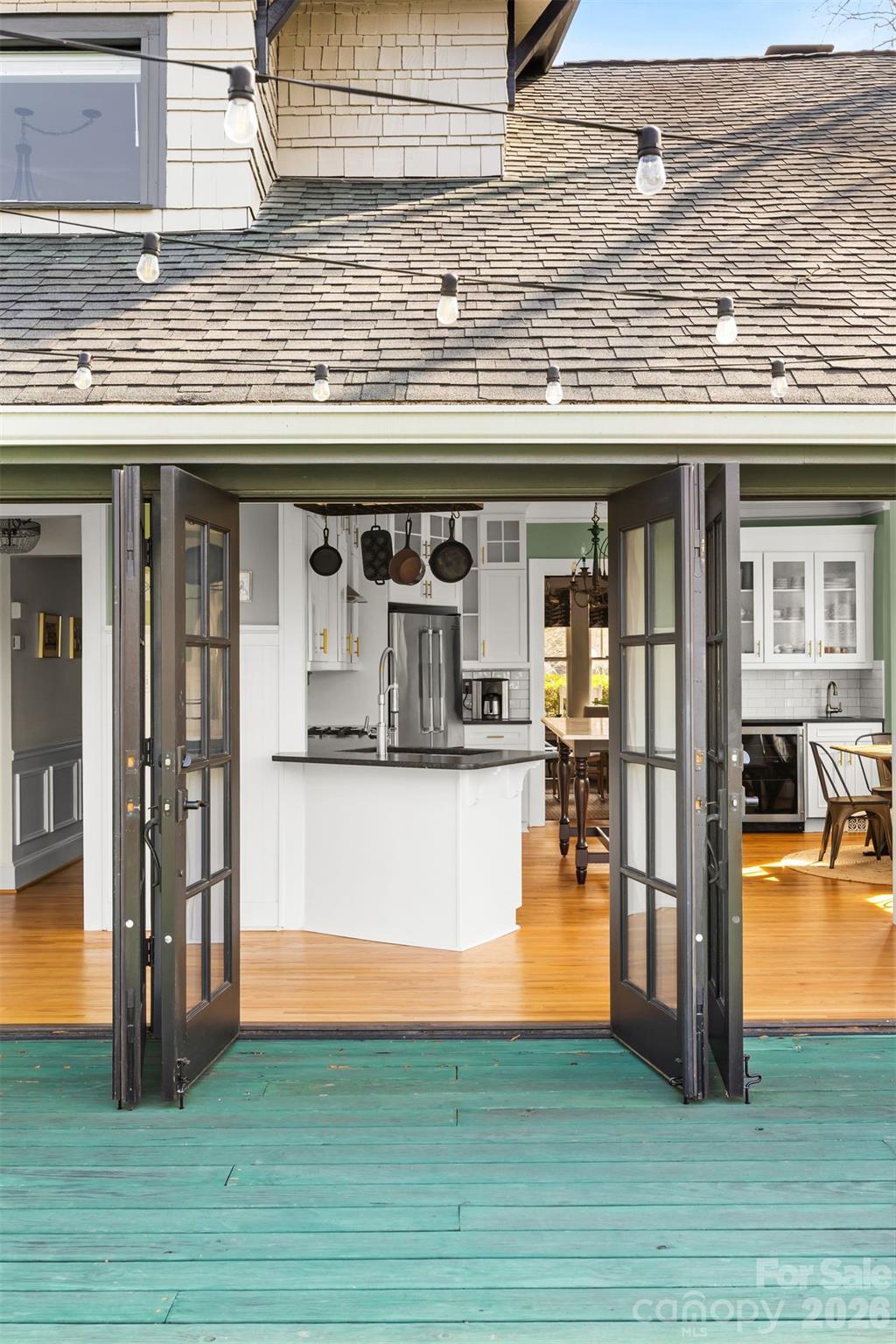 The dining room sets the stage for intimate evenings beside a wood-burning fireplace, while the expansive, updated eat-in kitchen is designed for guest to gather for culinary exploration. Three sets of French doors open to a courtyard oasis with a Charleston-inspired fountain, ambient market lighting, a charming retreat space, and an outdoor shower creating a resort-like backdrop for relaxation and entertaining.
