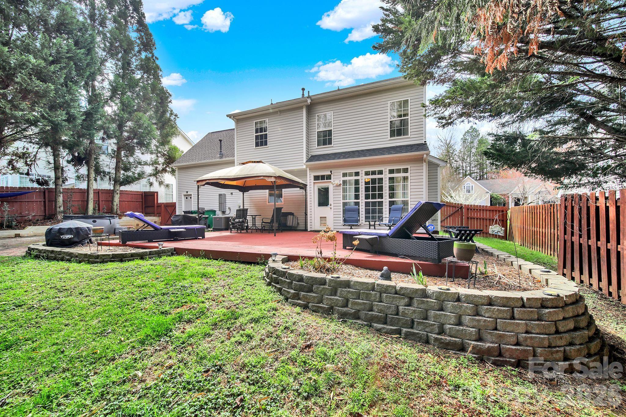 Welcome Home to the highly desirable Wiltshire Manor community, nestled in the Steele Creek area of Charlotte. This home, located near the cul de sac, has a beautiful private back yard with deck, patio, hot tub and spacious shed with storage.This spacious home offers an ideal blend of style and functionality. The main level features dining room, cozy den with gas fireplace, living room area that can be used as office space & a bright spacious kitchen with granite countertops & stainless steel appliances. Upstairs you will find 3 bedrooms and a versatile bonus room with built in shelving- perfect for media space, home office or bedroom. Beautiful flooring throughout the home for added warmth and character. The spacious primary bedroom features high ceilings, a beautiful ensuite bath featuring a rainfall shower and dual vanities, plus oversized closet. Conveniently located near Rivergate Shopping center with restaurants, quick drive to McDowell Park and the Premium Outlets.