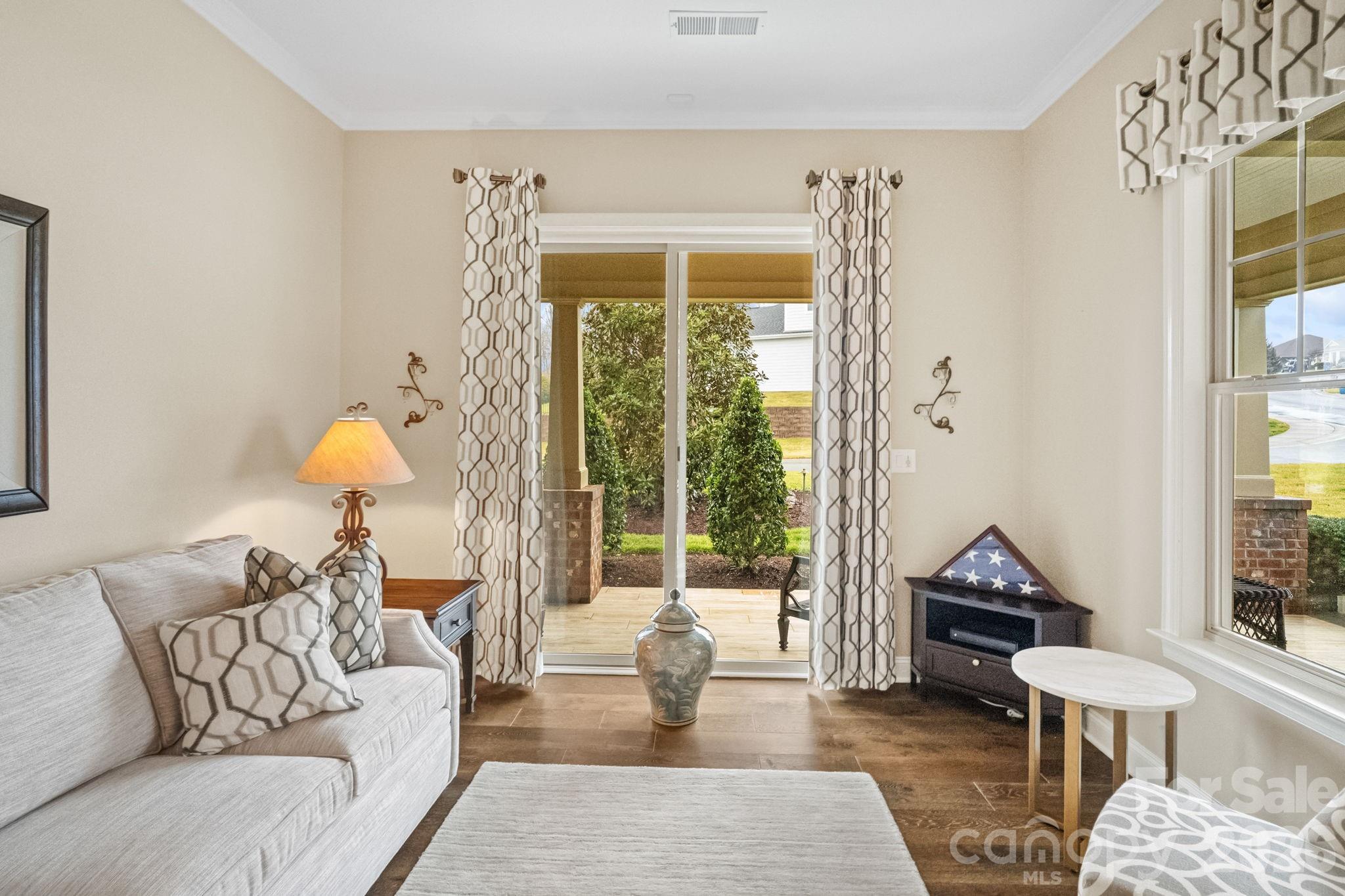 Experience luxury resort-style living in the highly sought-after community of Trilogy Lake Norman. This beautifully appointed and popular Captivate ranch floor plan sits on a premium large corner lot and is loaded with high-end upgrades designed for comfort, style, and easy living. Step inside to find 10-foot ceilings creating an open, airy feel filled with natural light. The great room is a true focal point, featuring a cozy fireplace and built-in cabinetry for both style and function. The upgraded chef’s kitchen is an entertainer’s dream, showcasing two spacious islands, GE Café appliances, abundant custom cabinetry, and a seamless flow into the main living spaces. The primary suite offers a private retreat with a spacious bedroom and luxurious en-suite bath featuring dual vanities, a walk-in shower, and custom closet system. A versatile office/den flex space provides the perfect work-from-home or hobby area, while the spacious guest bedroom includes its own full private bath for added comfort and privacy. Outdoor living truly shines with extensive landscaping and thoughtful backyard improvements, including two patio areas, a high-end retractable awning system, low-maintenance artificial turf, and a fully fenced backyard that is perfect for year-round enjoyment with minimal upkeep. Additional highlights include a large, enclosed sunroom complemented by rolling walls of glass windows and doors that provide enhanced indoor-outdoor living. Also included are electric window treatments and blinds that provide privacy while still welcoming natural light. Epoxy-coated garage floor with a mini-split HVAC system installed for maximum year-round use. Residents enjoy access to the exceptional Twin Mills Club amenities including a restaurant, fitness center, and resort-style pools as well as Freedom Boat Club access, all with HOA-included lawn maintenance. This move-in ready home offers the perfect blend of luxury, functionality, and low-maintenance living in one of the area’s premier active lifestyle communities.