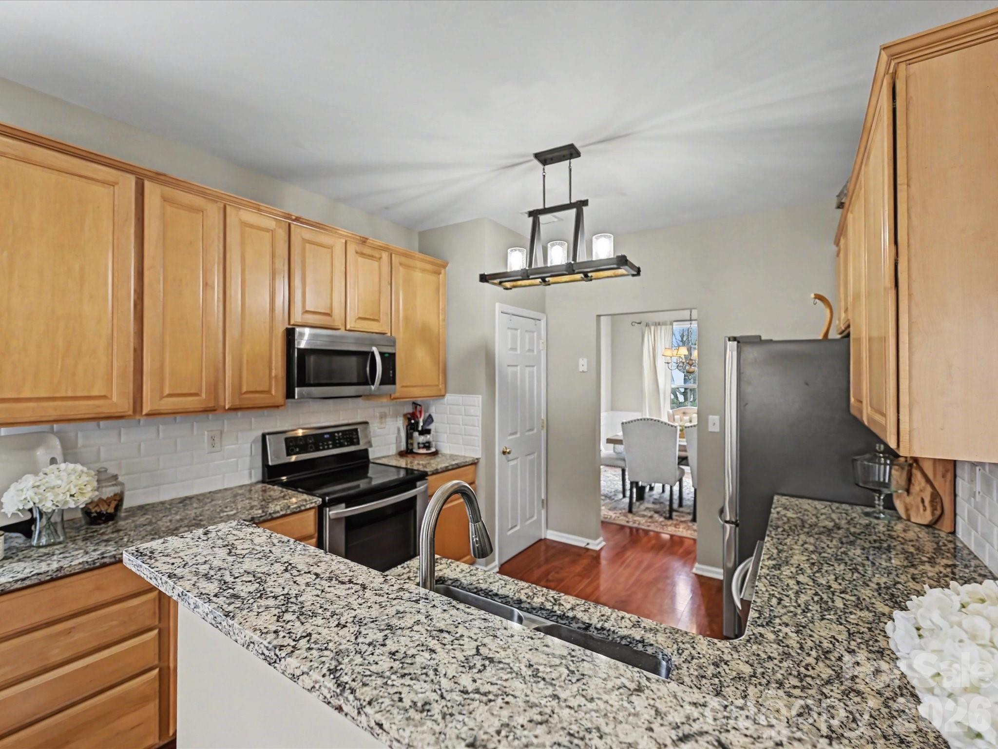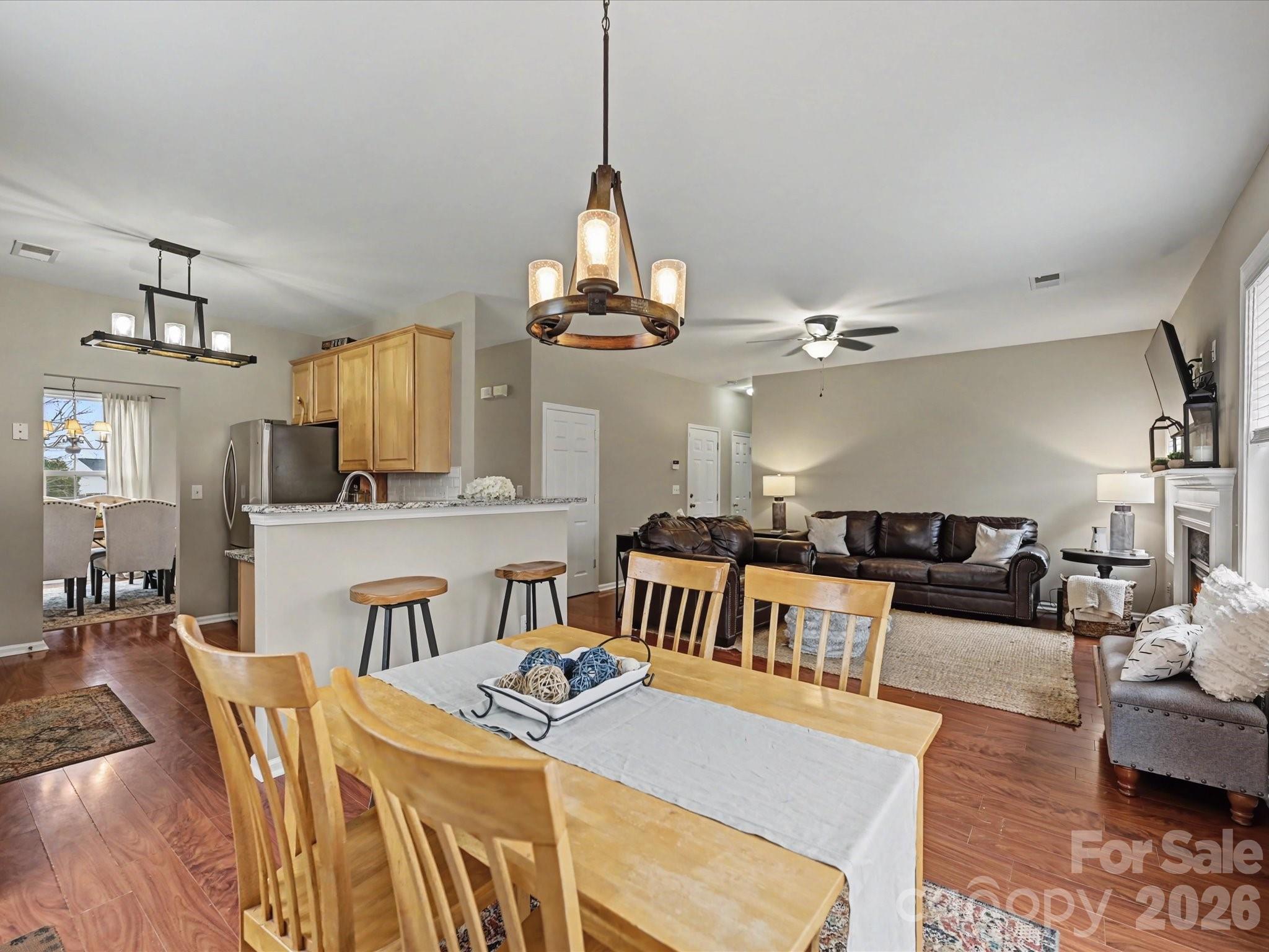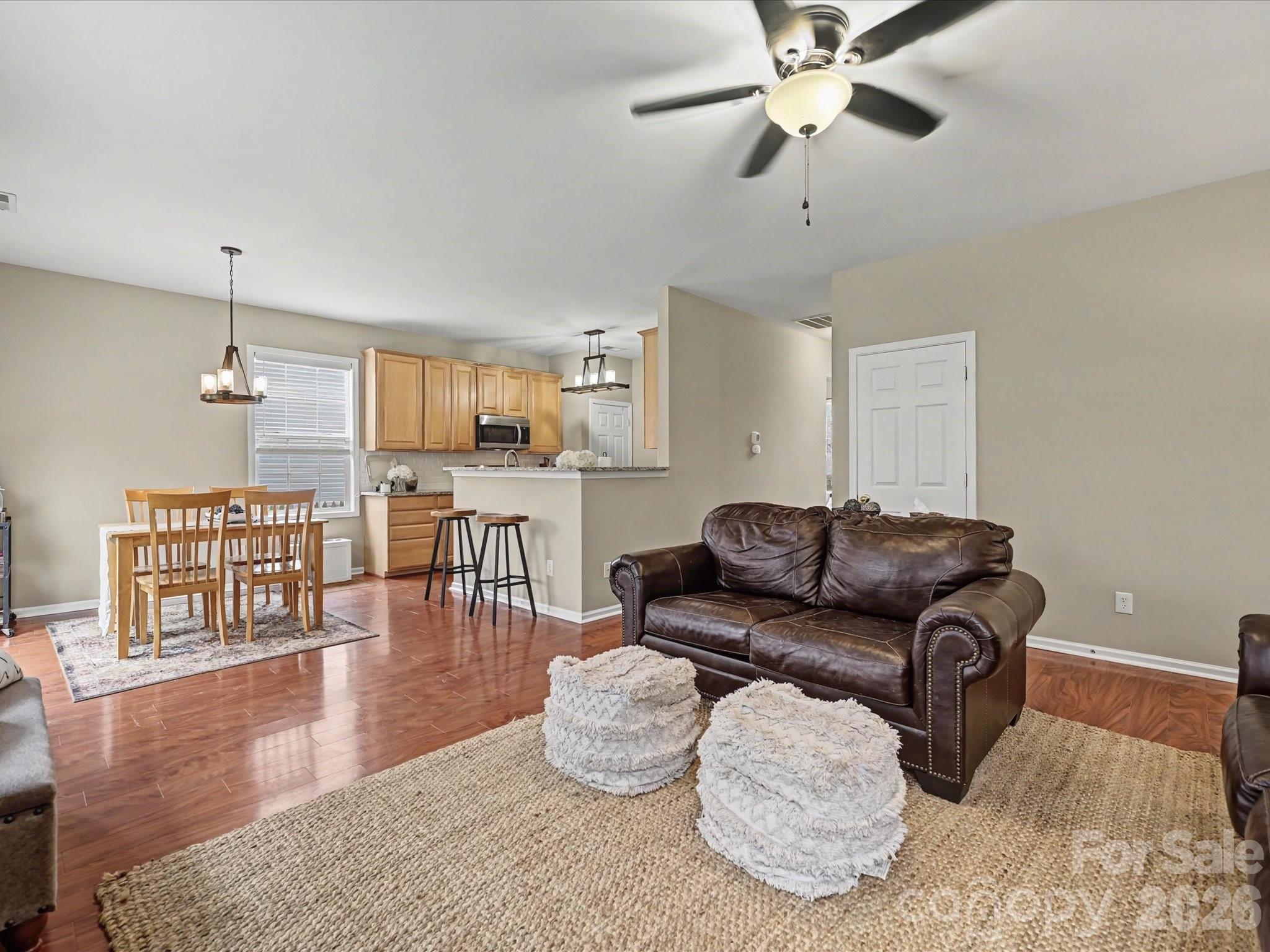 Welcome Home! This spacious and beautifully maintained home offers 4 bedrooms, 2.5 baths, plus a versatile main-level room that can serve as a 5th bedroom or private home office. The main level features durable laminate flooring throughout and has been freshly painted in a neutral color palette, creating a bright and inviting atmosphere. The kitchen is designed for both style and functionality with granite countertops, stainless steel appliances, and updated lighting. Upstairs, the primary suite includes a comfortable sitting area, a large walk-in closet, and an en-suite bathroom. An upstairs laundry room adds everyday convenience. Entertaining is made simple in the fenced backyard with an extended Flagstone patio – perfect for a BBQ & fire pit! With flexible living spaces, thoughtful updates, and generous storage throughout, this home is ready to welcome its next owner! Several updates include: Roof 2022, Hot Water Heater 2022, Guest Bath Mini-Reno 2022, additional landscaping, and Lenox HVAC. Enjoy the amazing Old Stone Crossing amenities, including two pools, a clubhouse, tennis courts, pickleball courts, a fitness center, and a playground, all in a vibrant, connected community. Just minutes to UNCC, Uptown, interstates, dining, shopping, & schools.