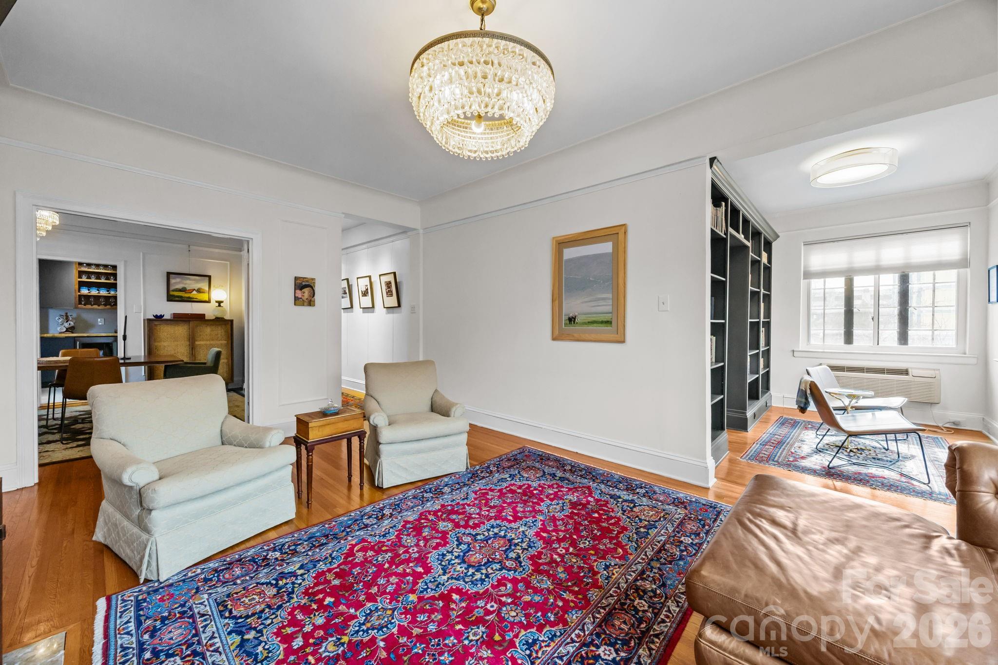 Nestled in the heart of Charlotte’s charming Fourth Ward, this beautifully appointed three-bedroom, two-bath condominium at The Poplar offers the perfect blend of historic character and modern convenience. Rare opportunity for a 3 bedroom condo. Located in one of the City’s most treasured historic buildings, this residence combines timeless architecture and urban living. Every room provides unique views of the City skyline and streets of the Fourth Ward. The floor plan features high ceilings and spacious living areas filled with natural light. The living room includes a fireplace flanked with bookcases and opens to the dining room and sunroom. The updated kitchen has ss appliances, ample cabinet storage along with an extra beverage fridge and bar area. The primary bedroom is privately located away from the other secondary bedrooms. Primary bathroom includes heated floors. Two secondary bedrooms plus an office / sunroom. Incredible proximity to neighborhood restaurants, cultural venues and sporting events. With its prime location, classic architecture, and comfortable living spaces, this exceptional condo offers a rare opportunity to own a piece of Charlotte history while enjoying the convenience of City living. The rooftop common area is being redone as part of a new roof installation and is currently not accessible - once completed it will have spectacular City views for amazing outside living. The common laundry room is located in the basement and includes numerous washers and dryer for easy access. Each unit is allocated a storage area in the basement as well. Don't miss this special condo.