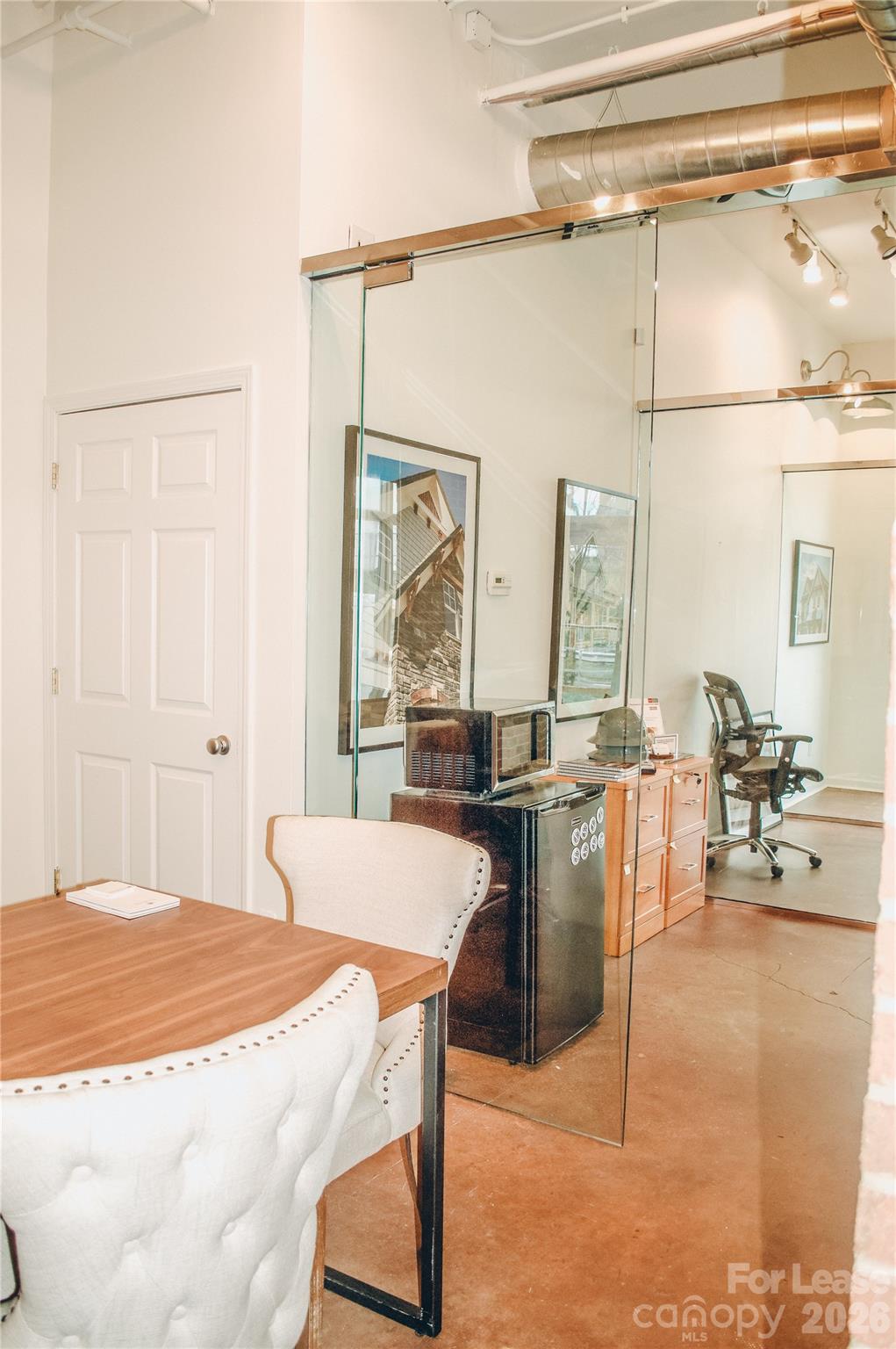 Rare Commercial Lease Opportunity in the Heart of NoDa. Hard-to-find ~700 SF end-unit commercial space located on the ground level of the Renaissance Condominiums in the vibrant NoDa Arts District. Small commercial spaces like this rarely come available in this area and typically lease quickly. The space features a distinctive industrial-modern interior with stained concrete floors, exposed brick walls, exposed ductwork, and high ceilings, creating a bright and creative environment. Large corner windows bring in abundant natural light, while frameless glass offices and conference rooms allow for flexible use and a professional yet open feel. Ideal for professional offices or boutique service businesses such as a law office, accounting practice, creative studio, spa, salon, or consulting office. Situated directly near the 36th Street Light Rail Station, offering quick access to Uptown, South End, and UNC Charlotte. Surrounded by NoDa’s thriving mix of restaurants, retail, galleries, and ongoing development, this location provides excellent visibility and convenience for clients and employees alike.