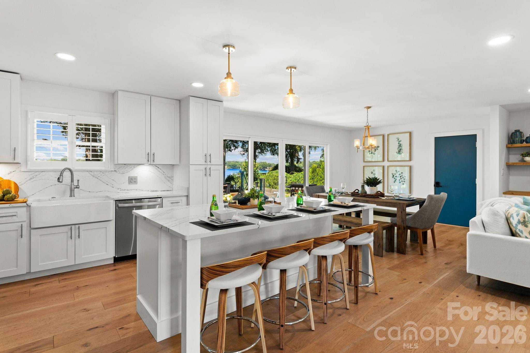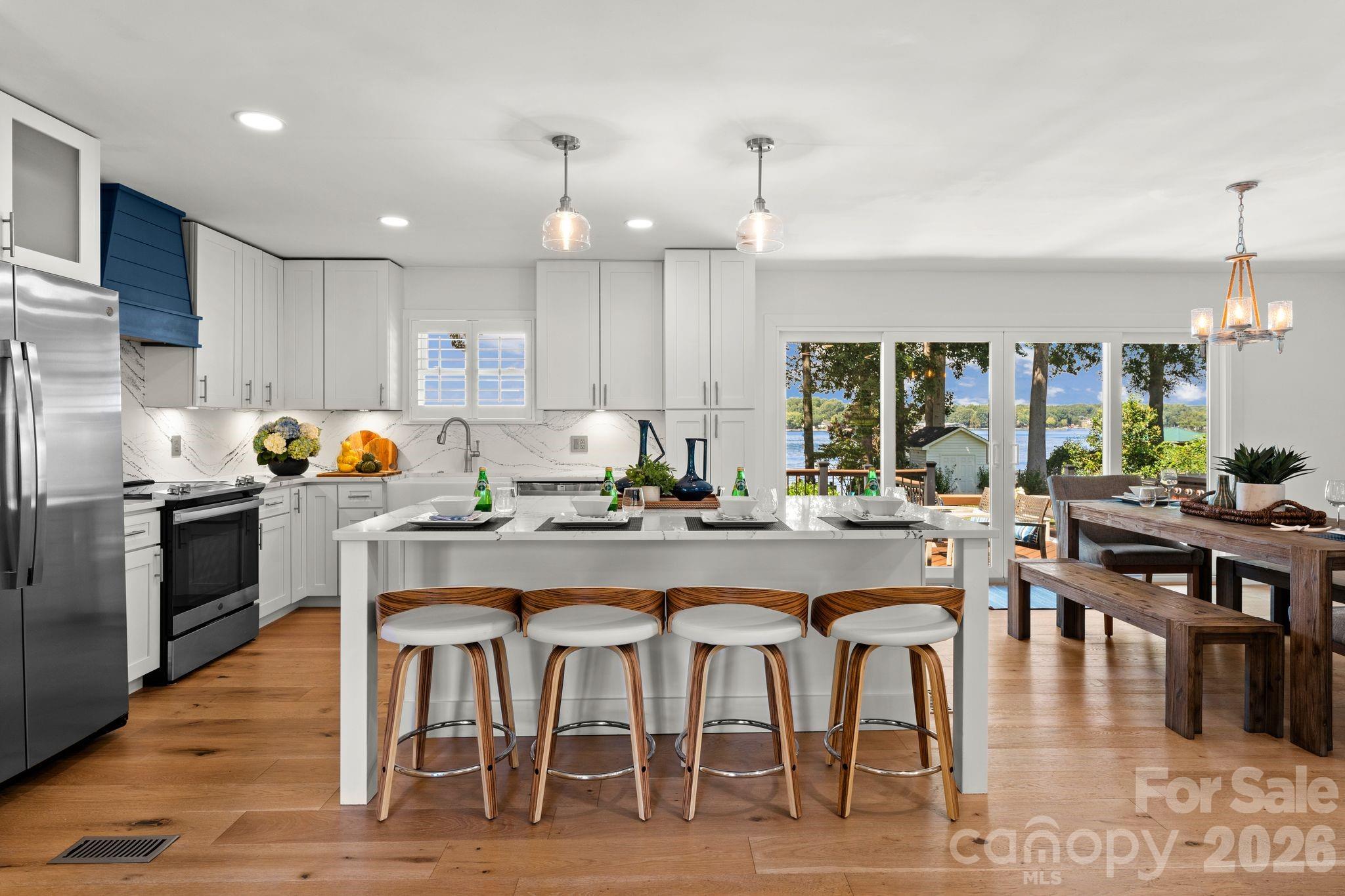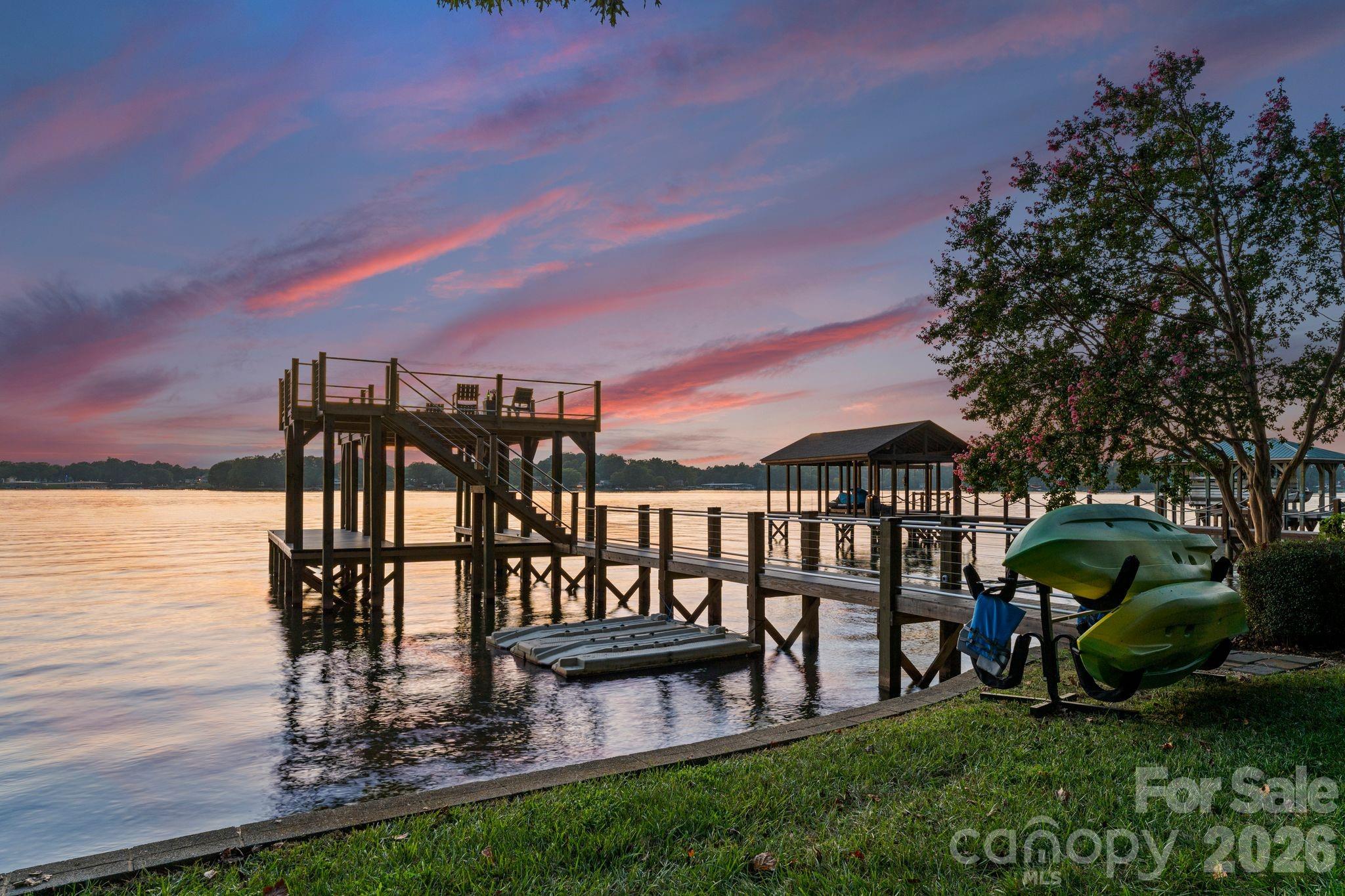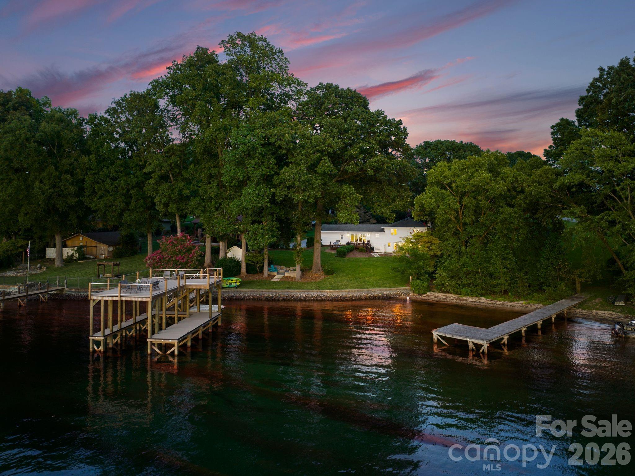 Experience the best of Lake Norman living at this beautifully updated waterfront retreat, perfectly positioned to capture stunning west-facing sunset views. Thoughtfully designed for both everyday comfort and effortless entertaining, the home features a bright split-level floor plan with an open-concept main living area, modern finishes, and abundant natural light throughout. Expansive decks and patios create seamless indoor-outdoor living and lead to a custom multi-level dock, providing the perfect setting to relax, entertain, and enjoy the water just steps from your door. The upper level offers three spacious bedrooms and two full bathrooms, while the lower level includes an additional bedroom and bath along with a custom bunk room featuring six twin beds—ideal for hosting family and guests. With direct access to Lake Norman’s 500+ miles of shoreline, this property offers an incredible opportunity to fully embrace the lake lifestyle. Conveniently located less than 10 minutes from I-77, dining, and local attractions, the home is well-suited as a private waterfront retreat or a vacation rental. Currently operating as an income-producing short-term rental, the property is being offered fully furnished, making it truly turnkey.