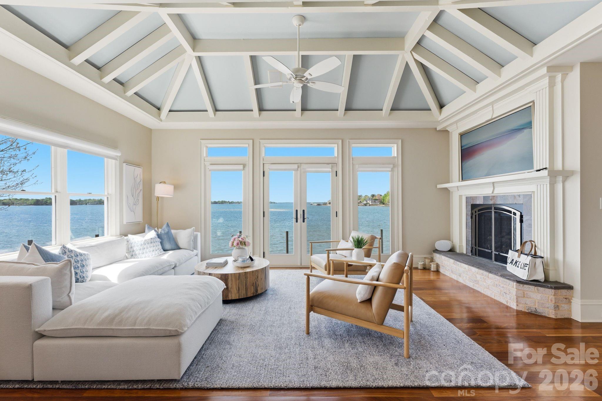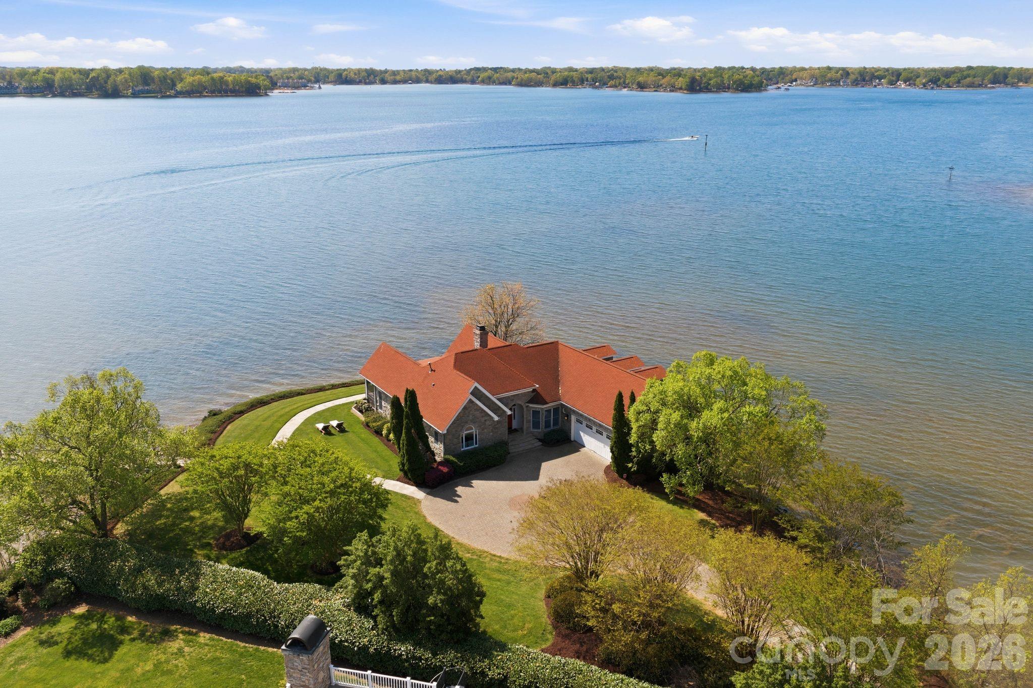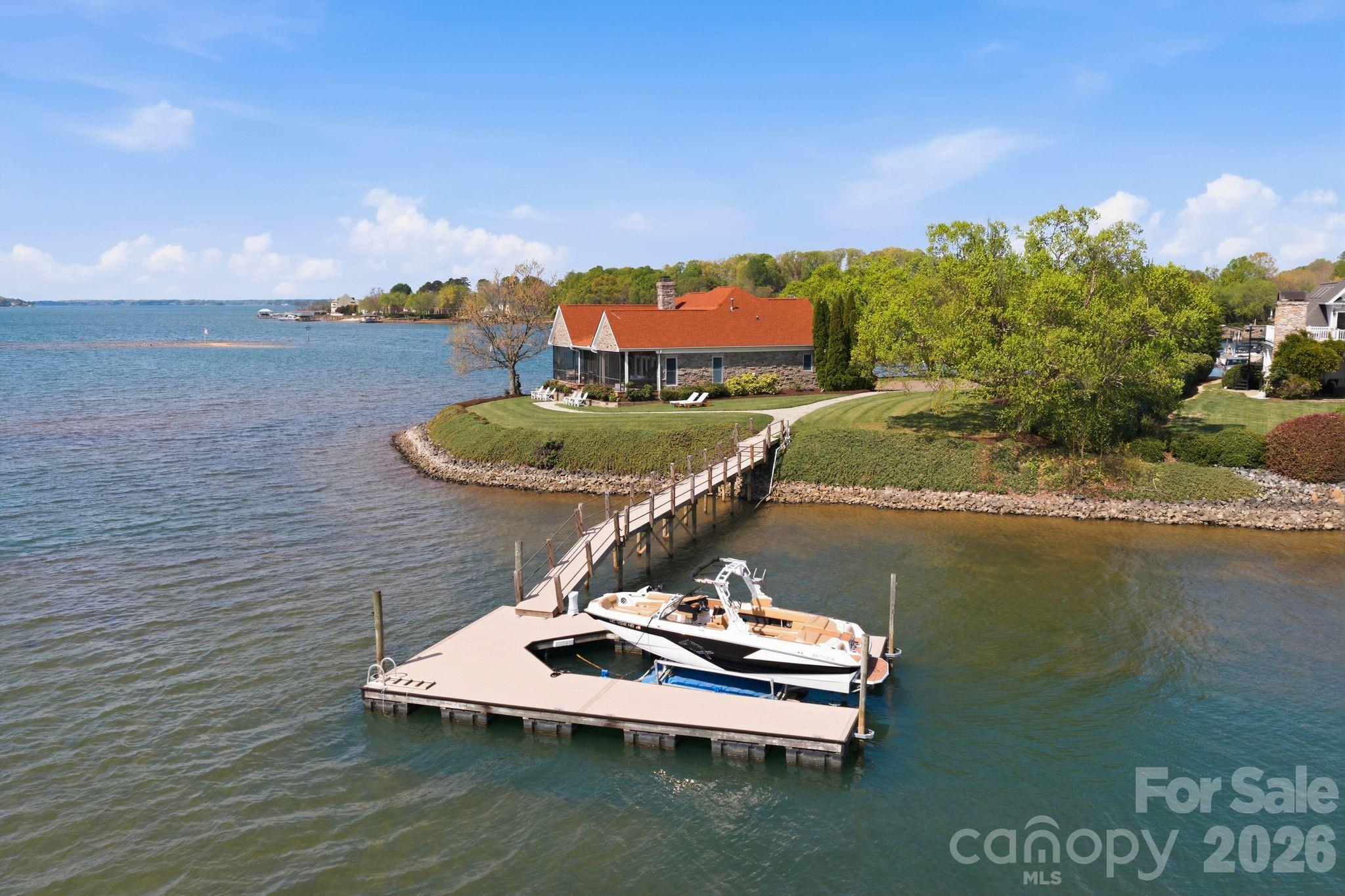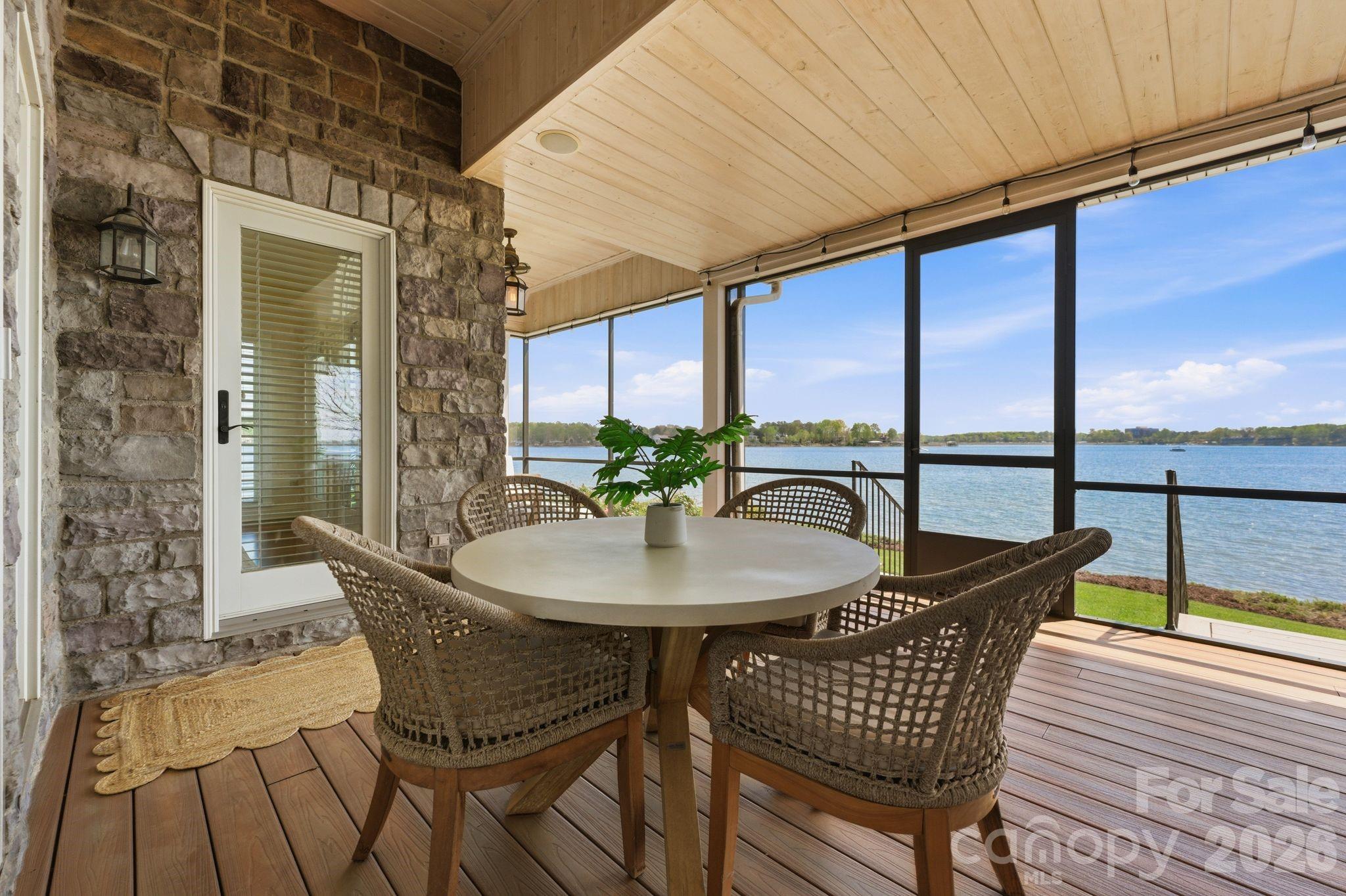 This property could be a set in a Nicholas Sparks or Nancy Meyers rom-com. The most charming stone clad home nestled on 720 feet of waterfront on the desirable Langtree peninsula. Minutes to all the shopping and dining at Birkdale Village. Renovated to the studs in 2015, the interior is as special as the exterior. Every room is full of light and astonishing water views. Vaulted tongue & groove ceilings with custom beams, island seating, marble counters. Spacious screened porch & deck. Dock w/ composite decking can accommodate 4 boats. HOA amenities offer pool, tennis/pickleball courts, boat ramp & storage. Present owners added HVAC to the garage and created a bunkroom. Nothing required to use as a garage again--this space is not included in the heated living area listed. This property is one of the most unique and charming properties on Lake Norman. Some furniture may be available for purchase.