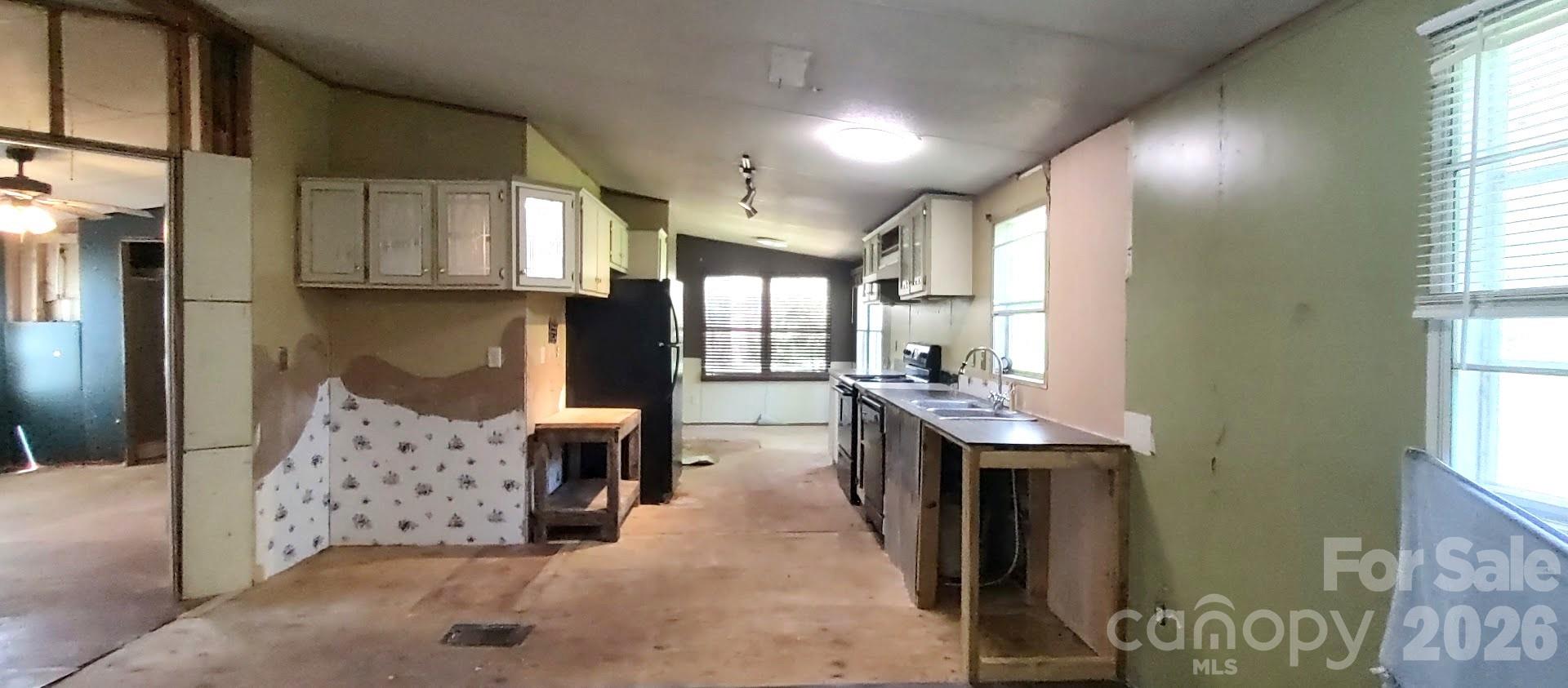 This 3 bedroom, 2 bath double wide is nestled in a quiet country setting. It has an amazing open floor plan. Being sold "AS IS", this is an opportunity to create the home you want. Will need many renovations including, but not limited to; HVAC, Floor decking and flooring, roof is 27 years old, although no evidence of leaking. Well and septic. Surrounded by very well kept and beautiful homes.