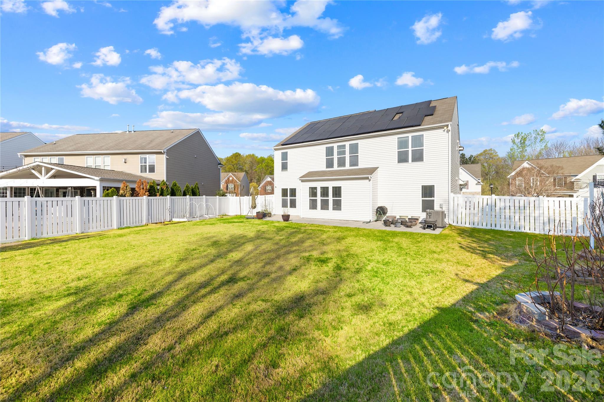 Discover the perfect blend of elegance and space in this meticulously maintained 4-bedroom home, situated on a largest lot in Sonora section of Ballantyne’s highly desired Stone Creek Ranch. From the moment you enter the soaring two-story foyer, you are greeted by gleaming hardwoods that flow throughout the freshly painted main level. The heart of the home features a light-filled kitchen with classic almond cabinetry and stainless steel appliances, opening seamlessly to a cozy family room and breakfast area—perfect for modern living. A rare main-floor guest suite with a full bath provides ideal flexibility for visitors or a home office. Upstairs, the home boasts a grand master suite alongside spacious secondary bedrooms and an expansive bonus room or theater room designed for ultimate entertainment. Equipped with a high-efficiency solar panel system, this home offers incredible economic savings, with previous utility cycles reaching a net-zero electricity cost and total annual utility bills (including heating and cooling) remaining remarkably low. Solar Panels installed in 2022, fully paid and have 25 year warranty. The true showstopper is the oversized, level, and fully fenced backyard; filled with fruit and flowering trees, it offers unparalleled privacy for hosting large gatherings. EV Outlet available in Garage. HVAC (2023). Nestled in a top-rated school district with immediate access to the premier dining, shopping, and entertainment at Blakeney, Rea Farms, Waverly, and Stonecrest, this home offers an unbeatable location in the heart of South Charlotte.